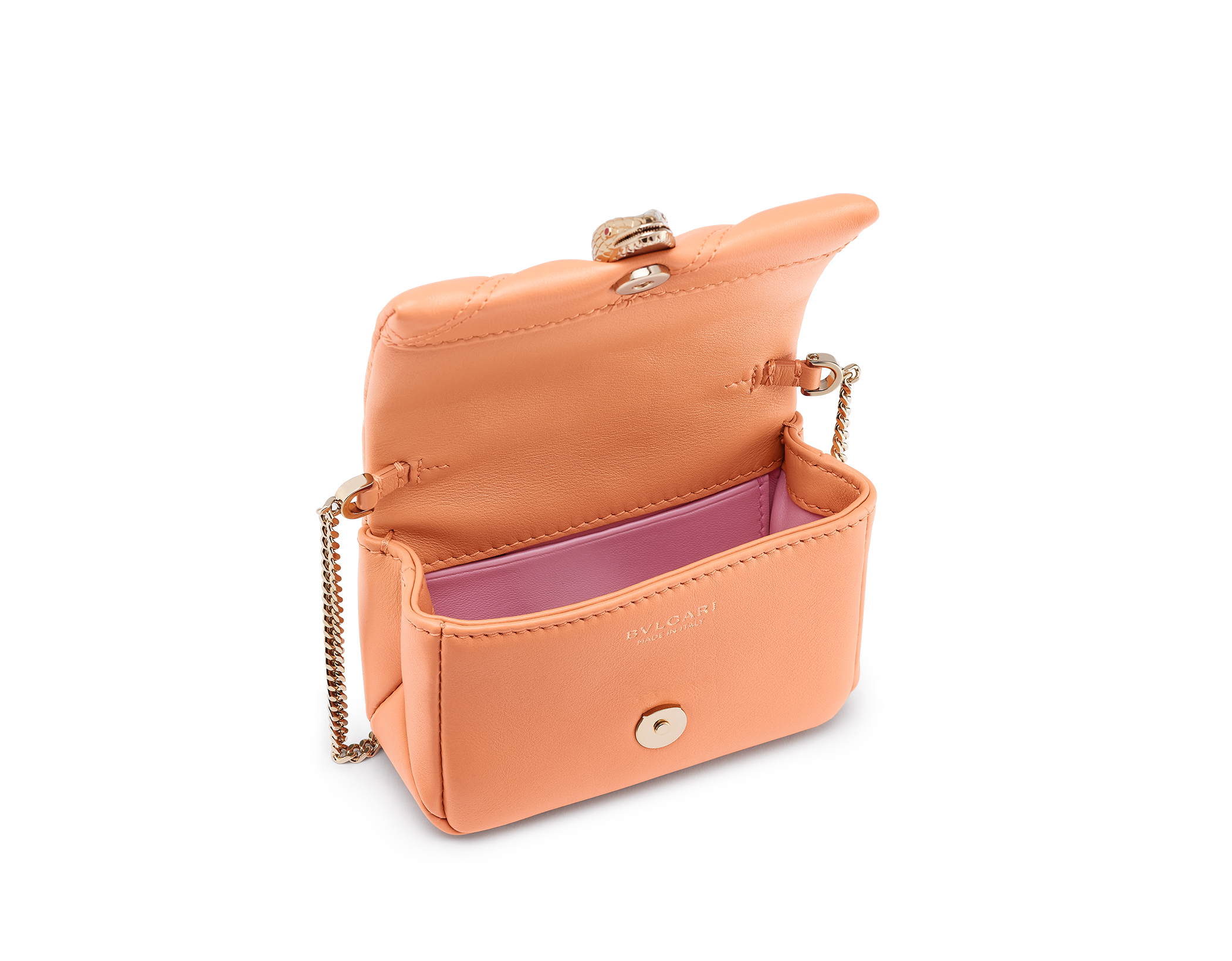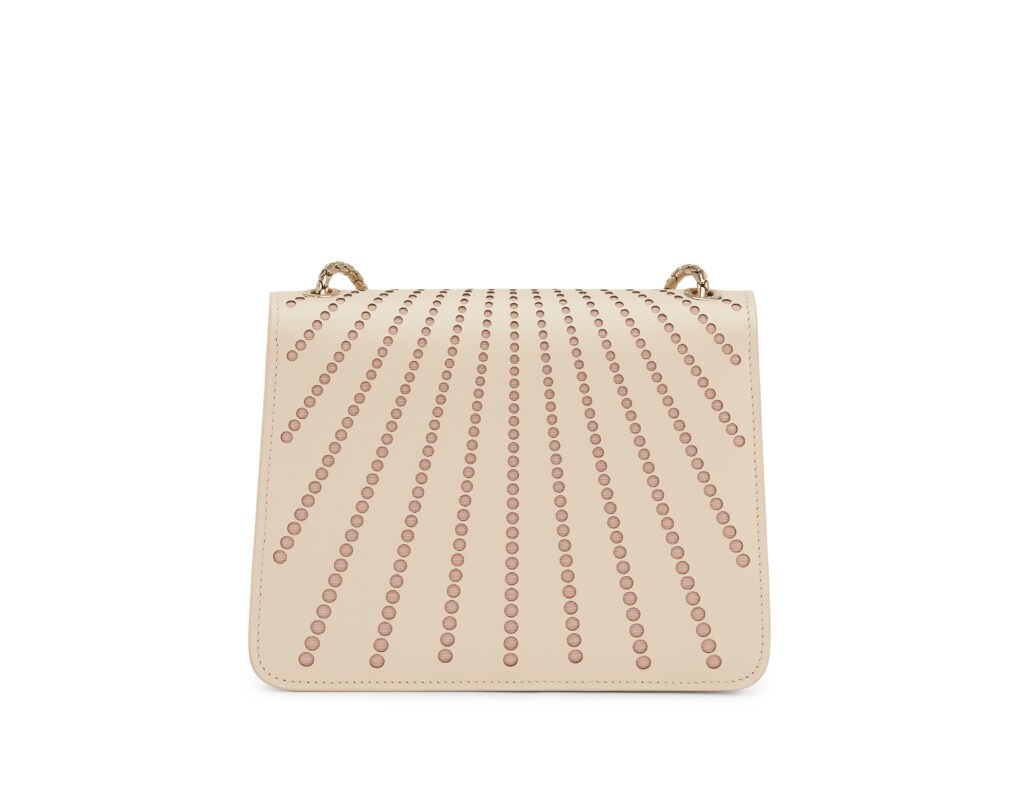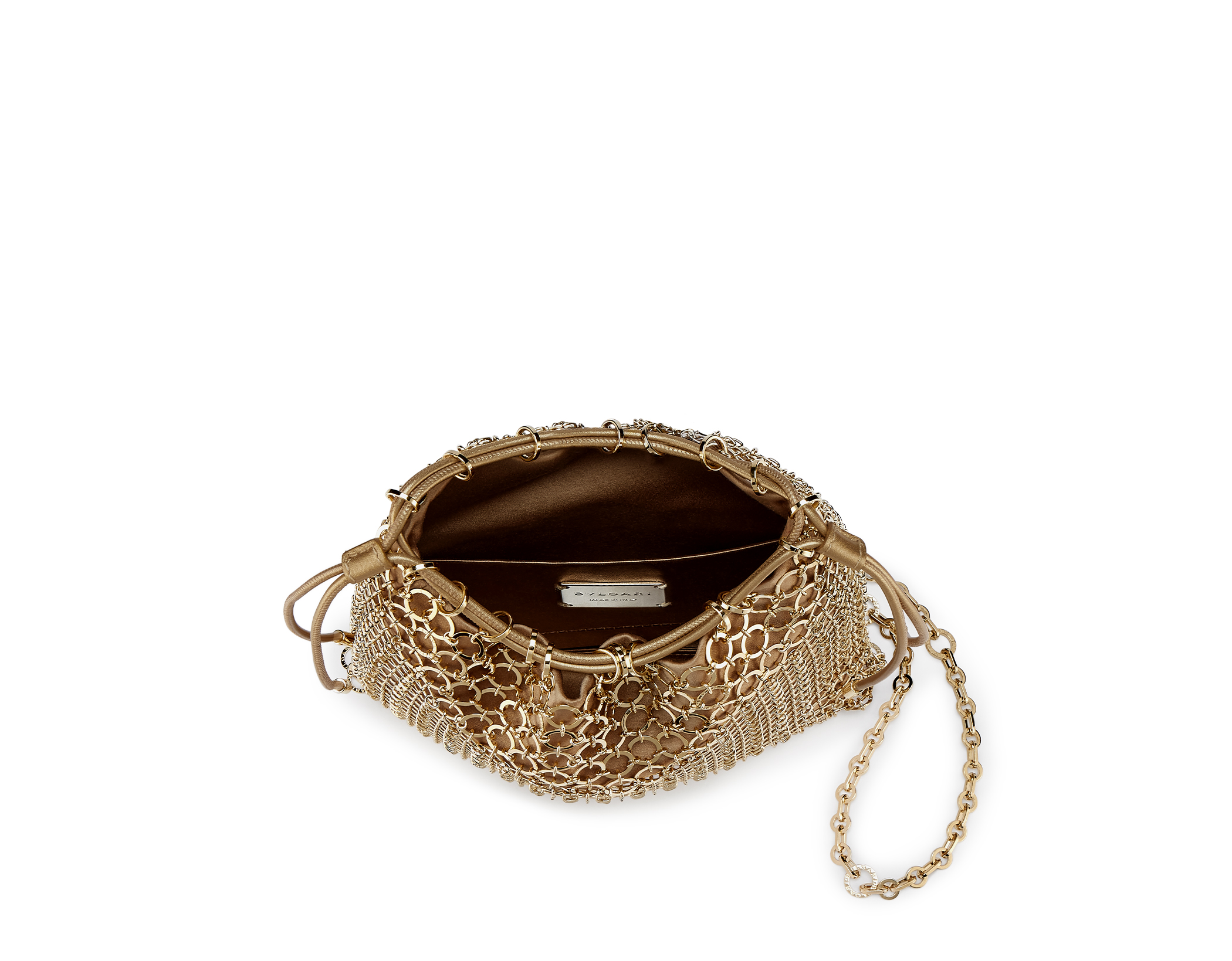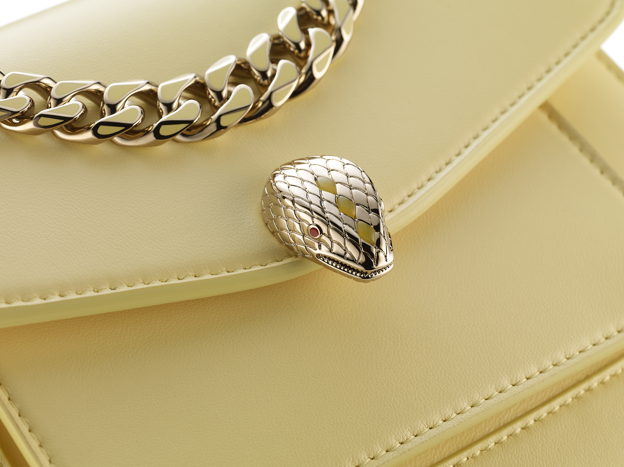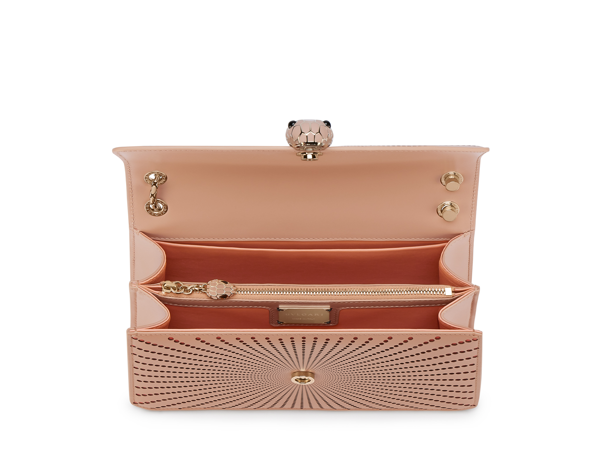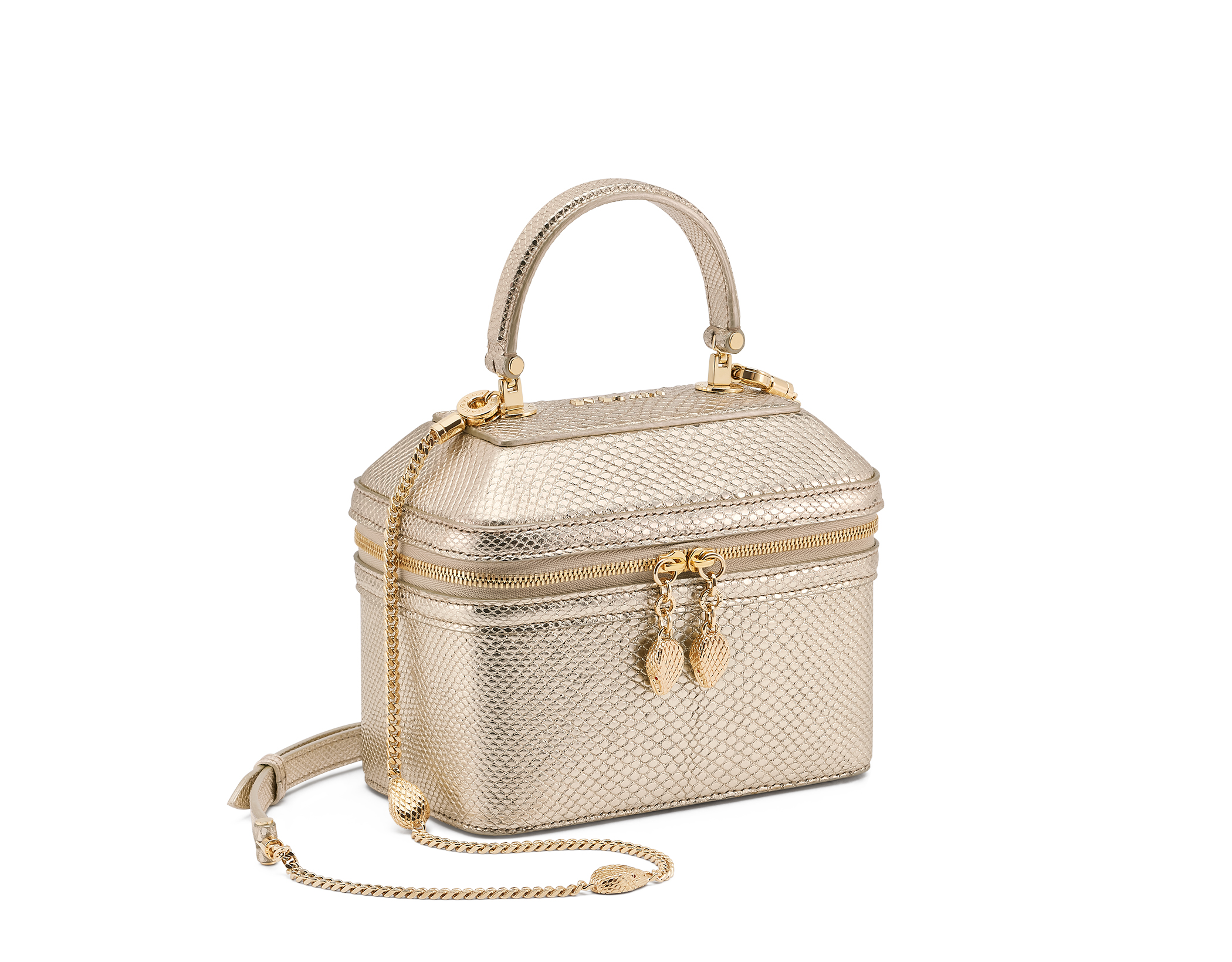 RADIANCE, l’une des atmosphères de la collection, célèbre le rayonnement omniprésent de la Ville Eternelle avec un nouveau motif rayon de soleil inspiré de l’héritage horloger de Bulgari. Serpenti se décline sous de nouvelles formes surprenantes pour sublimer des modèles aussi modernes qu’inattendus, tels que les sacs Hobo Serpenti et Vanity Serpenti. La collection expérimente des techniques de fabrication inédites, telles que la découpe laser ultra-contemporaine pour le Serpenti Laser Cut, ou encore la maille inspirée de l’univers de la joaillerie pour le Serpenti Heritage Mesh et le Serpenti Full Metal Mesh.