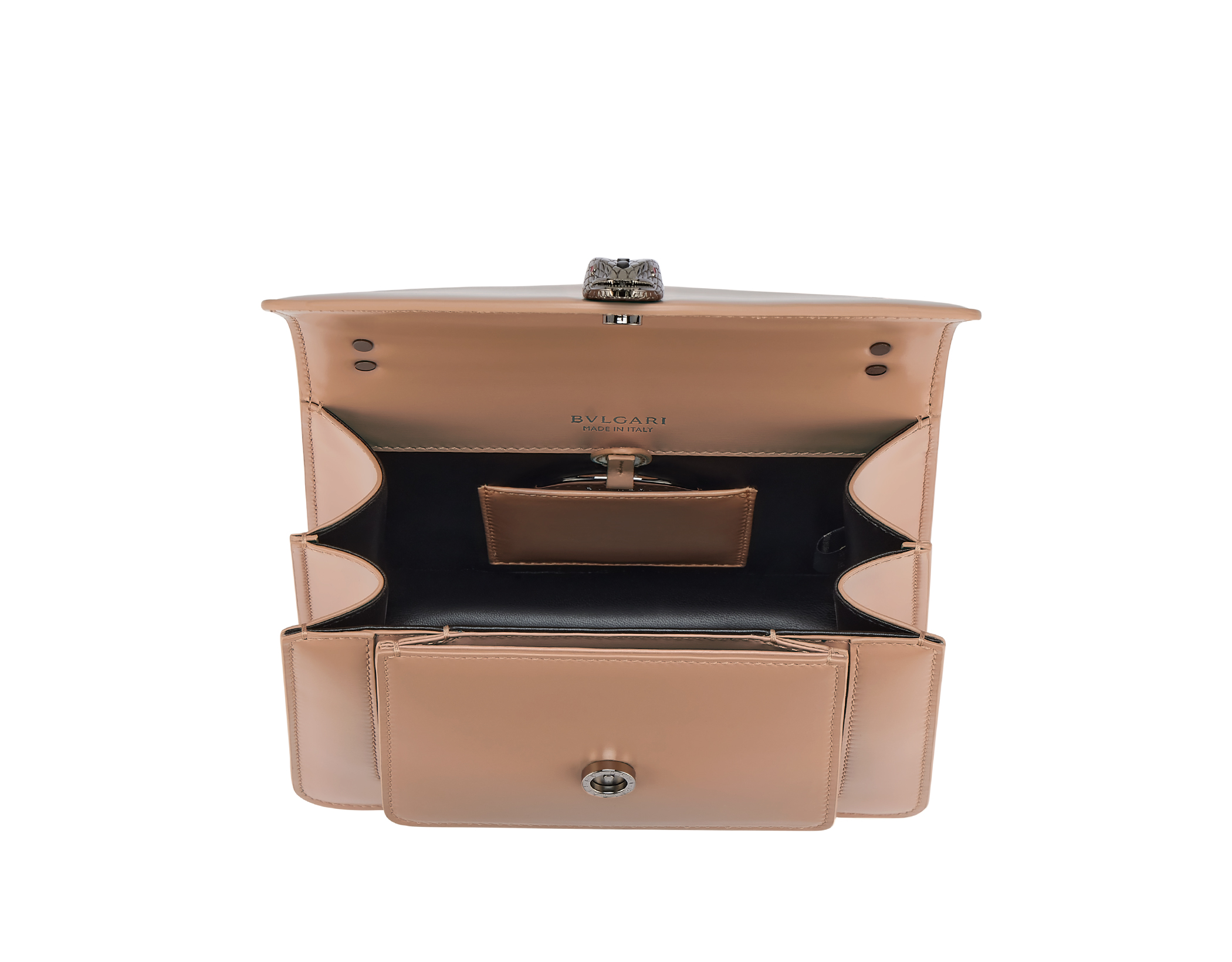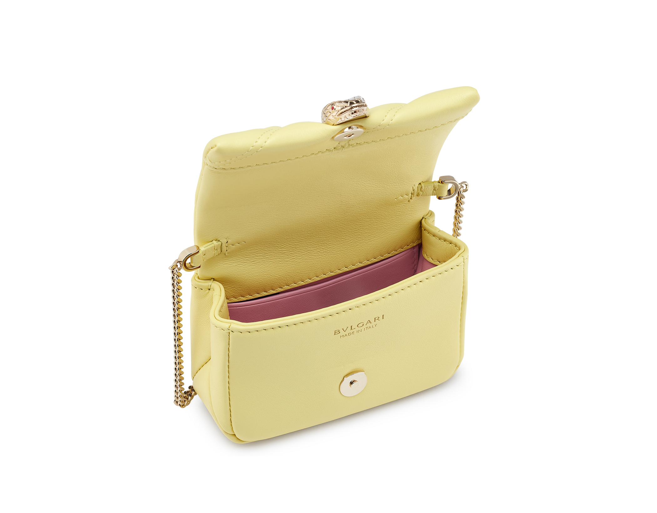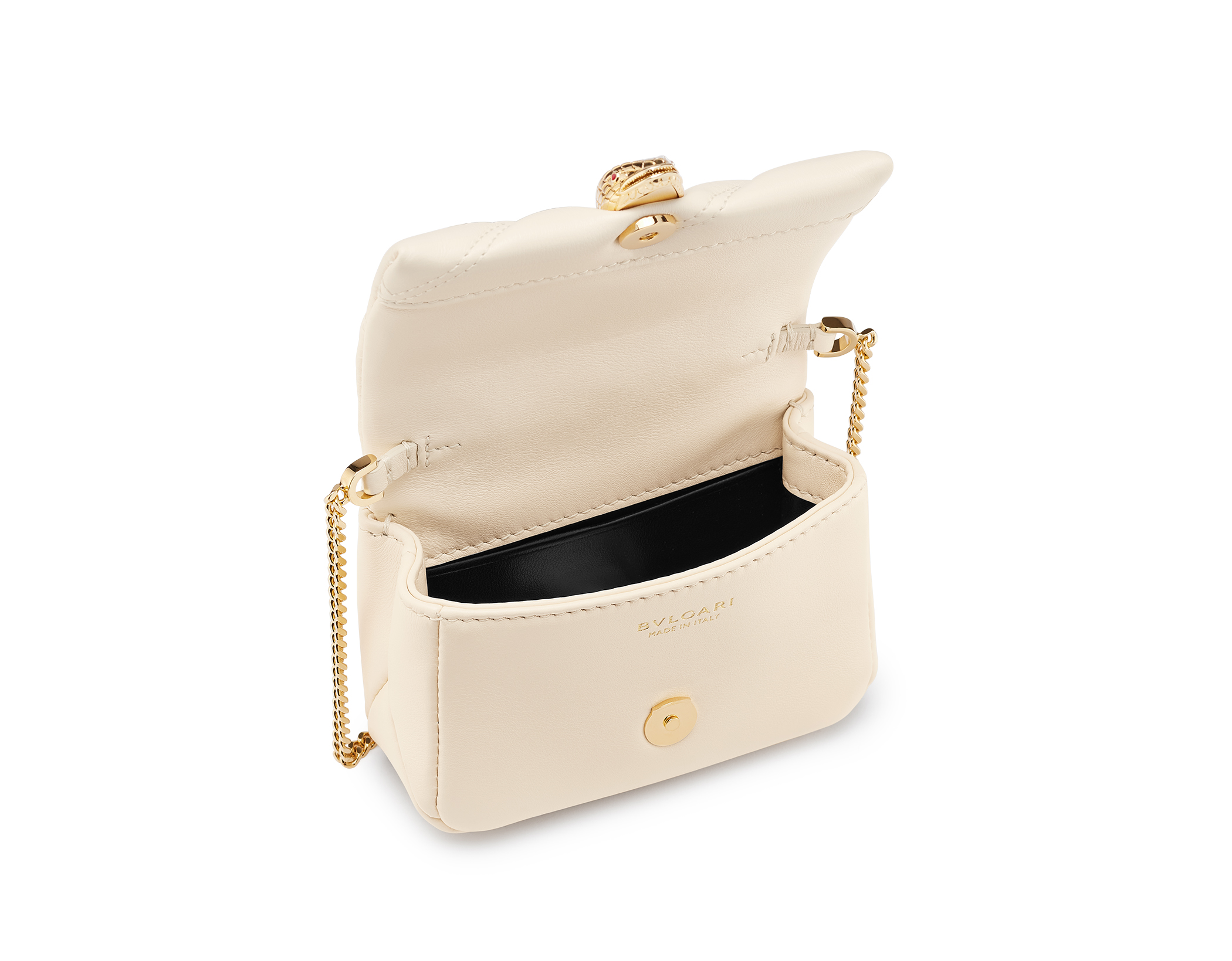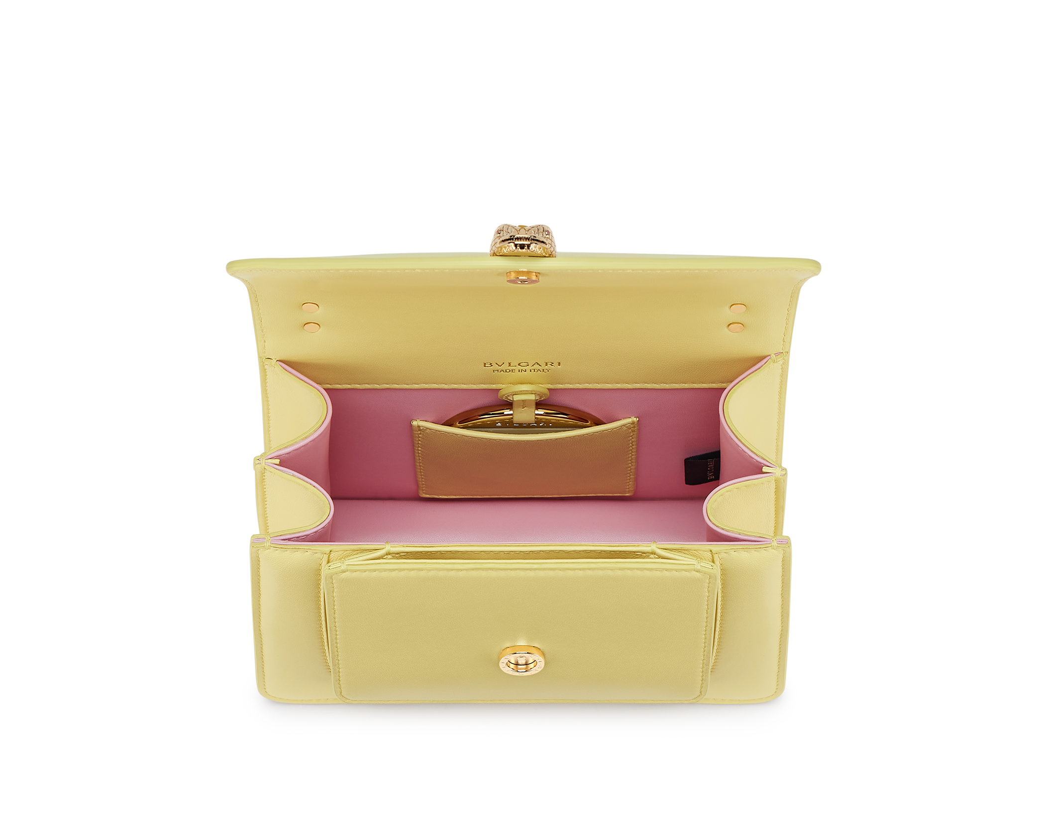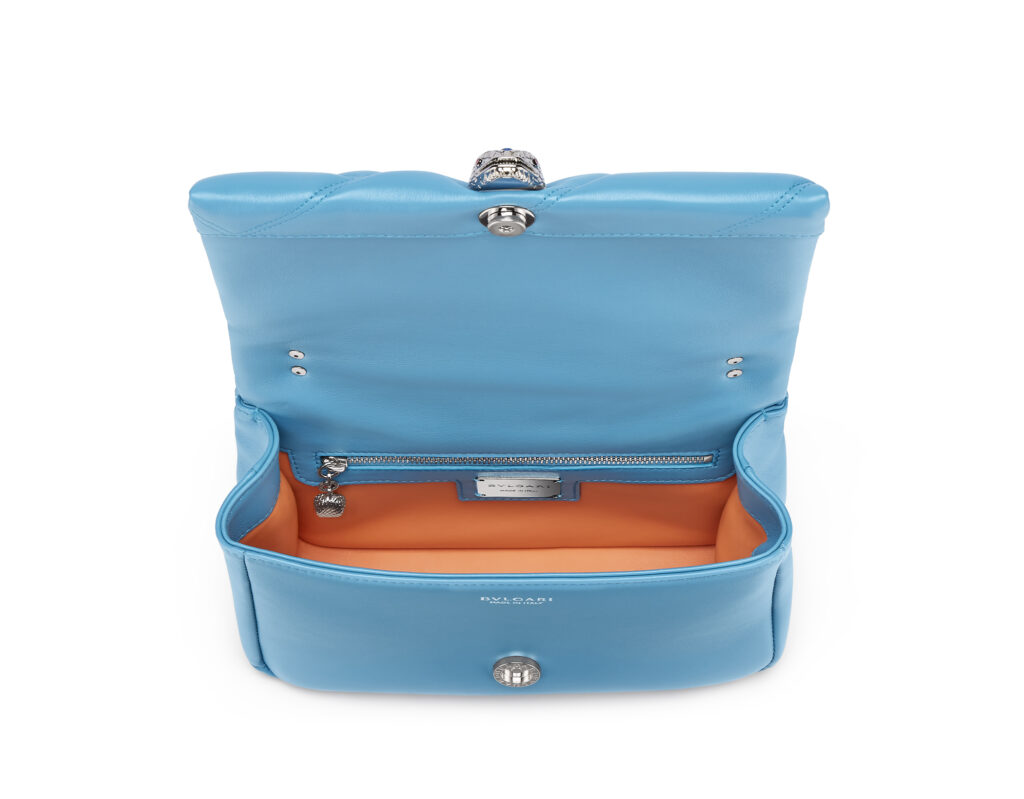RADIANCE, l’une des atmosphères de la collection, célèbre le rayonnement omniprésent de la Ville Eternelle avec un nouveau motif rayon de soleil inspiré de l’héritage horloger de Bulgari. Serpenti se décline sous de nouvelles formes surprenantes pour sublimer des modèles aussi modernes qu’inattendus, tels que les sacs Hobo Serpenti et Vanity Serpenti. La collection expérimente des techniques de fabrication inédites, telles que la découpe laser ultra-contemporaine pour le Serpenti Laser Cut, ou encore la maille inspirée de l’univers de la joaillerie pour le Serpenti Heritage Mesh et le Serpenti Full Metal Mesh.