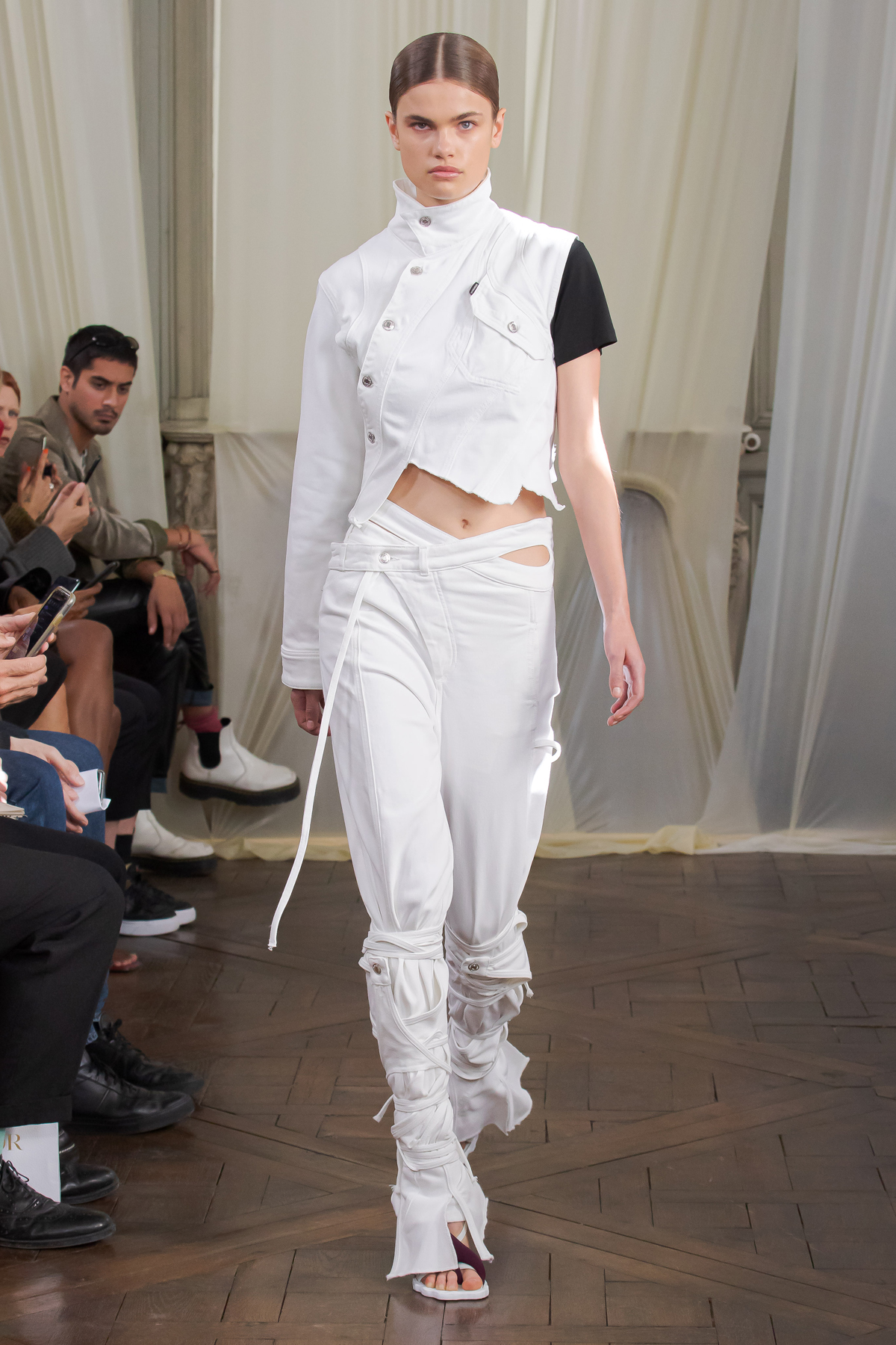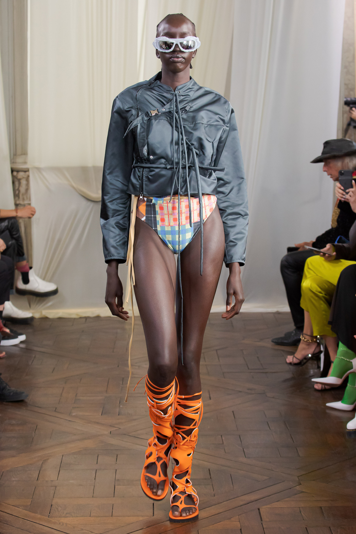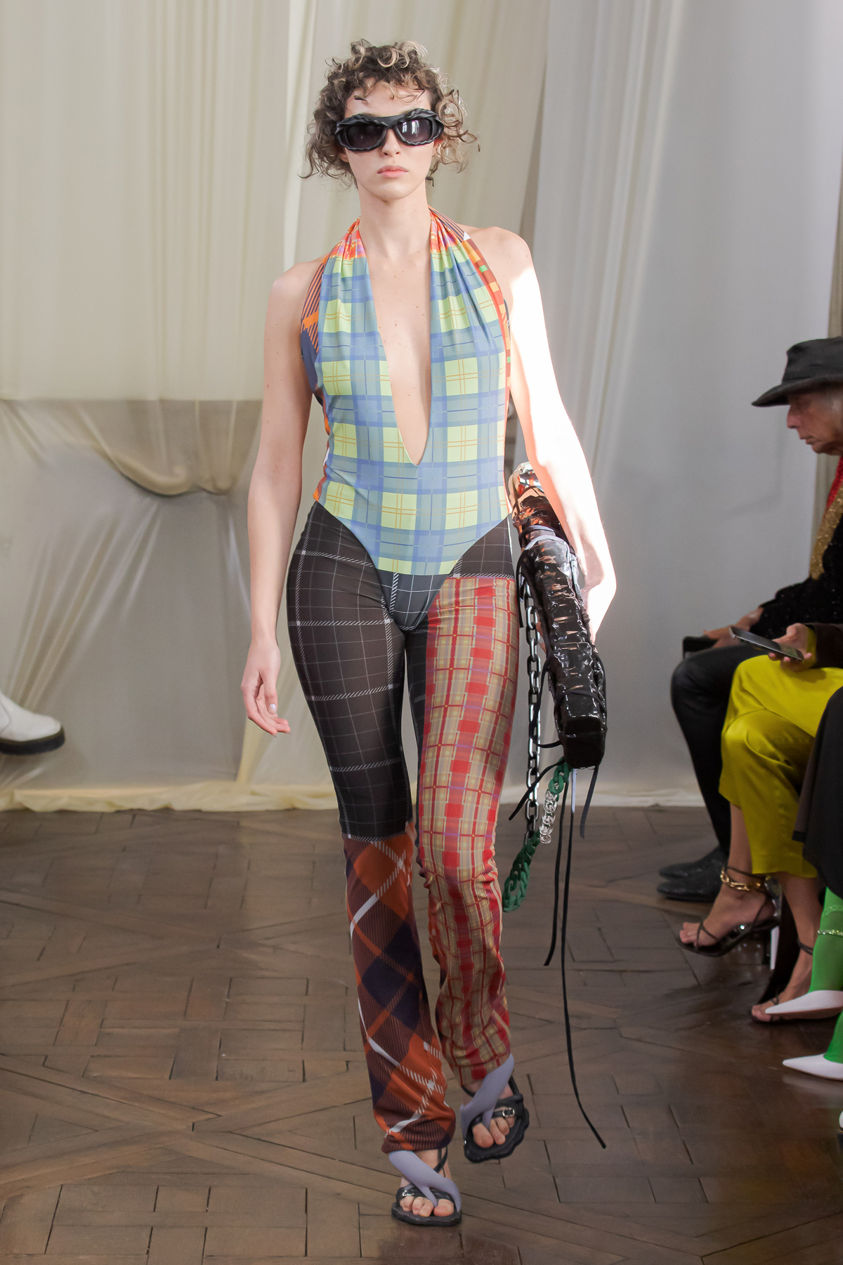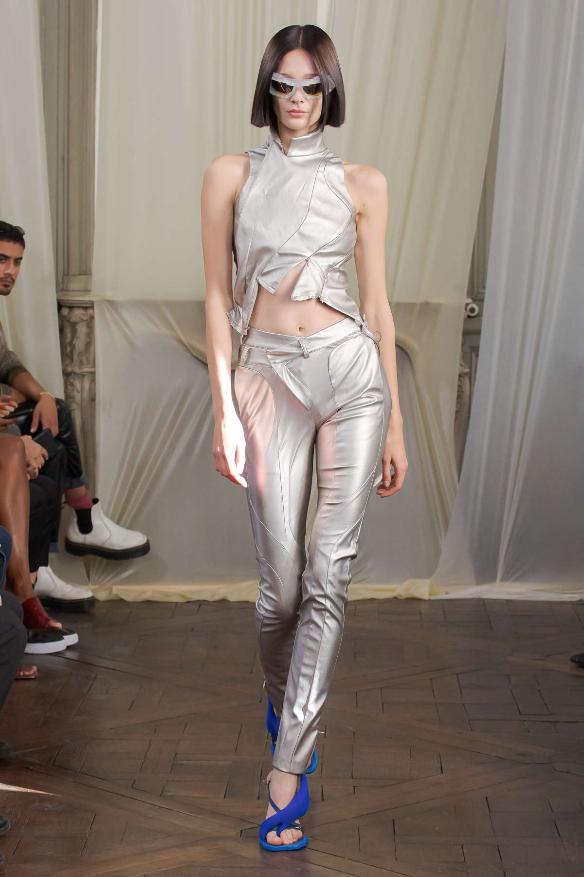 Les nuances et camaïeux se synchronisent avec la beauté décousue de l’œuvre de l’artiste Lucie Stahl, imprimé cette saison sur les pièces mesh signature de la marque. Ainsi les tricots côtelés sinueux s’enroulent et serpentent autour du corps tels des lianes sauvages, permettant de garder le contrôle de la situation, tout en restant élégants et agiles pour continuer l’exploration de ce nouveau monde.