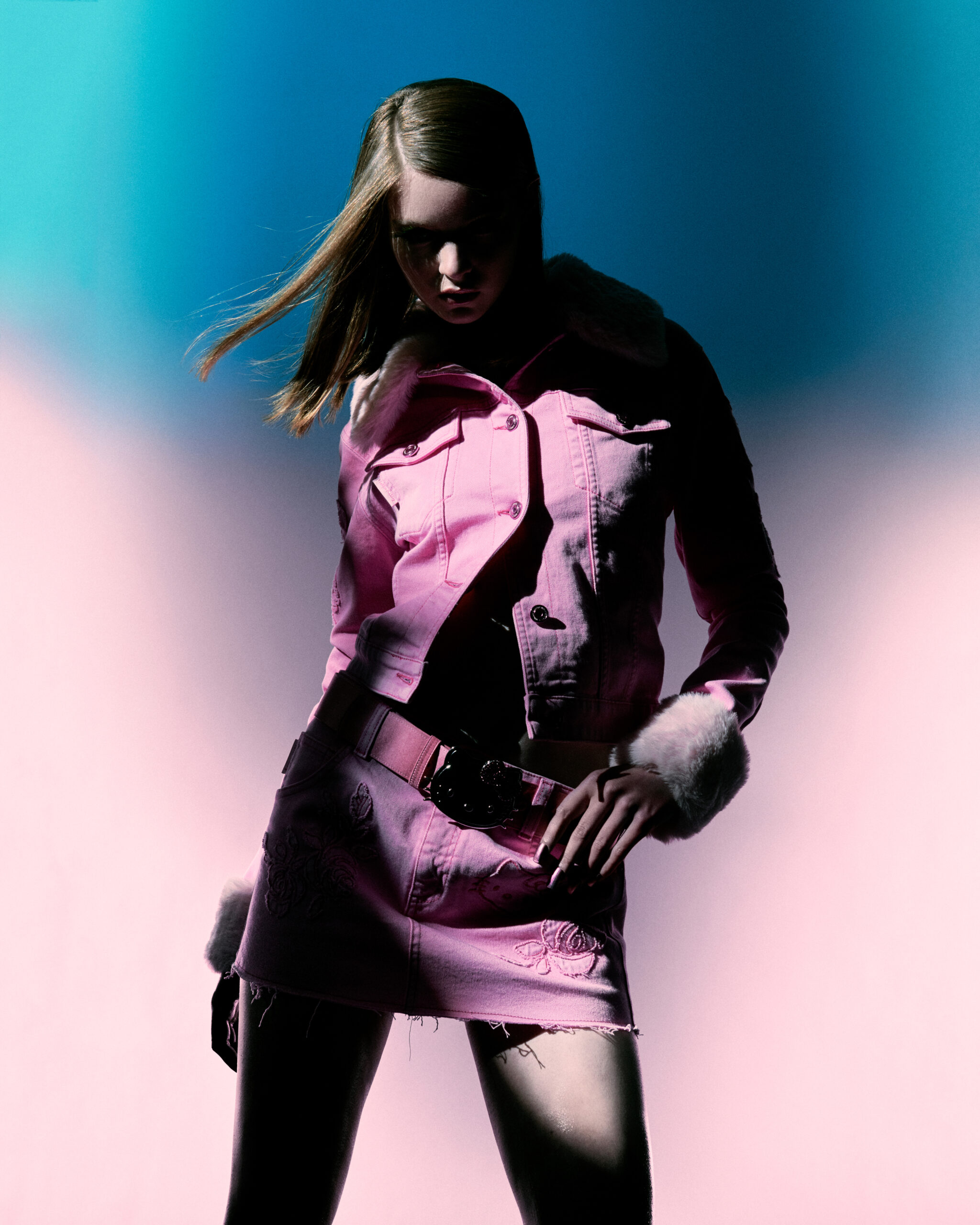 Douze pièces spéciales et un ensemble d’accessoires étincelants, avec quelques-uns des must-haves absolus des collections Blumarine : le jean flair, la mini-jupe et la veste en denim personnalisés par des patchs ton sur ton, le BluVi, également dans les versions une épaule et cropped, avec des détails en fausse fourrure, le sweat-shirt oversize, le top bandana avec des franges et celui à paillettes. Pour compléter le look : des mini-sacs scintillants, une ceinture avec maxi-boucle, un tour de cou galvanique rose et des épingles à cheveux.