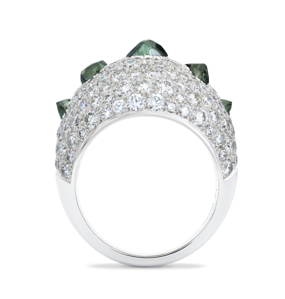 Les nouveaux ajouts à la collection Talisman de Haute Joaillerie comprennent des boucles d’oreilles cocktail présentant une forme moderne de larme ainsi que deux bagues cocktail au design audacieux.