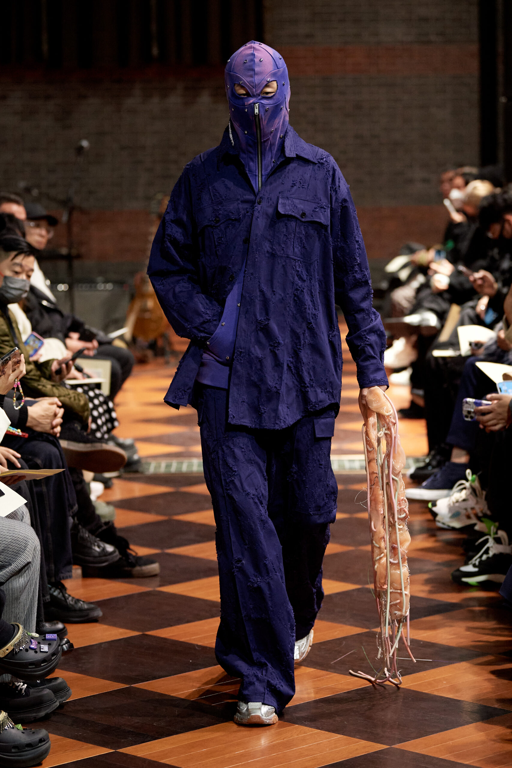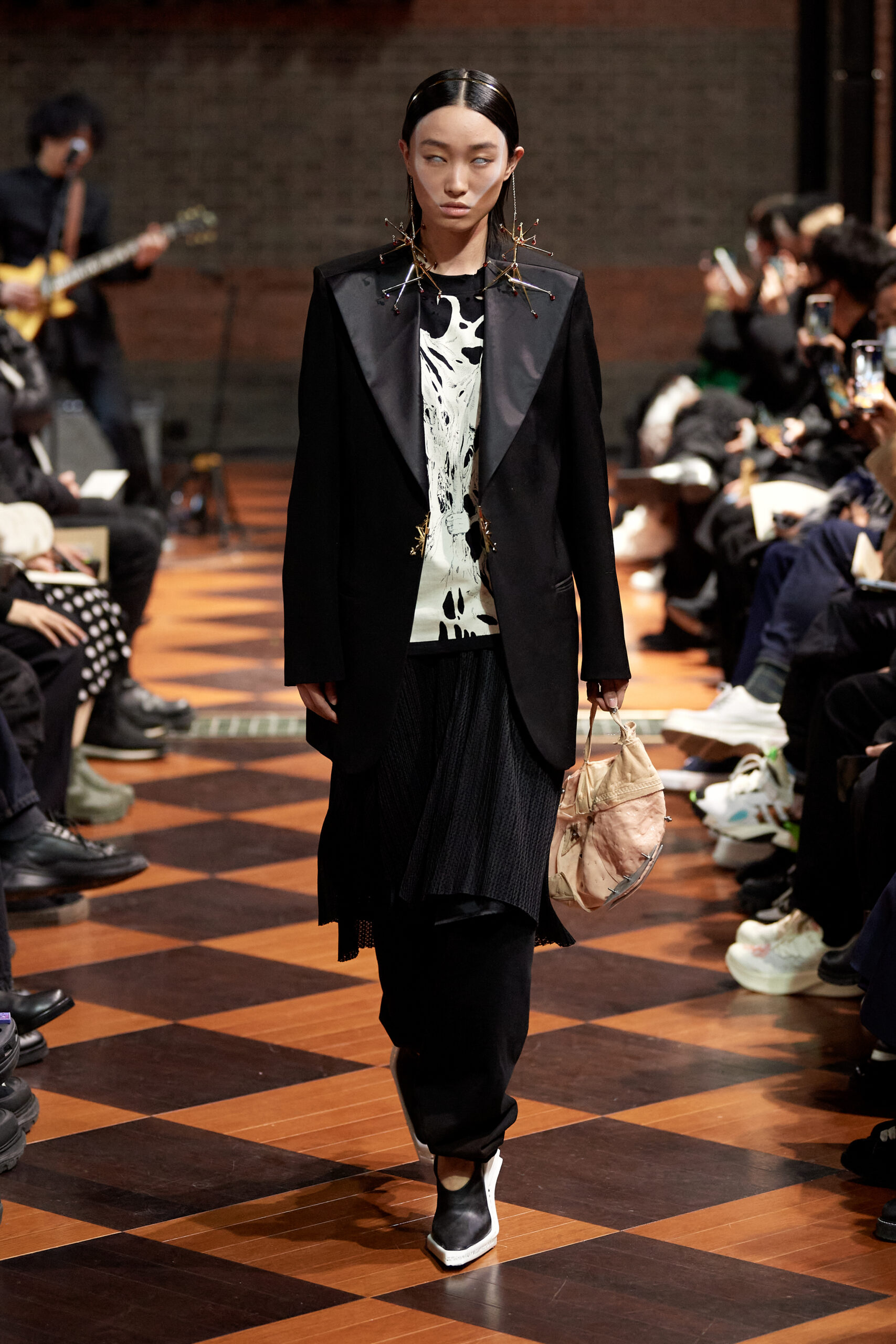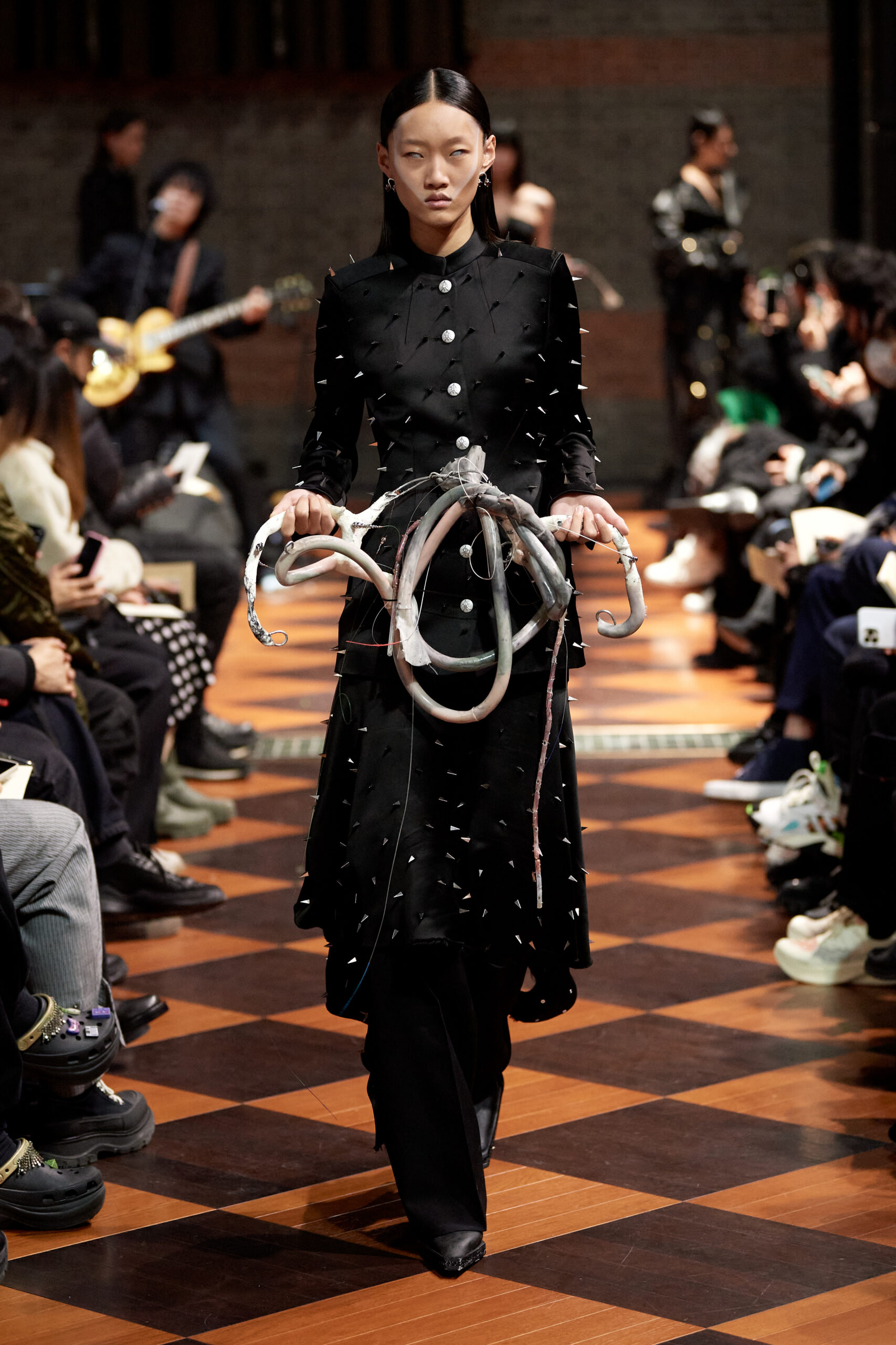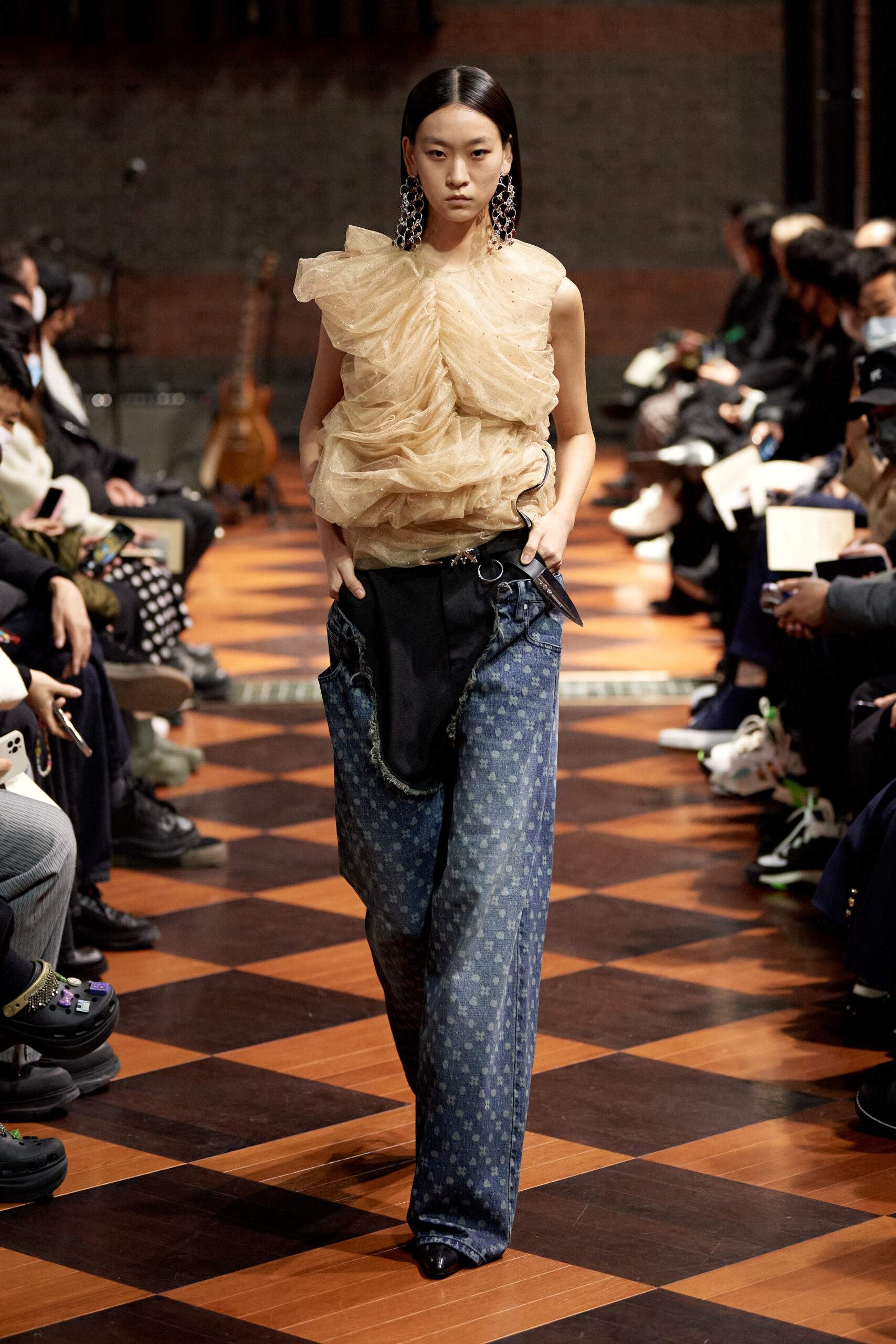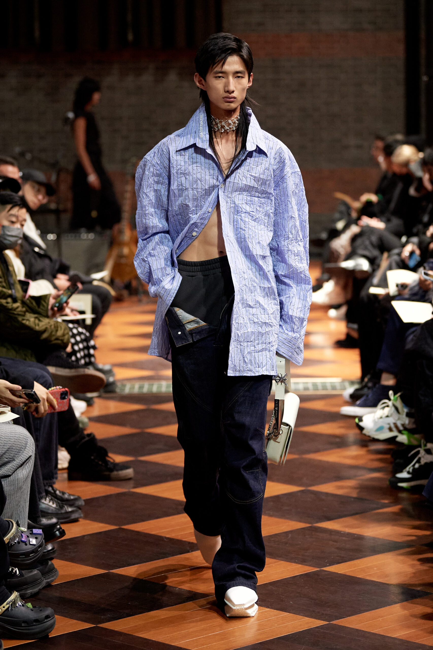 Cette collection brise la barrière de classe sociale en combinant des pièces de haute couture et de la rue, tout en conservant la forte contradiction et l’antagonisme de ces différents styles. Les costumes à épaules carrées représentent l’émancipation de la jeunesse contemporaine qui refuse l’assimilation. Les plis fluctuants continuent d’explorer les tissus, exprimant des émotions déferlantes de manière destructive et abstraite en couches et torsions.
