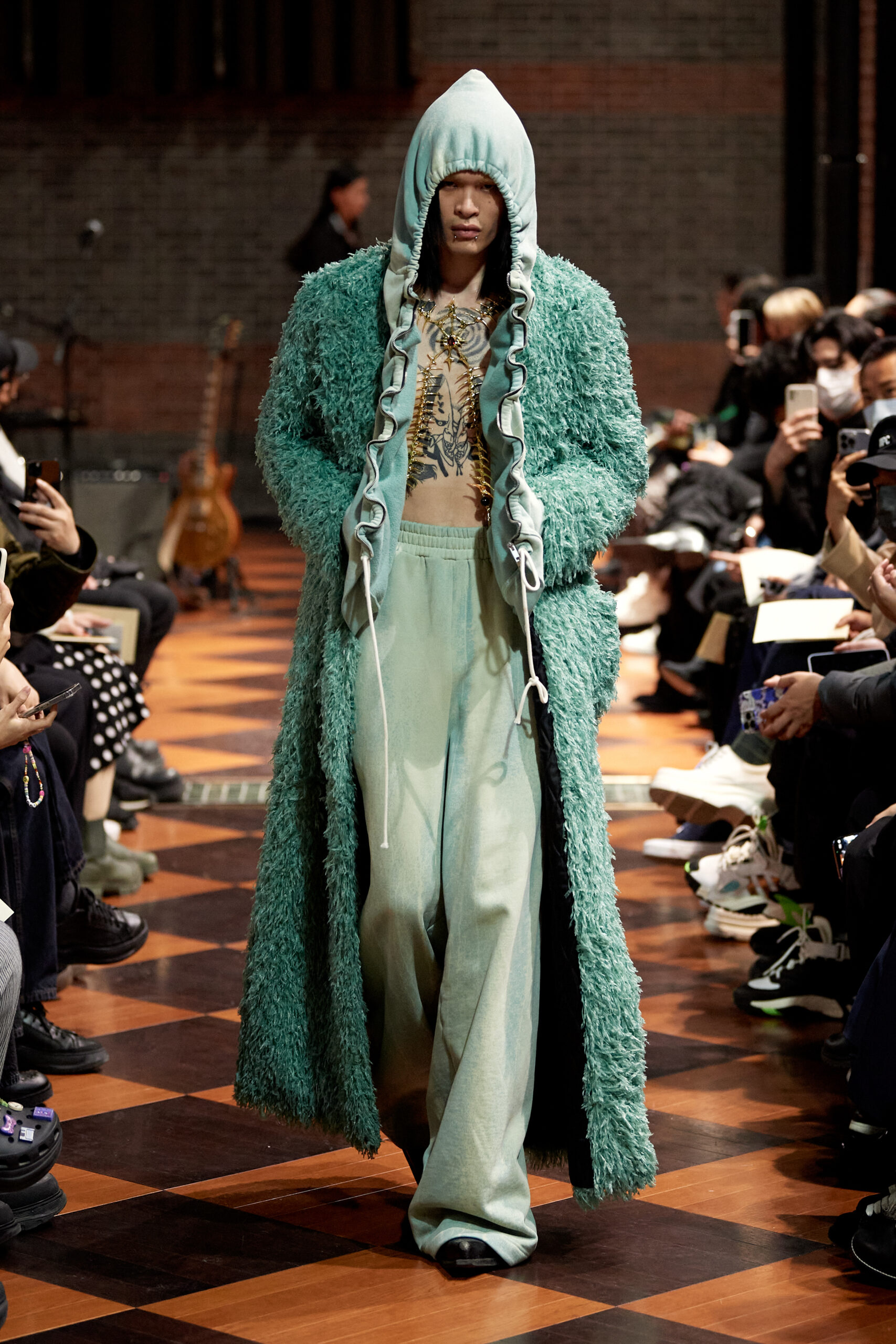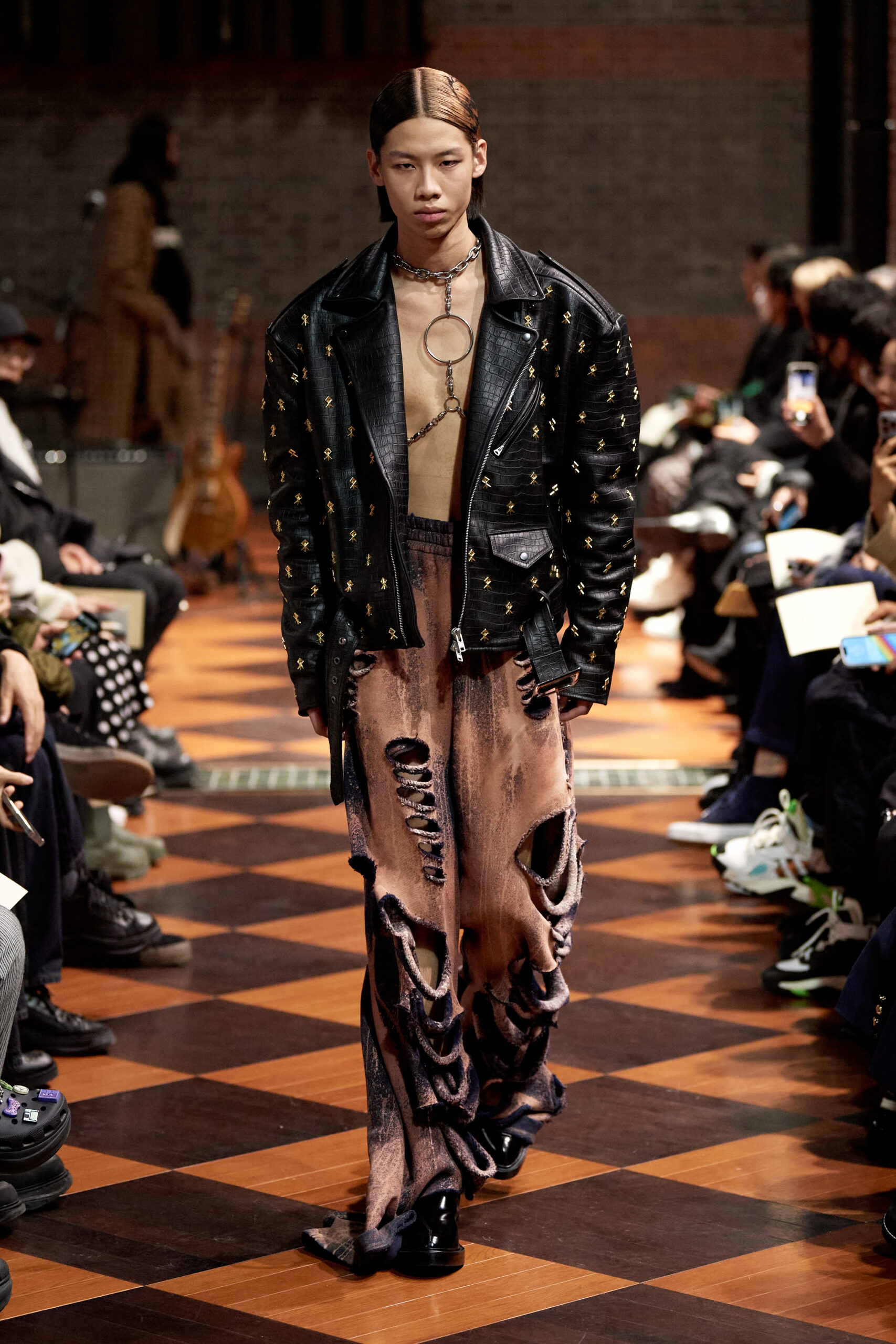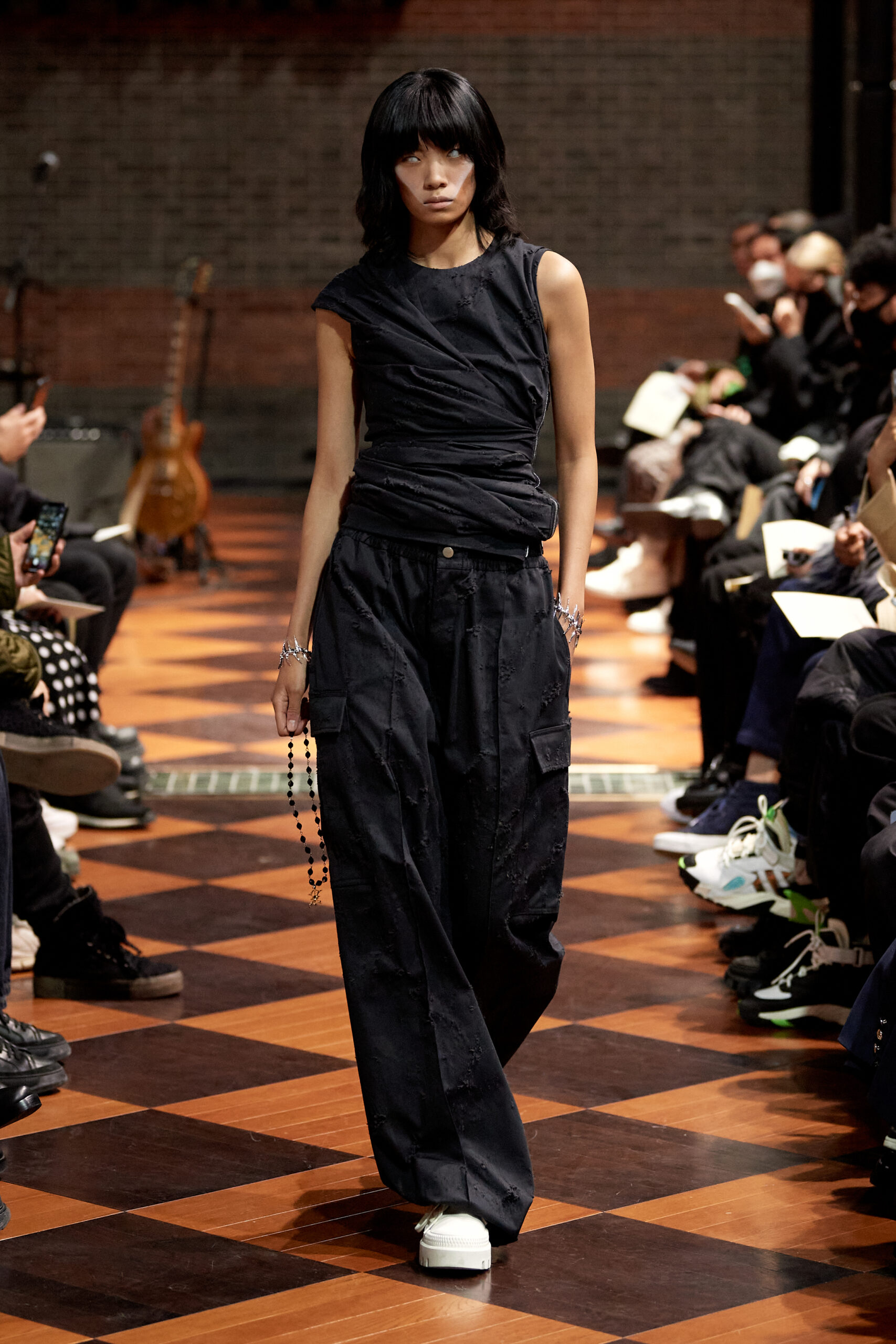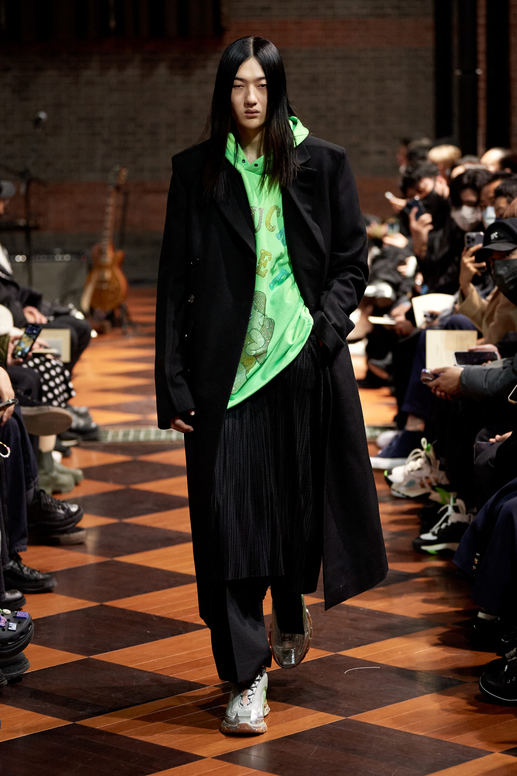Cette collection brise la barrière de classe sociale en combinant des pièces de haute couture et de la rue, tout en conservant la forte contradiction et l’antagonisme de ces différents styles. Les costumes à épaules carrées représentent l’émancipation de la jeunesse contemporaine qui refuse l’assimilation. Les plis fluctuants continuent d’explorer les tissus, exprimant des émotions déferlantes de manière destructive et abstraite en couches et torsions.