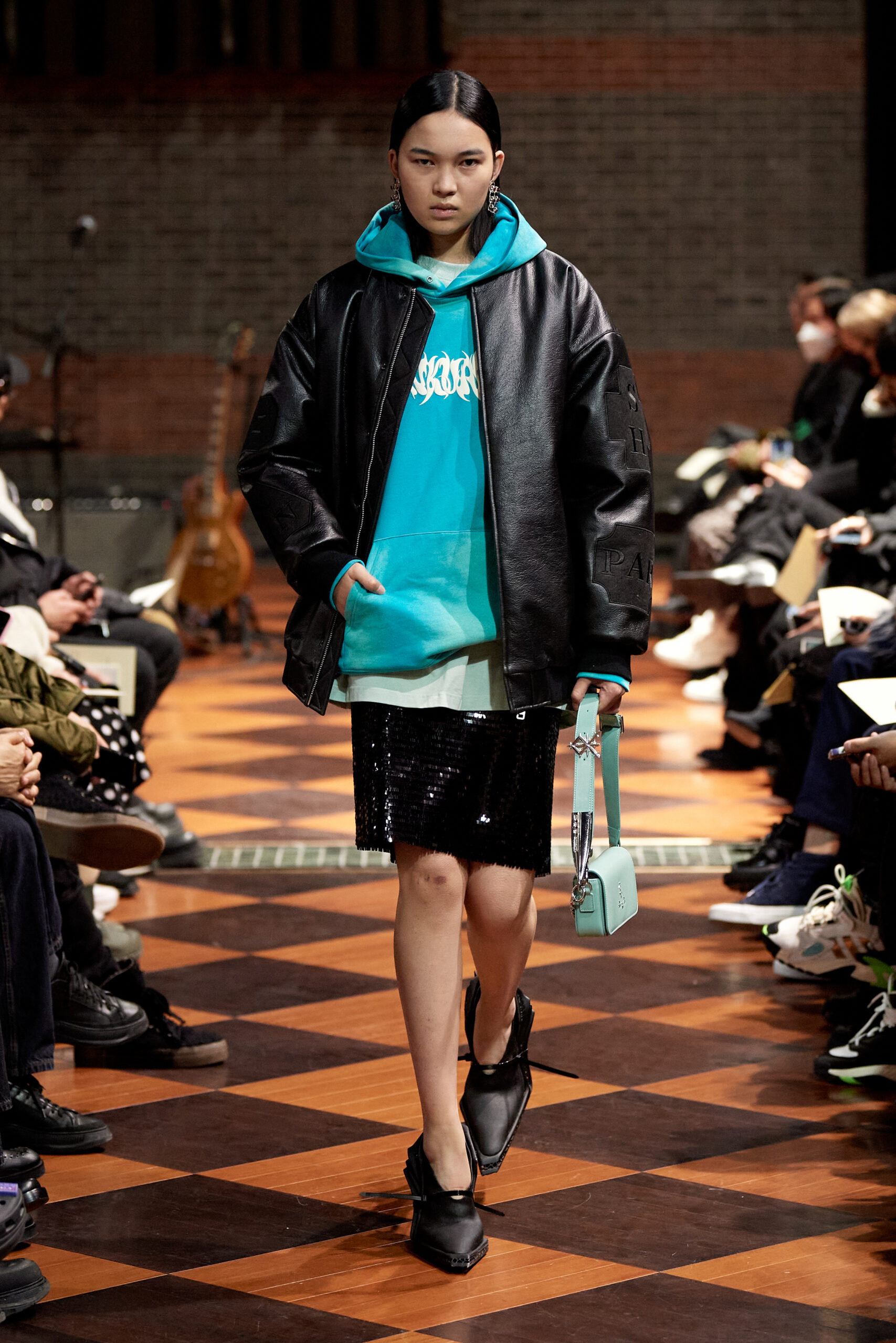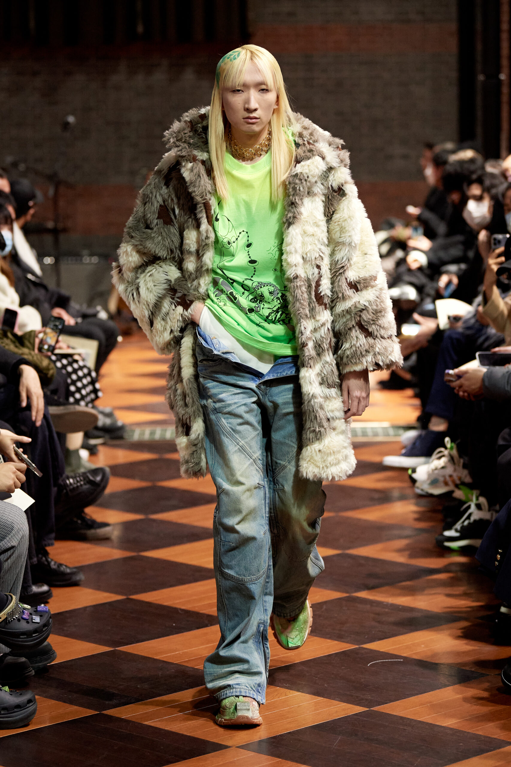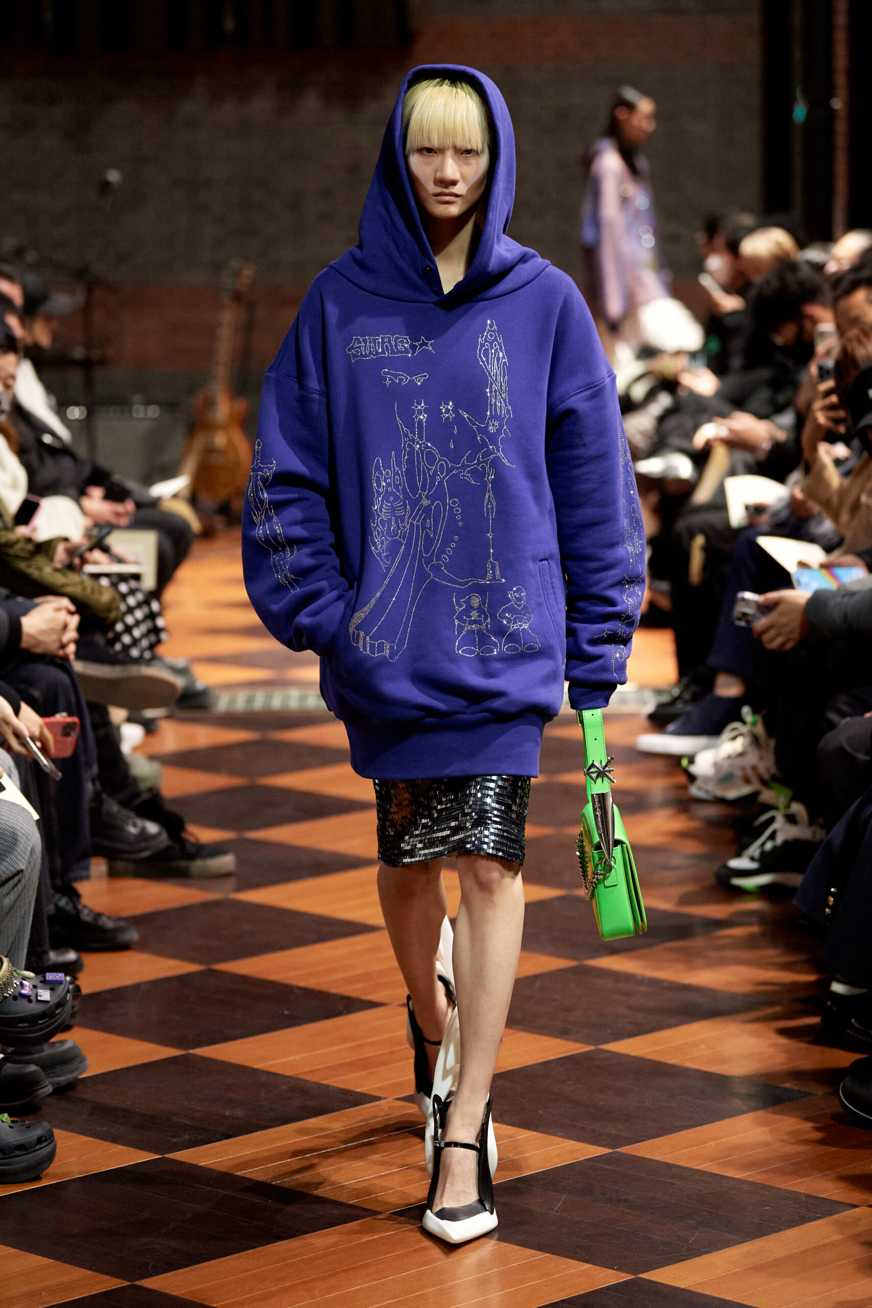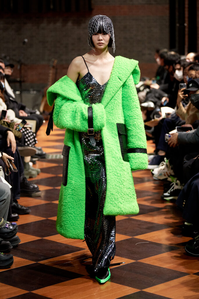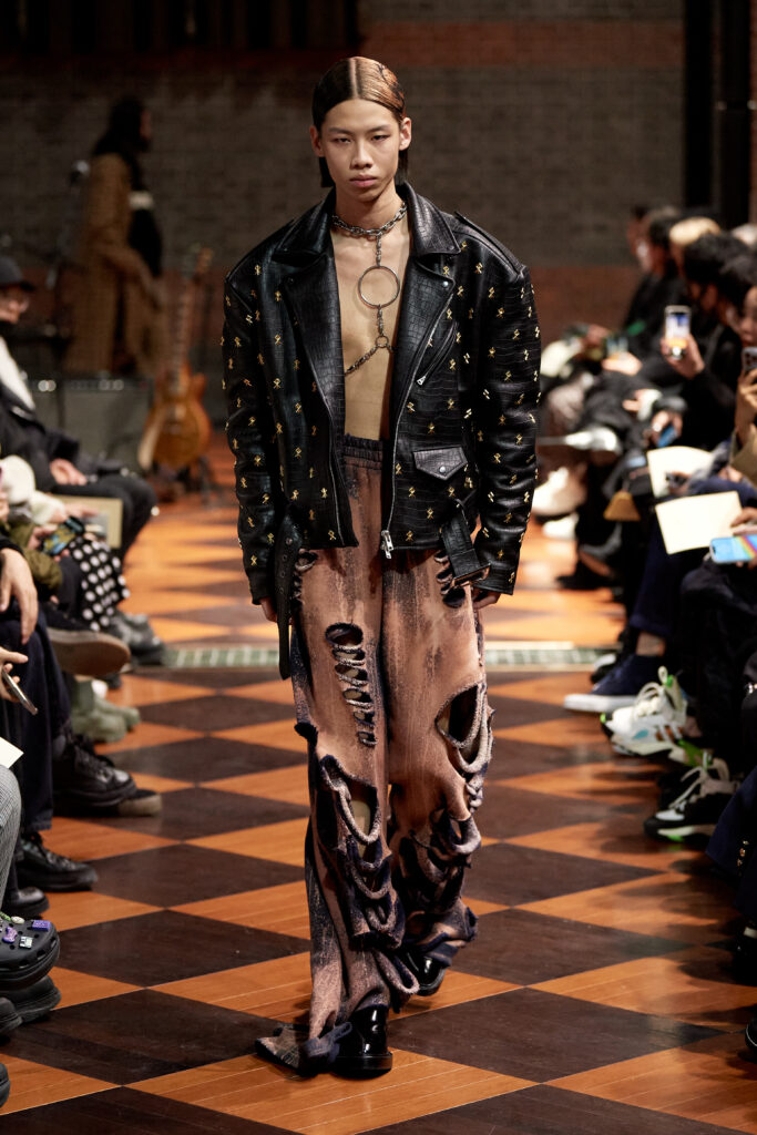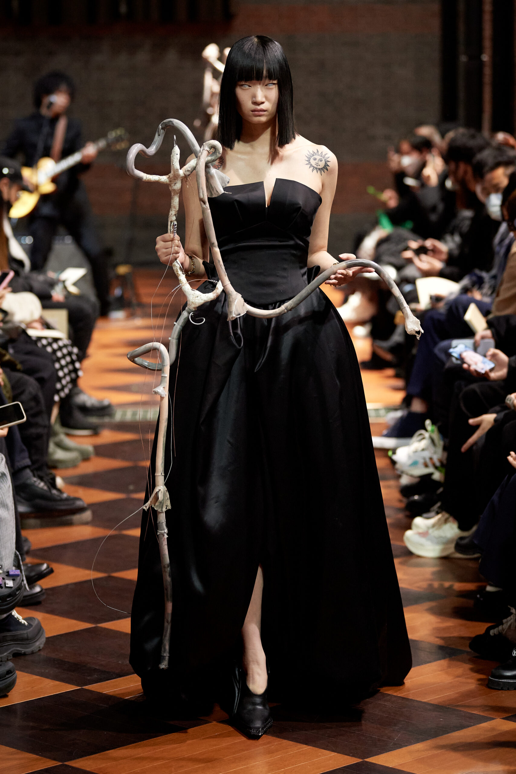 Cette collection brise la barrière de classe sociale en combinant des pièces de haute couture et de la rue, tout en conservant la forte contradiction et l’antagonisme de ces différents styles. Les costumes à épaules carrées représentent l’émancipation de la jeunesse contemporaine qui refuse l’assimilation. Les plis fluctuants continuent d’explorer les tissus, exprimant des émotions déferlantes de manière destructive et abstraite en couches et torsions.