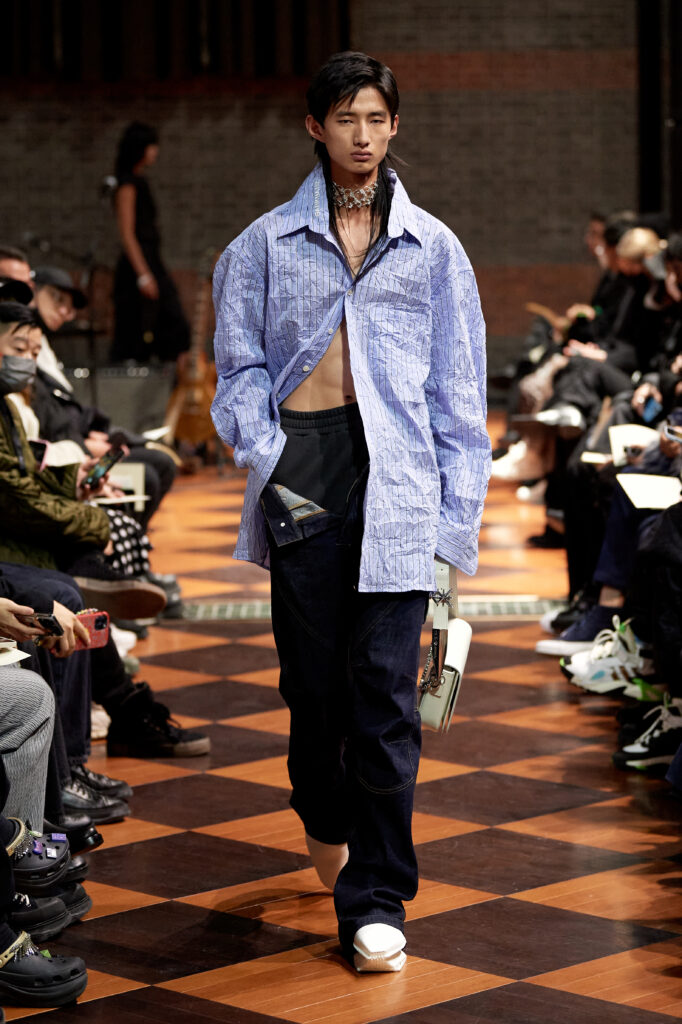 SANKUANZ AW22, intitulé A Room With No Sound, se ré approprie la haute couture et le streetwear à sa manière, en combinant des éléments classiques des collections précédentes et en renforçant le narratif de la marque par la transition de l’ancien au nouveau.