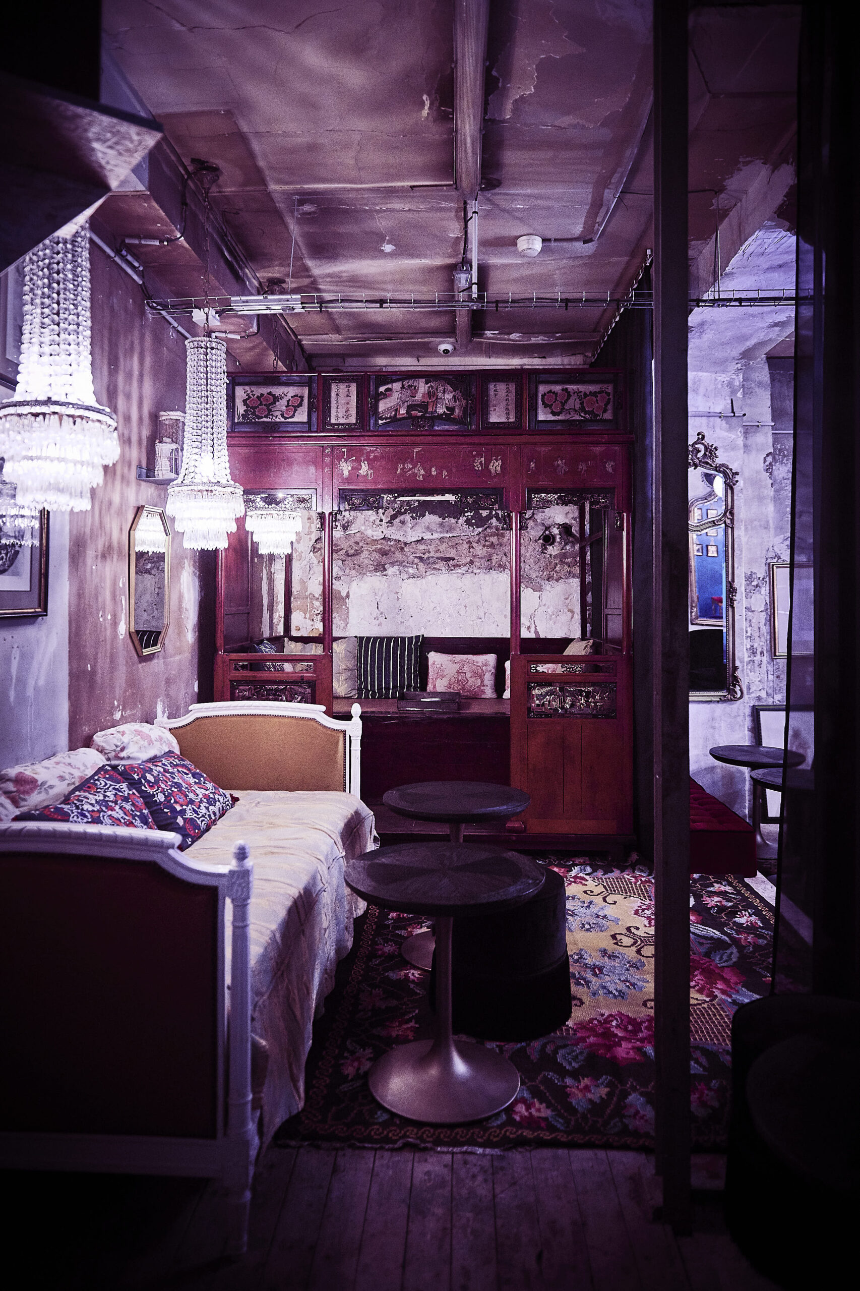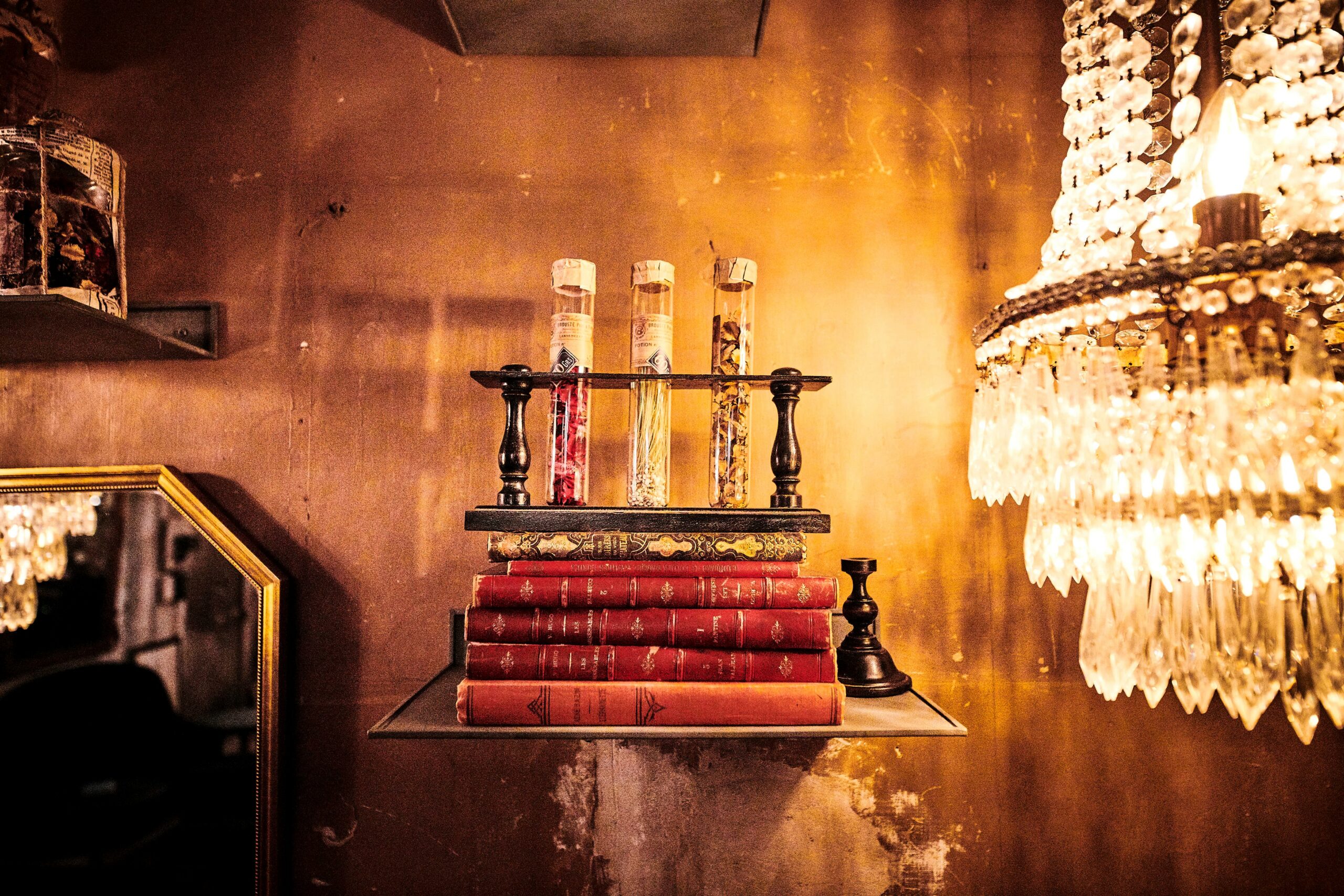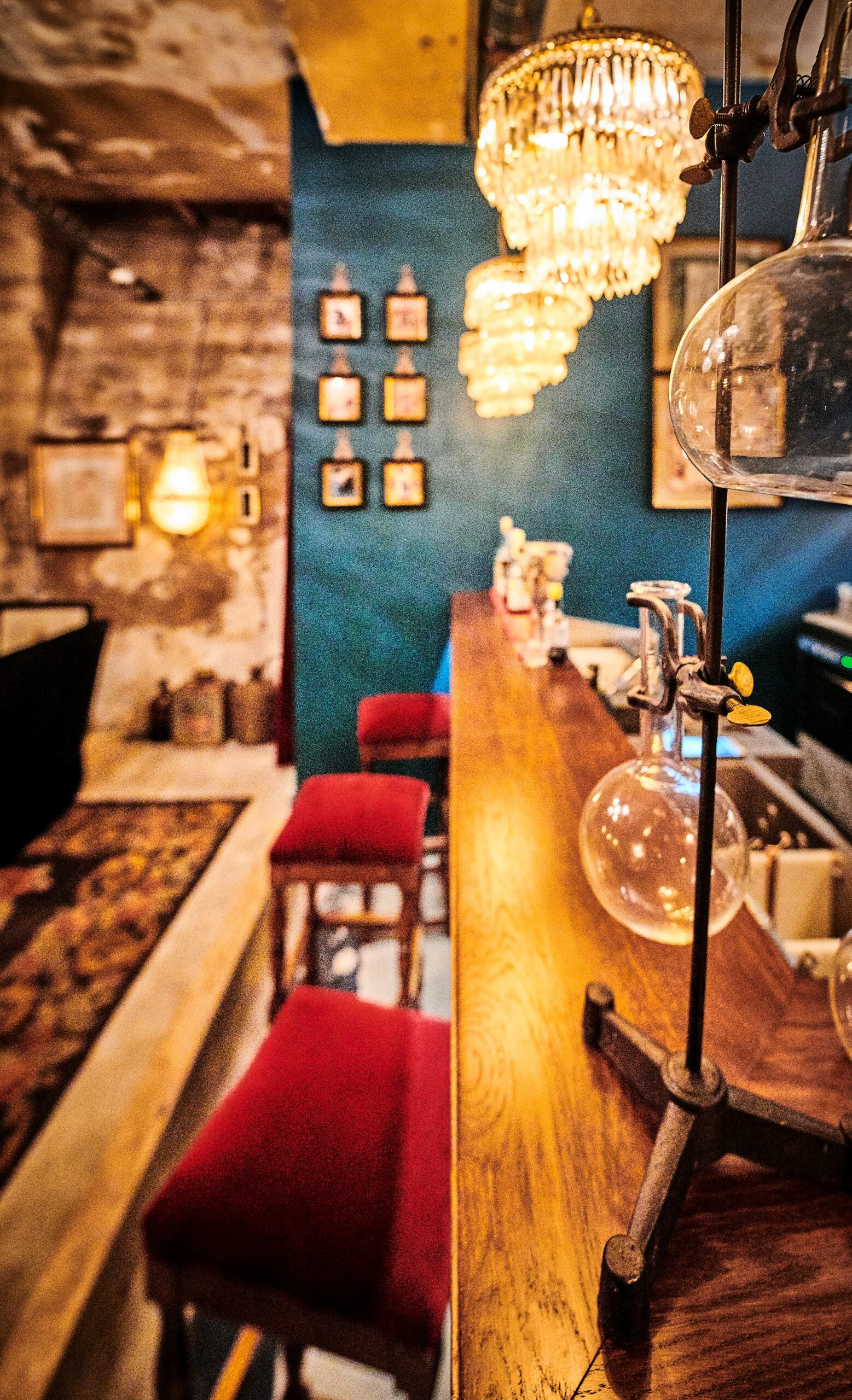 Côté décoration, on retrouve les codes des soirées « fantasques » parisiennes de la fin du XIXème siècle. L’élégante salle tamisée à la décoration soignée, à mi-chemin entre la boutique d’apothicaire et la fumerie d’opium est un savant mélange que les visiteurs apprécient également pour son atmosphère hautement confidentielle.