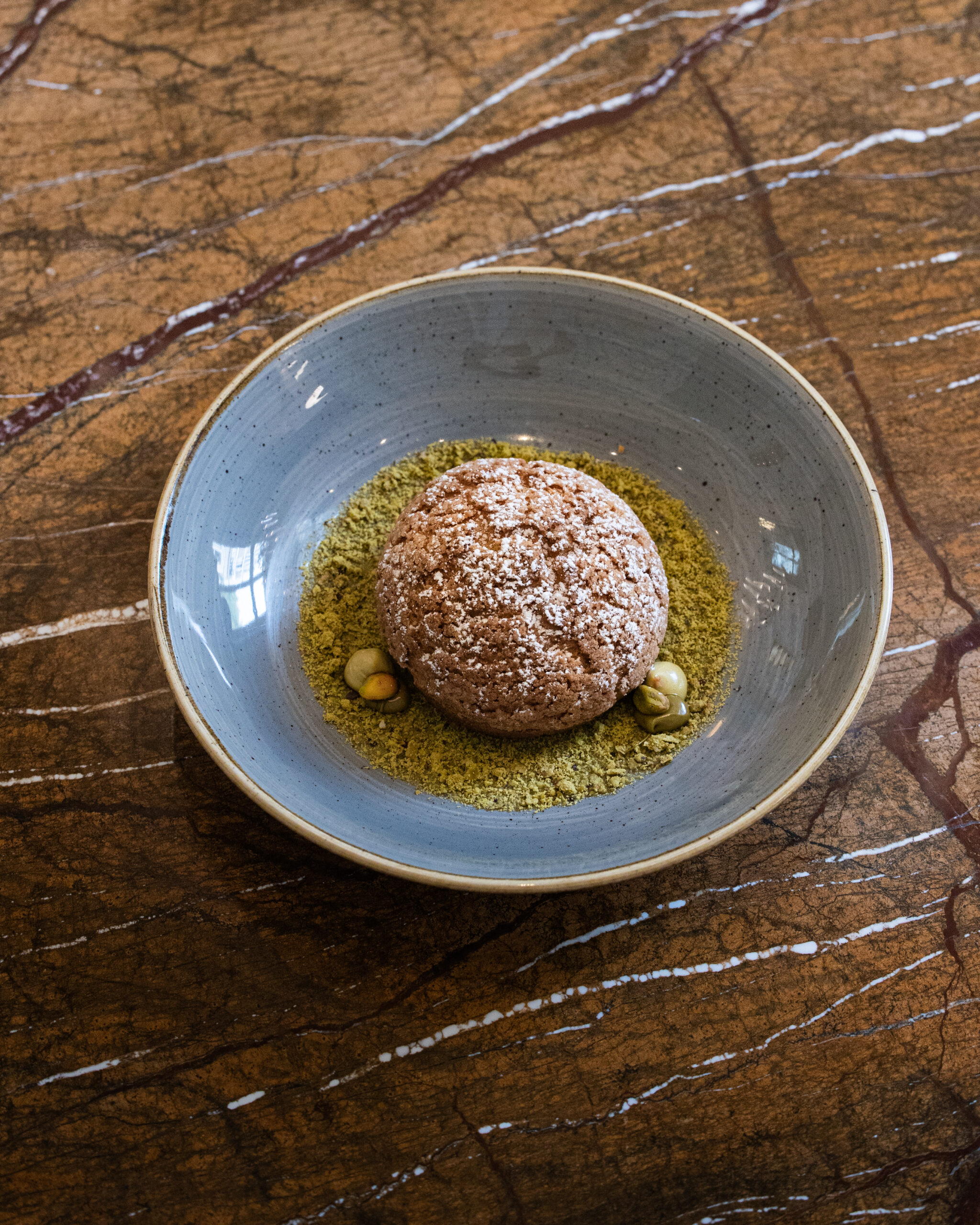 Depuis la rotonde et sa sublime rosace en bois d’origine, son grand lustre aux lames de verre et son miroir convexe, s’ouvrent ce qui fut le boudoir, la chambre de Madame, la salle à manger de l’hôtel particulier et son jardin d’hiver. Reprenant les plans de 1901, l’agence Toro & Liautard imagine le restaurant comme une pièce de théâtre, chaque pièce s’ouvrant comme un nouvel acte, suivant toutes la même histoire, les grandes arches de laiton et le travail des miroirs symbolisant entractes et transitions.