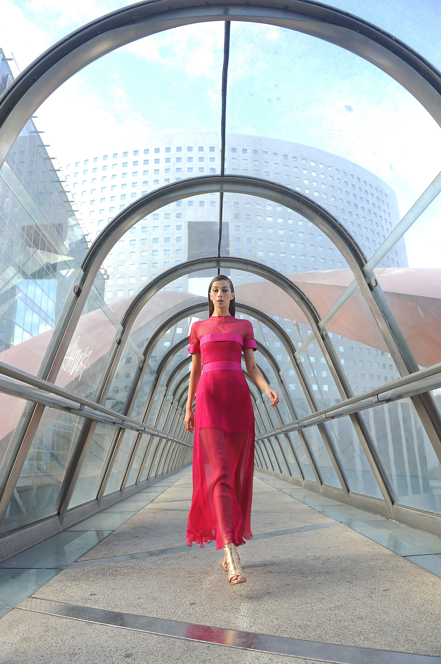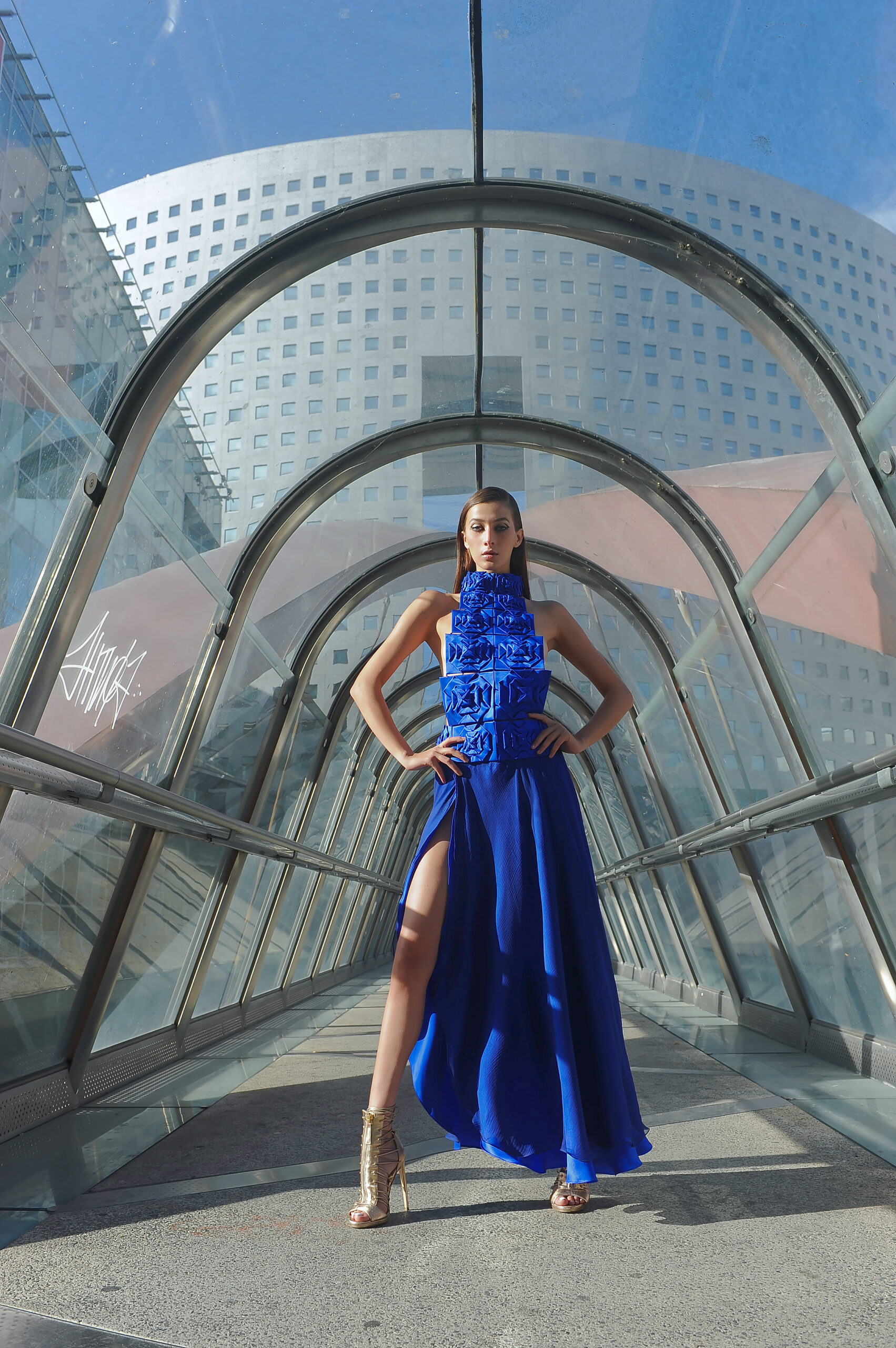 Farhad Re a puisé son inspiration dans l’actualité : fasciné par la conquête spatiale, il a imaginé une femme moderne, à la conquête du monde, tout en la reliant à ses origines romaines, telle une vestale du futur…