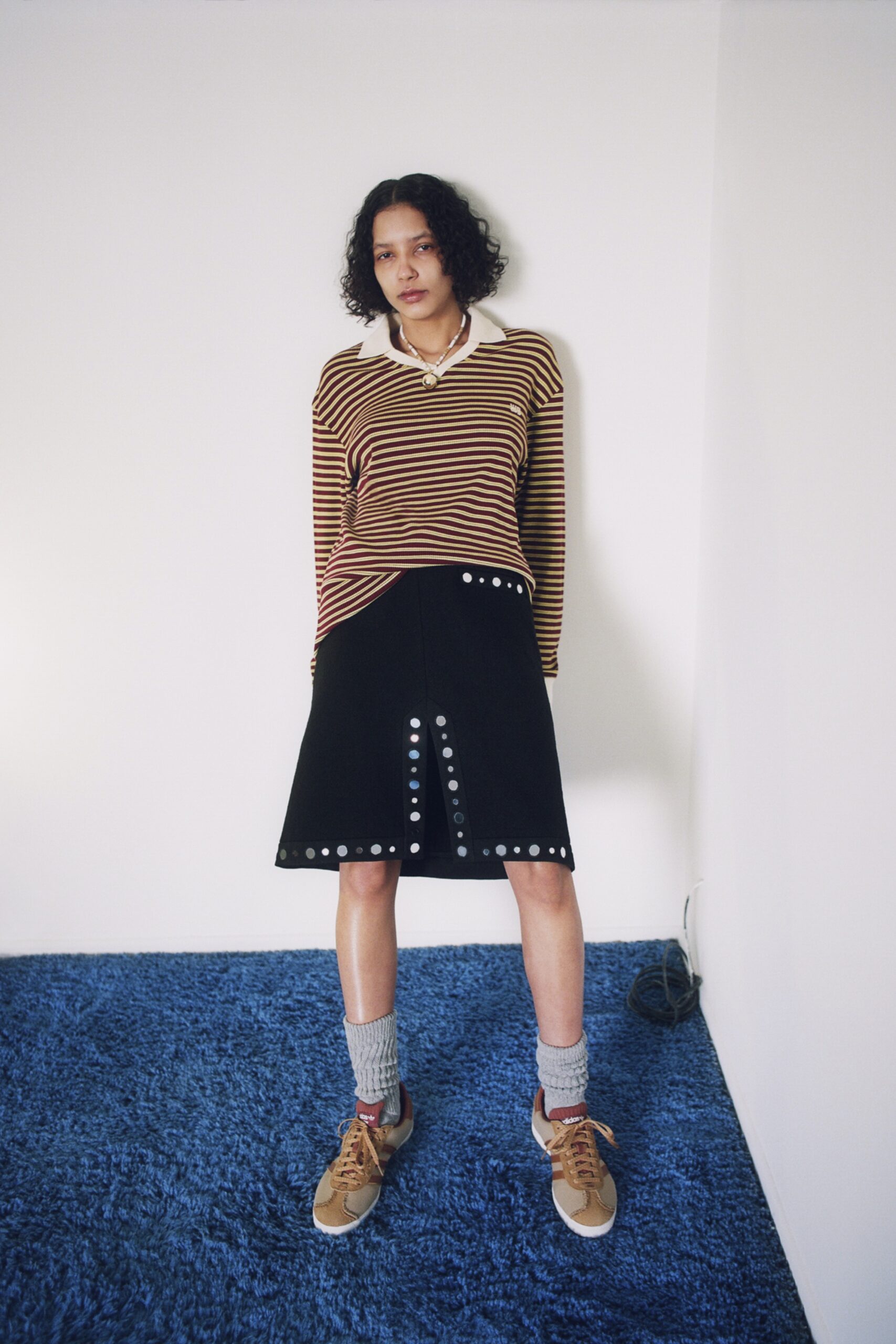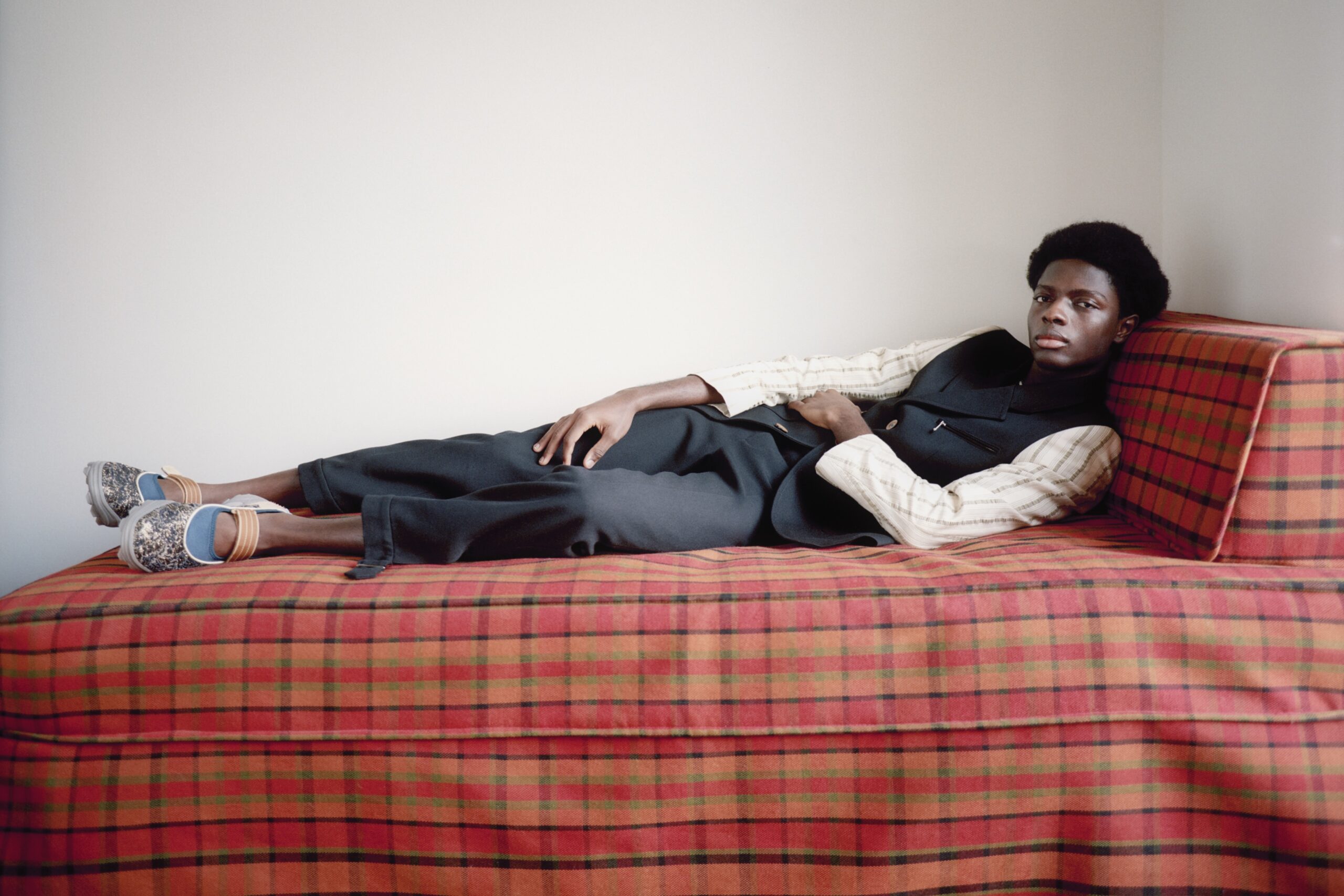 Togetherness also brings newness to Wales Bonner’s ongoing partnership with adidas Originals through technical craftsmanship – reimagined Gazelles in jewel tones and a sporty Mary-Jane in shimmering brocade.