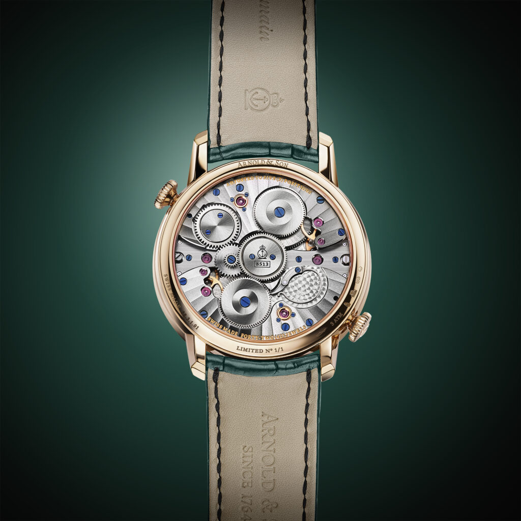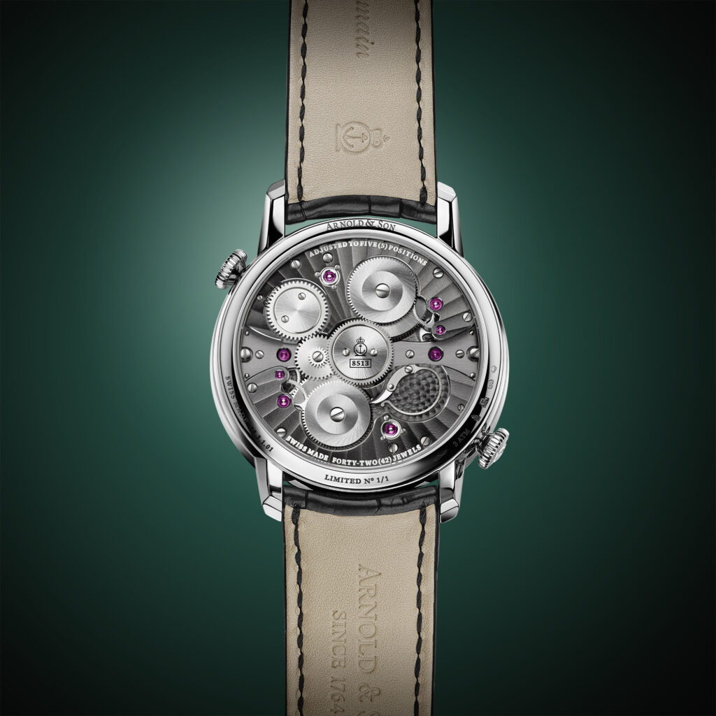 Rendant hommage à son fondateur John Arnold, l’un des horlogers les plus inventifs de son temps et de l’âge d’or de la chronométrie, Arnold & Son a toujours abordé le double fuseau horaire avec un degré de sophistication et de précision particulier. Au lieu du système « GMT » classique où une aiguille placée au centre indique l’heure secondaire, Arnold & Son a choisi de doter chacun des deux fuseaux d’un organe réglant dédié, rappelant ainsi la dualité des moyens de mesure – l’un horloger, l’autre astronomique – utilisés alors à bord des frégates anglaises du 18ème siècle.