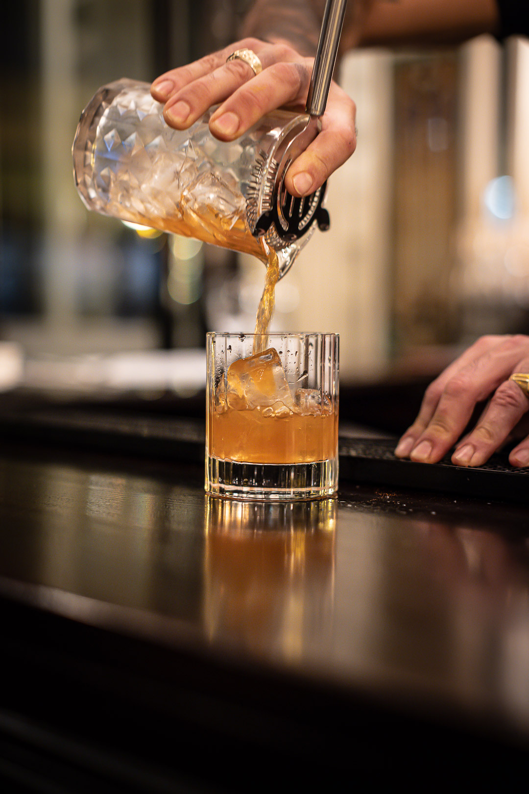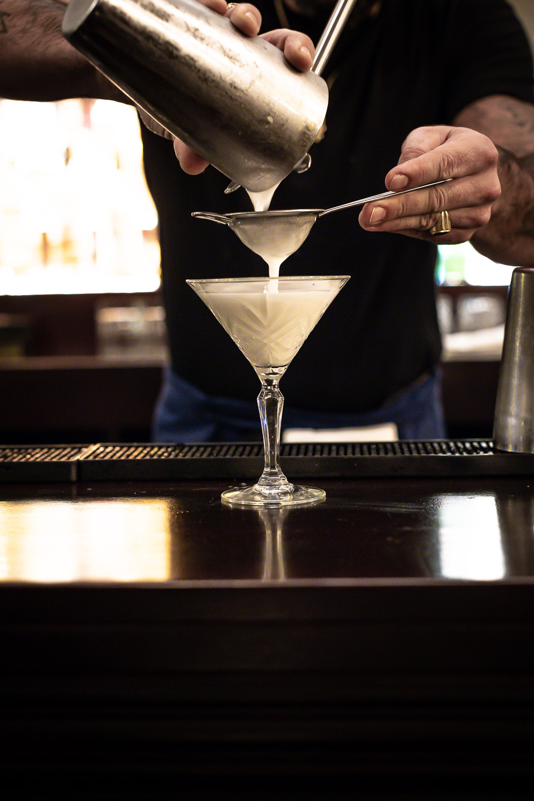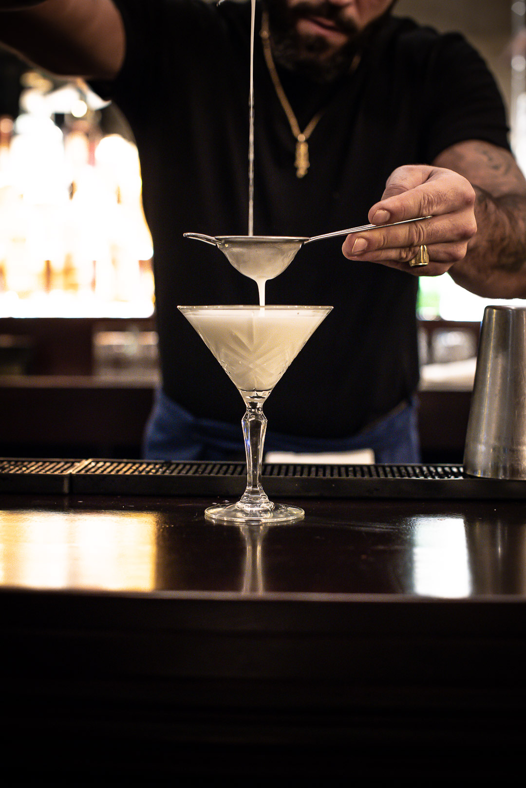En capitaine, le barman Miguel Romo Largo propose des cocktails festifs à siroter entre amis ou une coupe de champagne en tête-à-tête. Shaker en main, t-shirt noir et bras tatoués, le barman distille une carte d’une vingtaine de recettes.