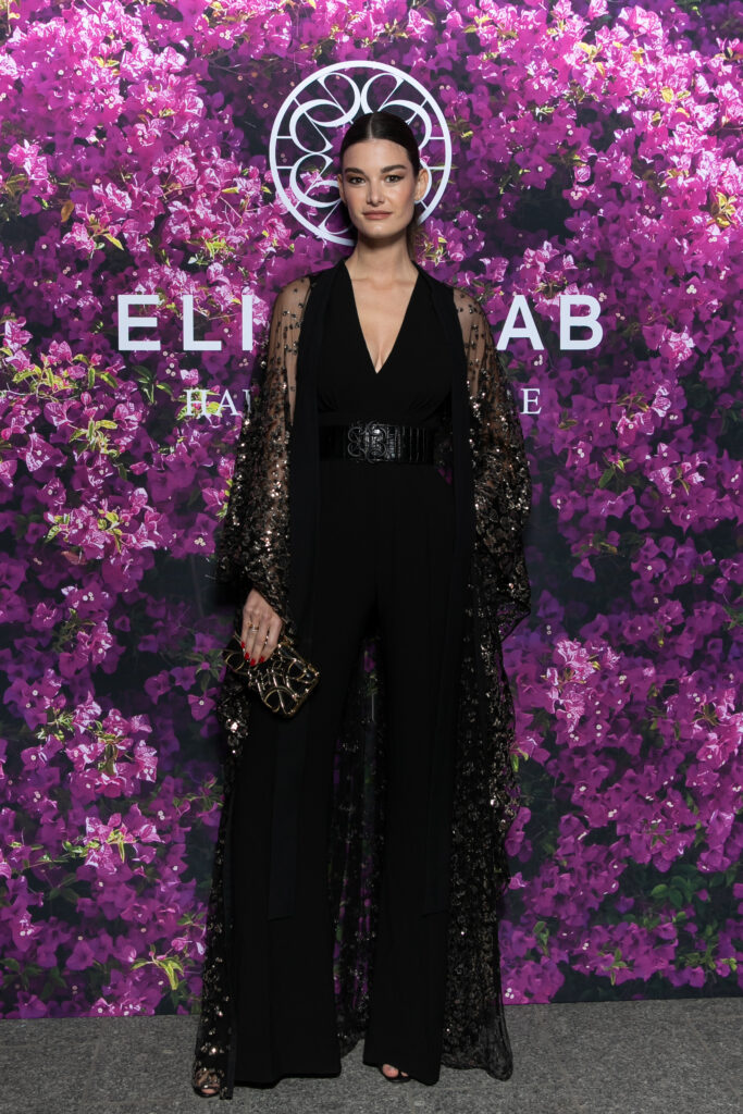 Ophélie Guilermand portait une combinaison noire assortie d’une cape brodée de la collection ELIE SAAB Prêt-A-Porter Pre-Fall 2021.