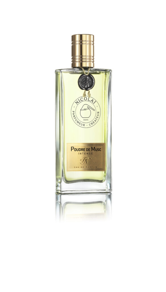 Poudre de Musc Intense est un bouquet de muscs sur un cœur floral et pétallé de rose, d’oeillet et d’aubépine, illuminé par la fleur d’oranger, dont l’élégance est réchauffée par la profondeur du bois de santal. Un cocktail d’aldéhydes vient bousculer la douceur des muscs pour les rendre vibrants et texturés.