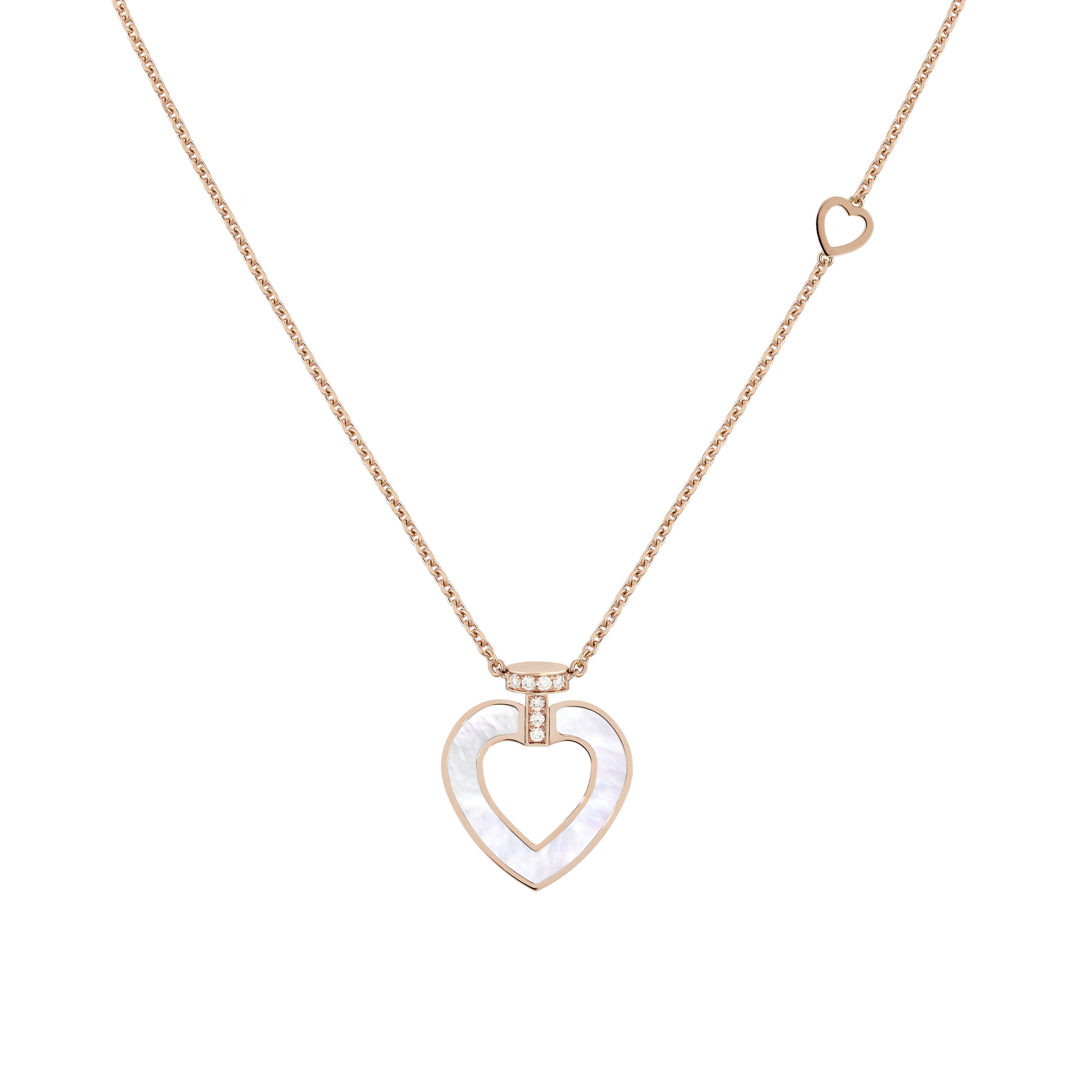 Proposé dans deux tailles et glissé sur un collier en or rose, ce nouveau coeur ajouré réserve plusieurs surprises