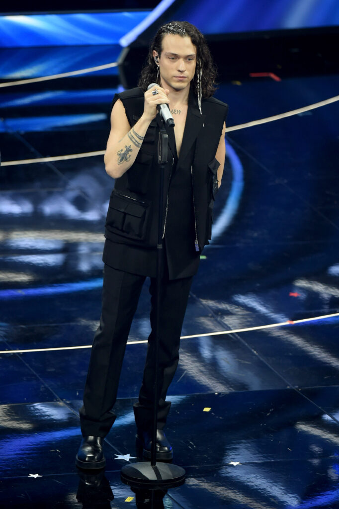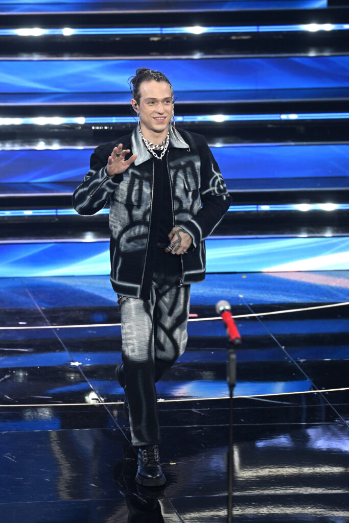 SANREMO, ITALY – FEBRUARY 04: Irama attends the 72nd Sanremo Music Festival 2022 at Teatro Ariston on February 04, 2022 in Sanremo, Italy. (Photo by Daniele Venturelli//Getty Images)