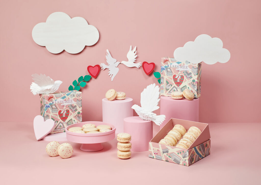 Les nouveautés Ladurée pour la Saint Valentin La célèbre Maison parisienne propose aux amoureux de fêter avec gourmandise la Saint Valentin avec un coffret de macarons, une pâtisserie en forme de cœur, une formule tea-time et un menu spécial très romantique.
