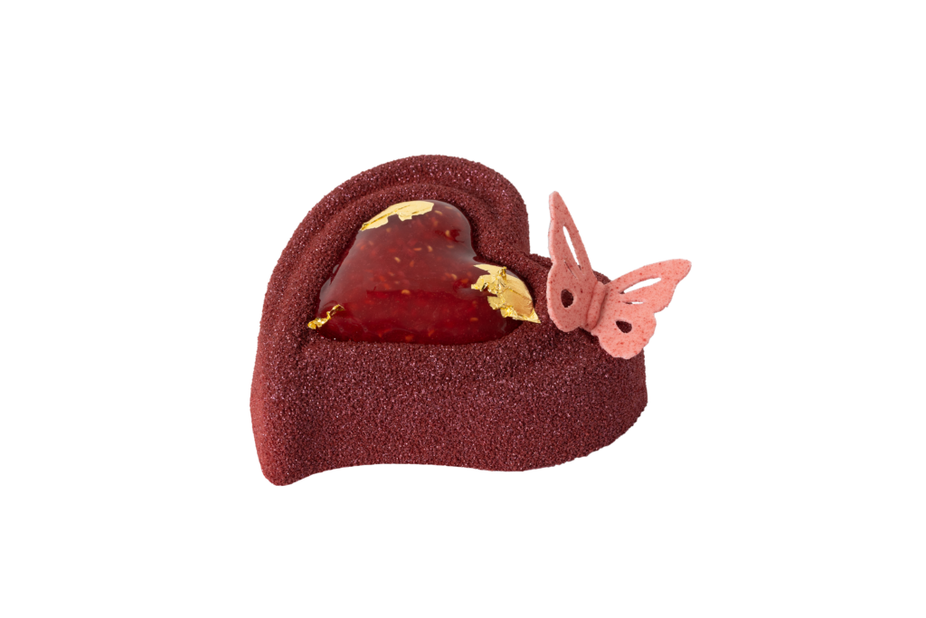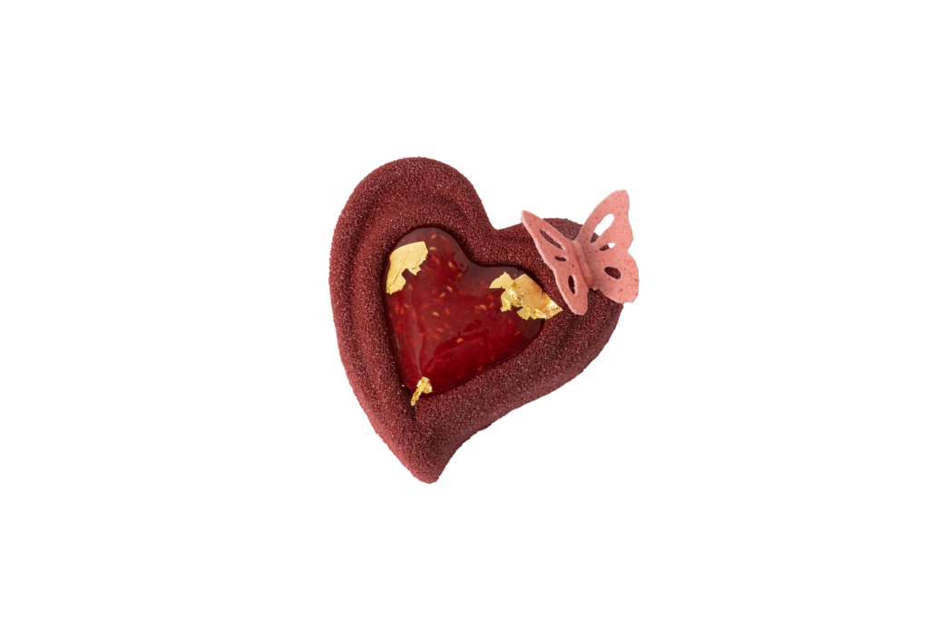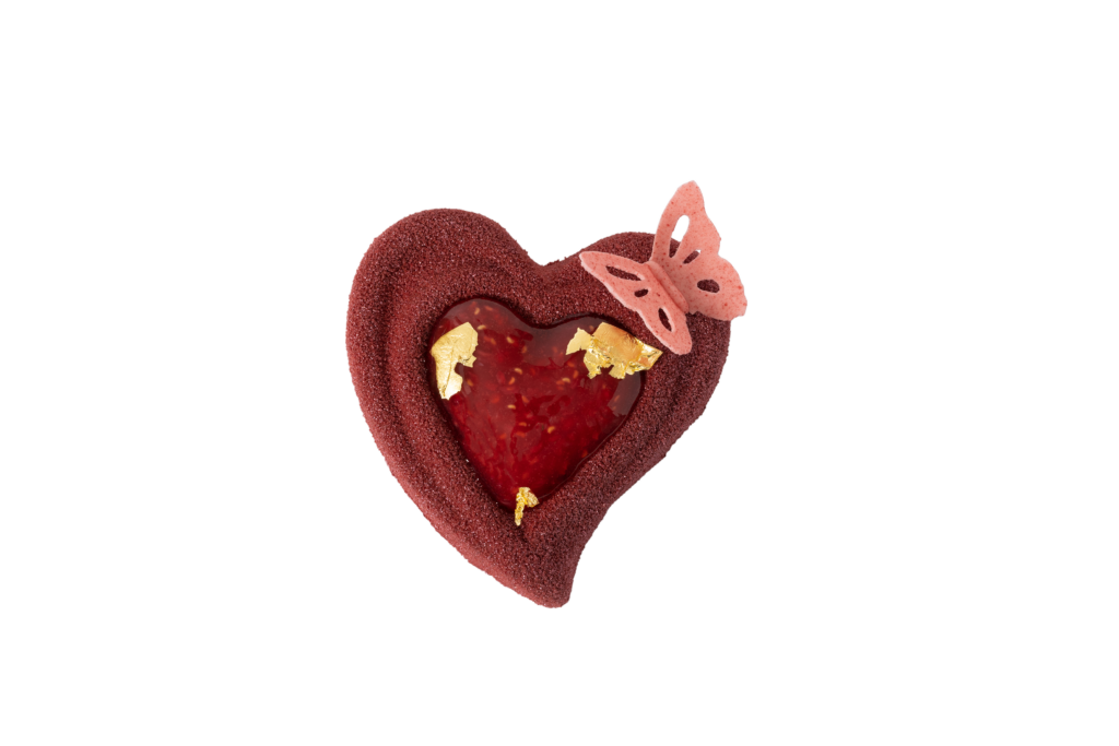 Afin de célébrer avec passion la fête des amoureux, Julien Alvarez, Chef de la Création Sucrée, imagine une pâtisserie à partager. Laissez-vous surprendre par cet entremets en forme de cœur couleur rouge vermillon, composé d’un sablé croustillant noix de coco et fleur de sel, d’un biscuit madeleine noix de coco et citron vert, d’une gelée pamplemousse framboise et d’une crème légère à la noix de coco.