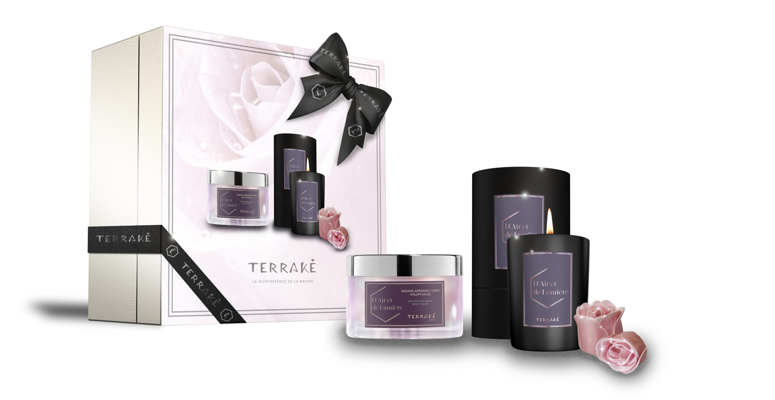 TERRAKÉ lance un joli coffret pour la Saint Valentin, composé d’une bougie relaxante au thé blanc, de la mousse aérienne corps et de 2 roses de bain au parfum délicat.