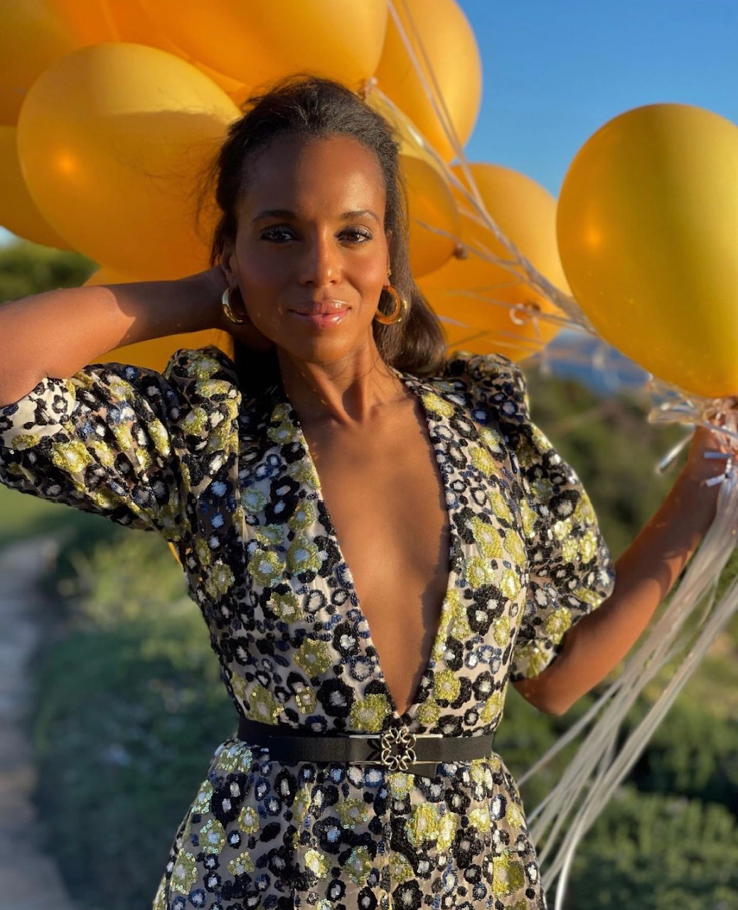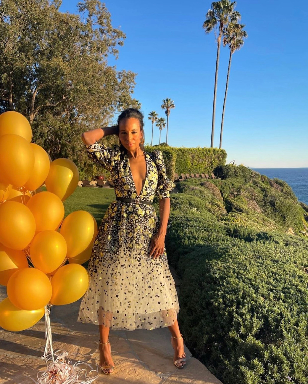 Kerry Washington spotted on her Instagram wearing a floral dress in tulle