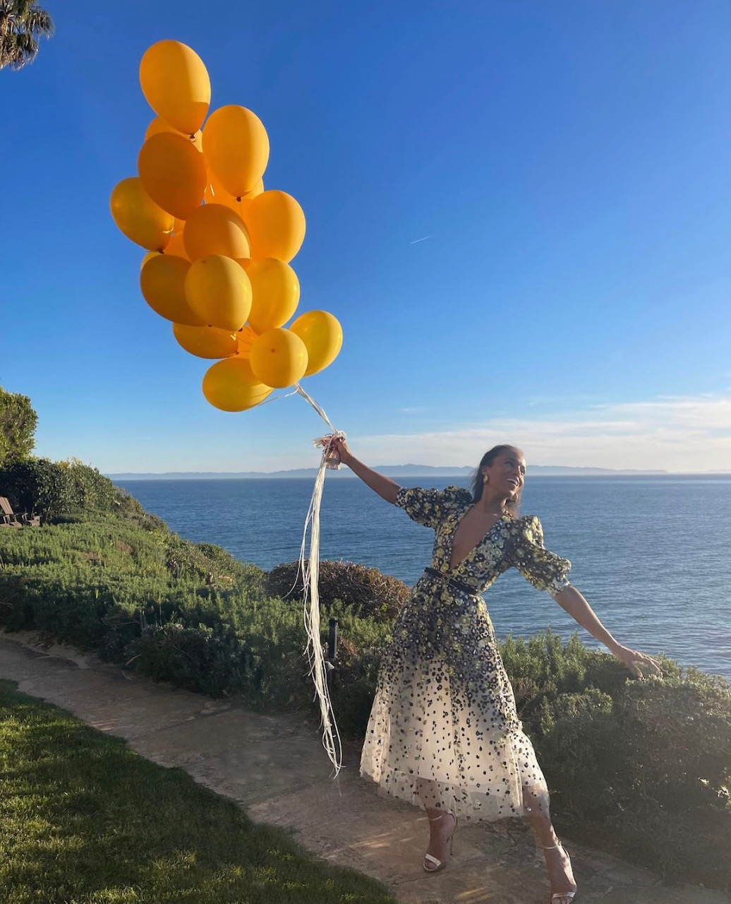 with a black belt celebrating her birthday. Her look is from the ELIE SAAB Ready-To-Wear Resort 2022 collection.