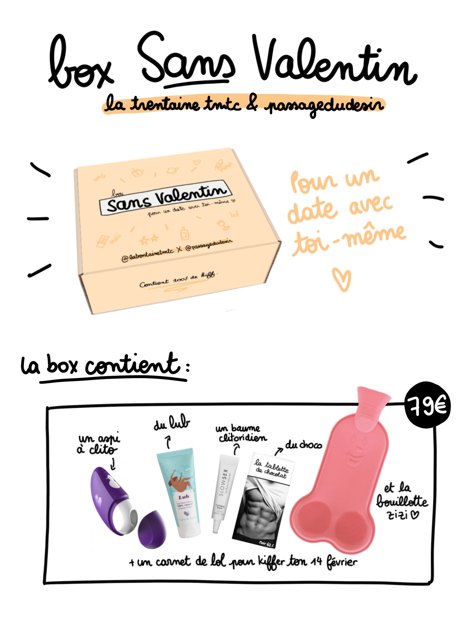 La Box Sans Valentin, pour un date avec soi-même du passage du désir, pour se faire plaisir à soi même.