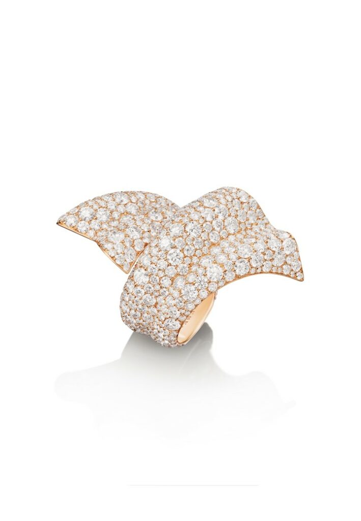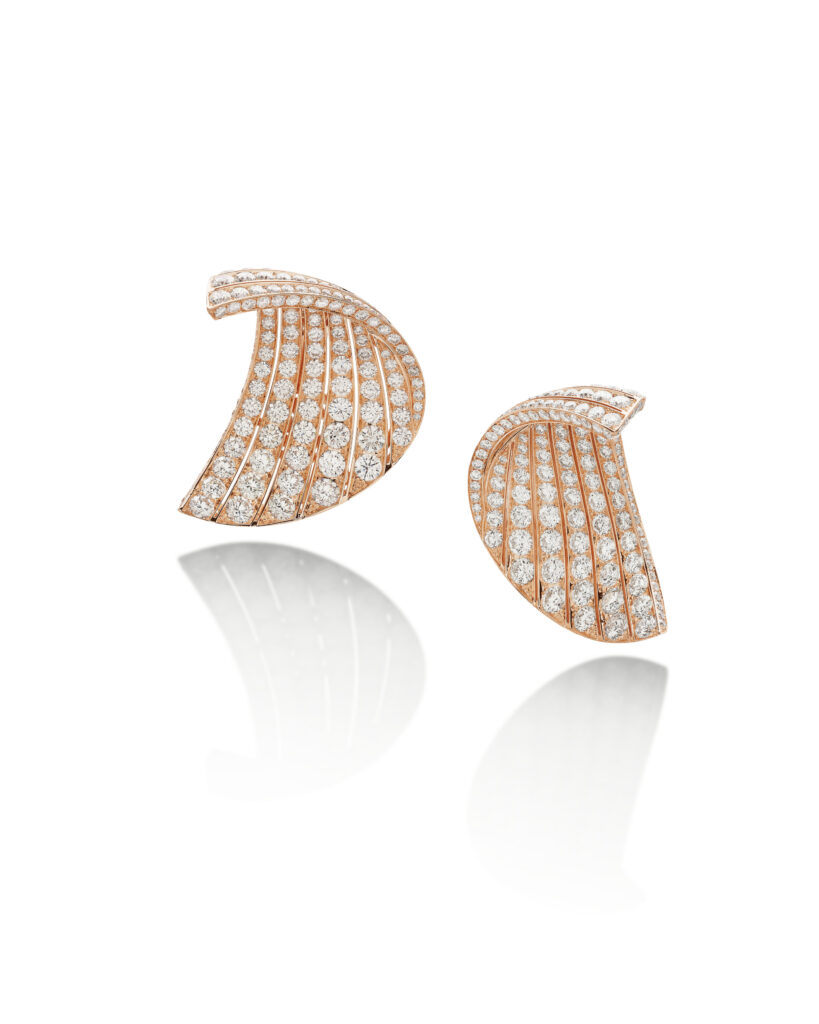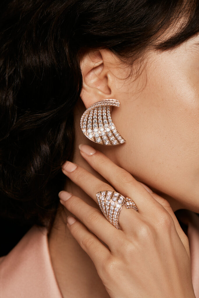 Les fleurs sont un cadeau et une source d’inspiration classiques pour les bijoux. Cependant, plutôt que d’offrir une représentation littérale de ces dons de la nature, FAWAZ GRUOSIutilise son regard avant-gardiste pour se focaliser sur le pétale, l’identité et l’âme d’une fleur, revisitée avec une dose d’abstraction rappelant l’Art Déco. Dans la collection Pétale, composée de boucles d’oreilles et de bagues, les courbes du pétale sont ré-imaginées pour une nouvelle esthétique. L’organique est remplacé par le linéaire, le naturaliste par le dynamique et le graphique. Pétale offre de nouvelles perspectives glorieuses à l’œil moderne.