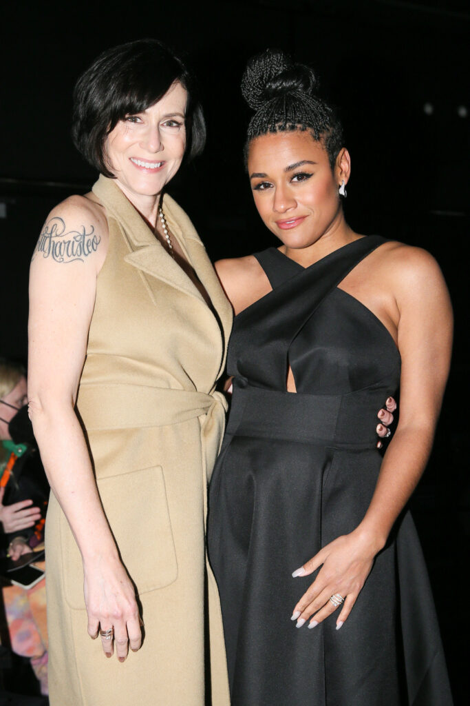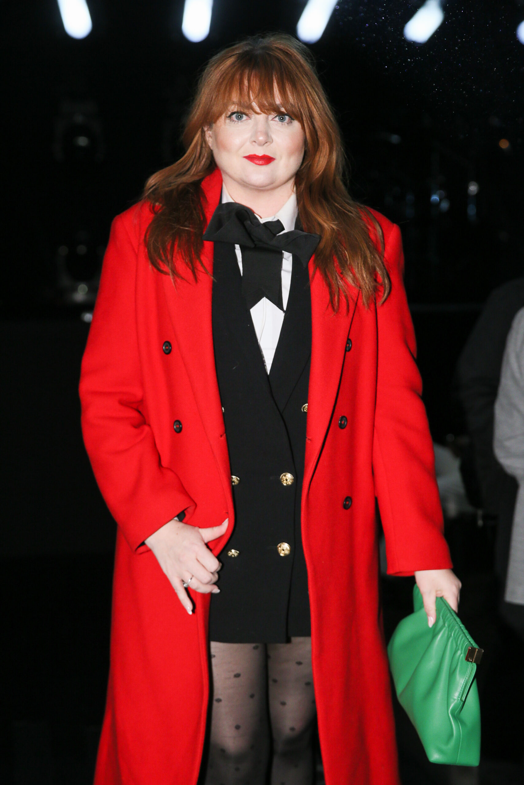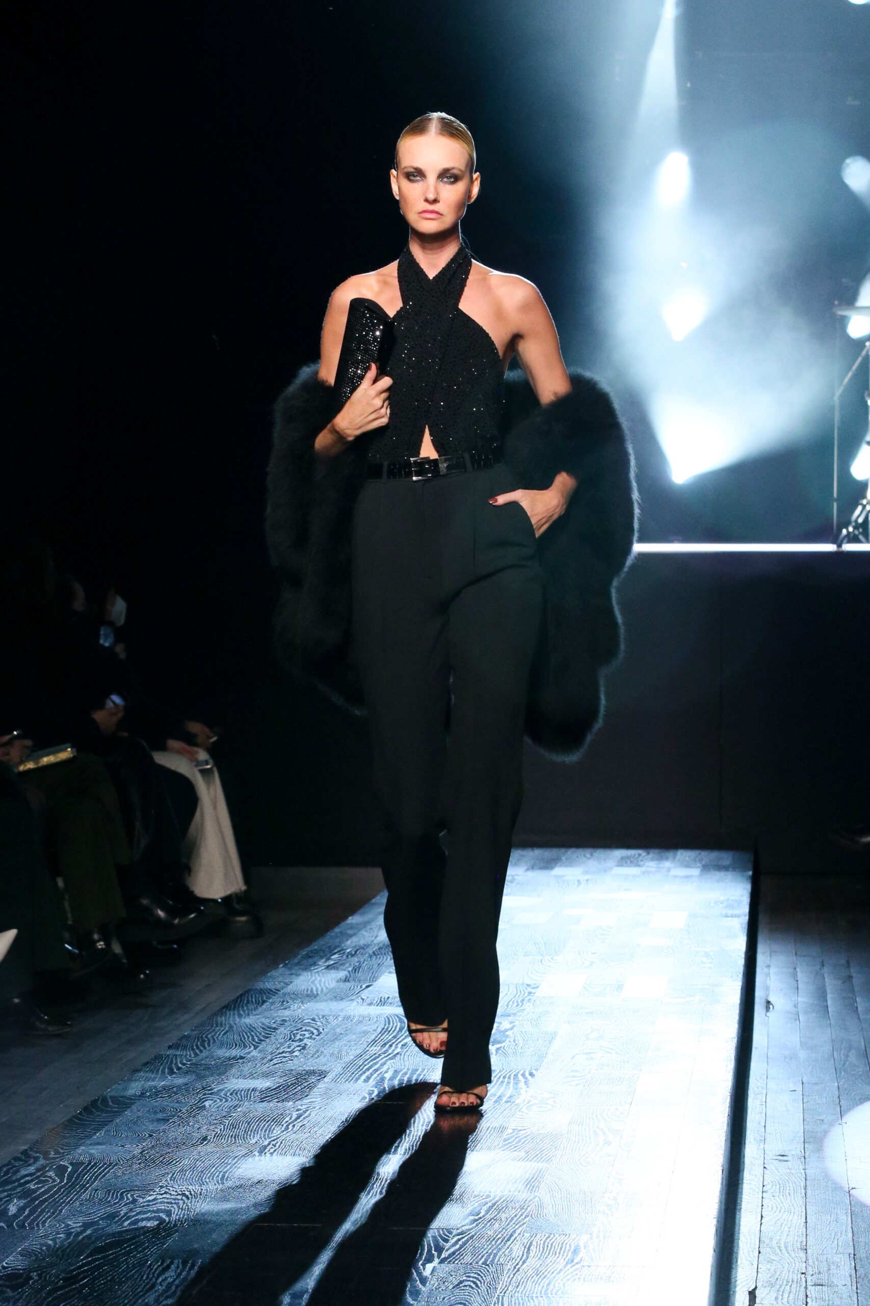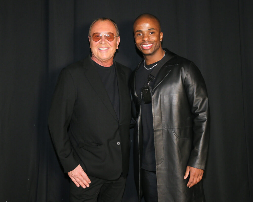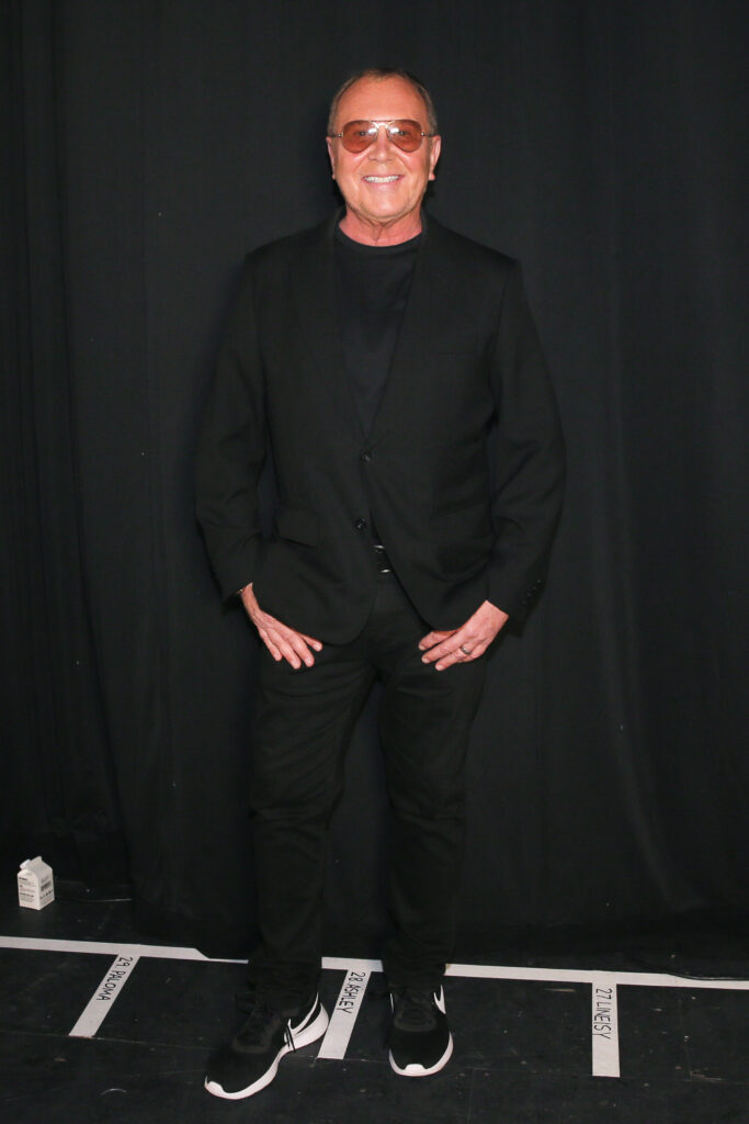 Luisa Ranieri wore a black double crepe sablé jacket and matching trousers, both from the Spring/Summer 2022 Michael Kors Collection, with a Beekman leather clutch from Michael Kors Collection.