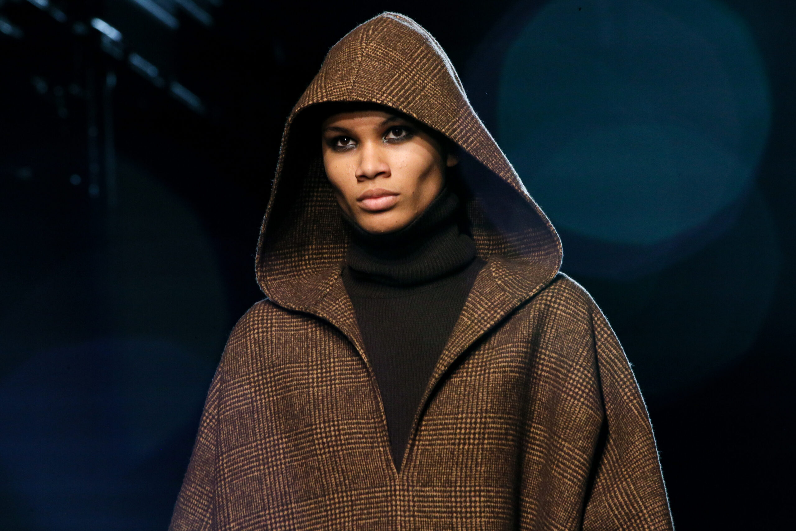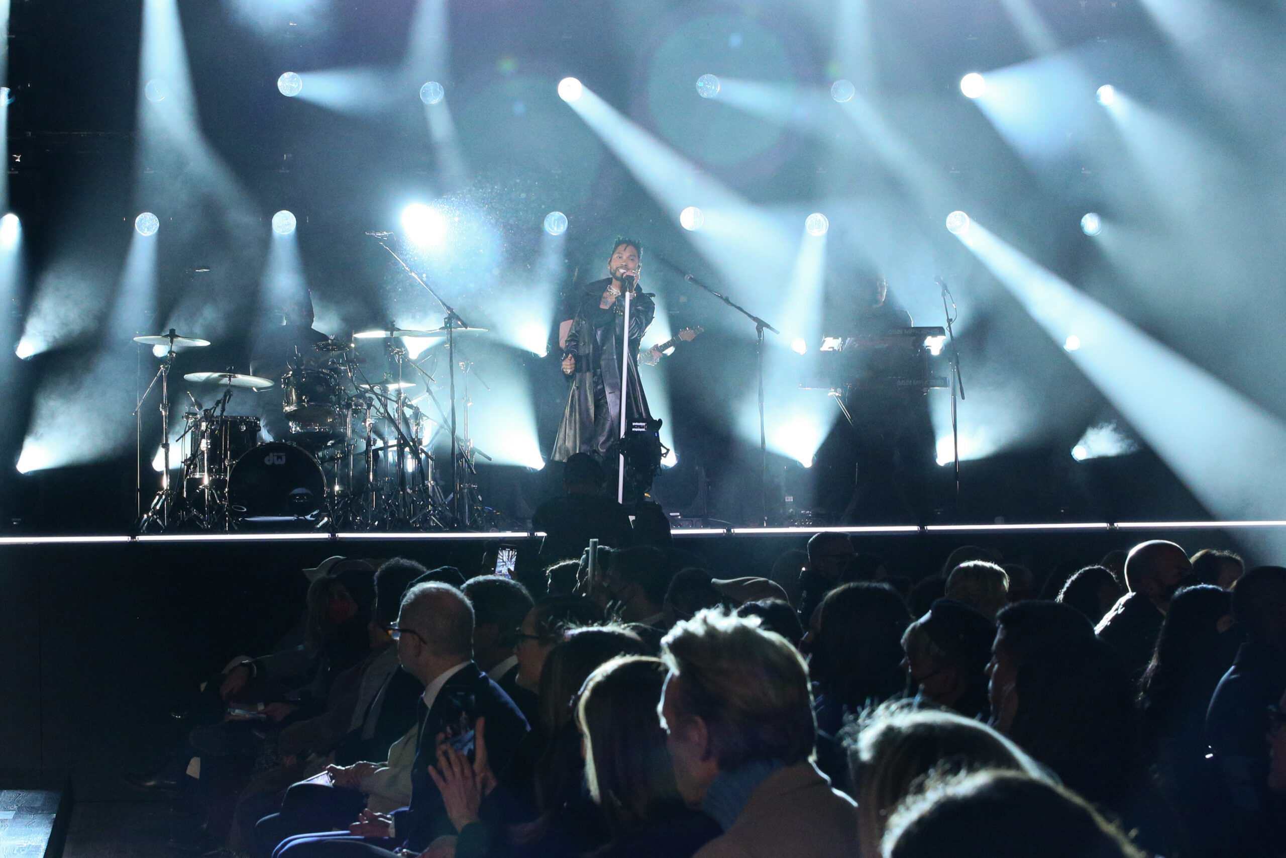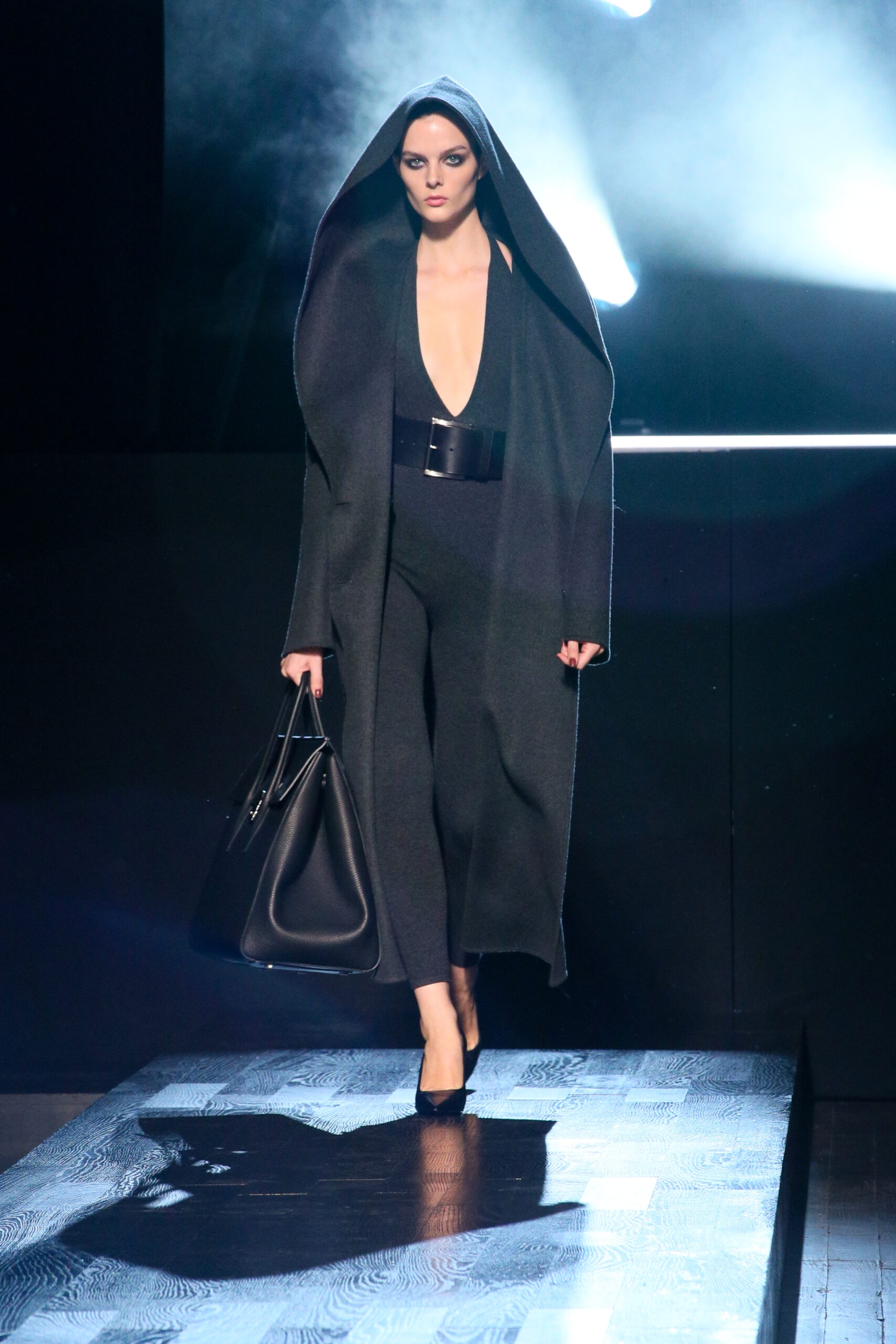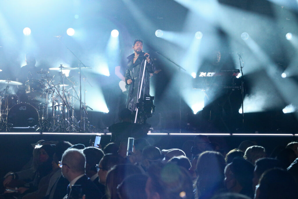 Luisa Ranieri wore a black double crepe sablé jacket and matching trousers, both from the Spring/Summer 2022 Michael Kors Collection, with a Beekman leather clutch from Michael Kors Collection.