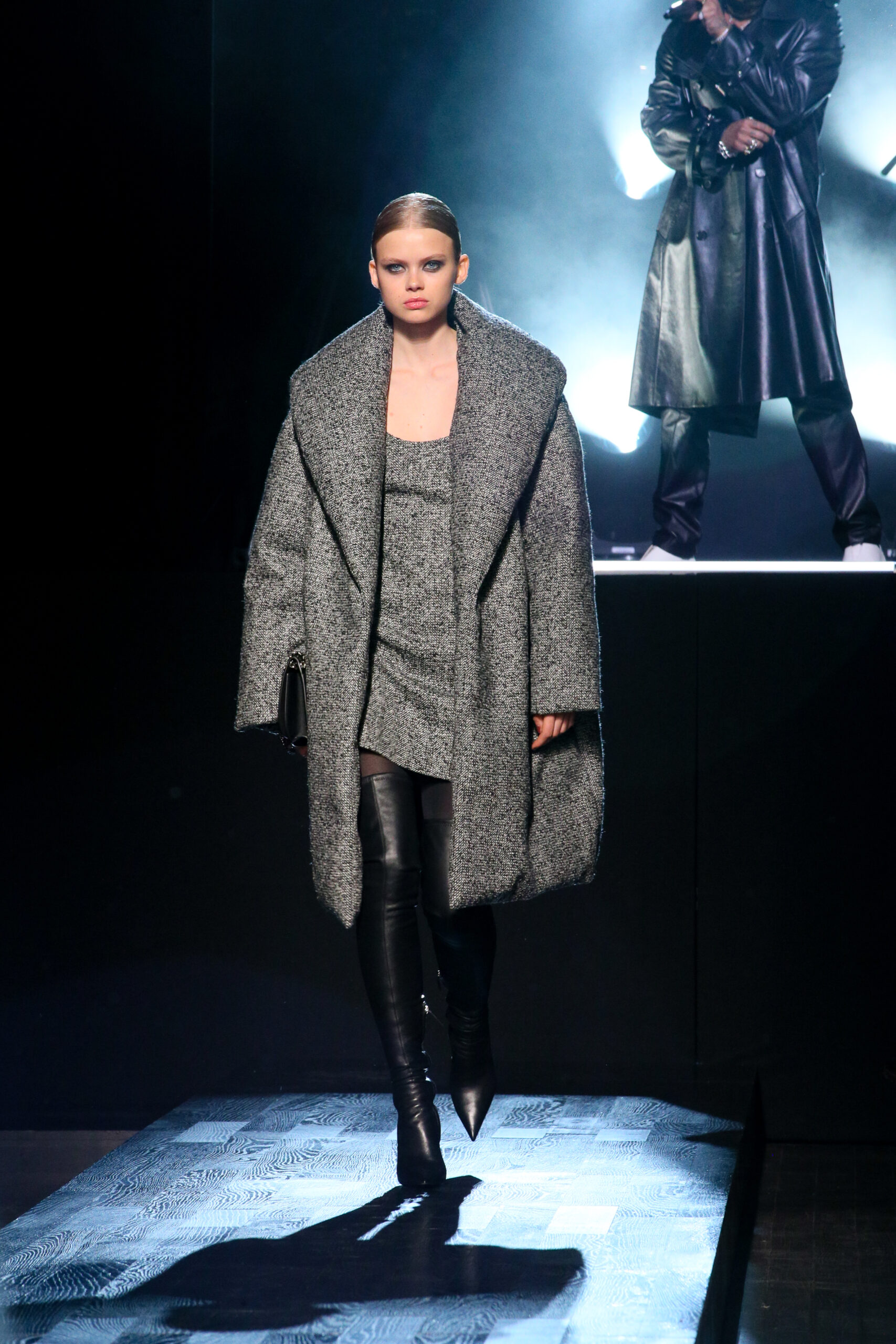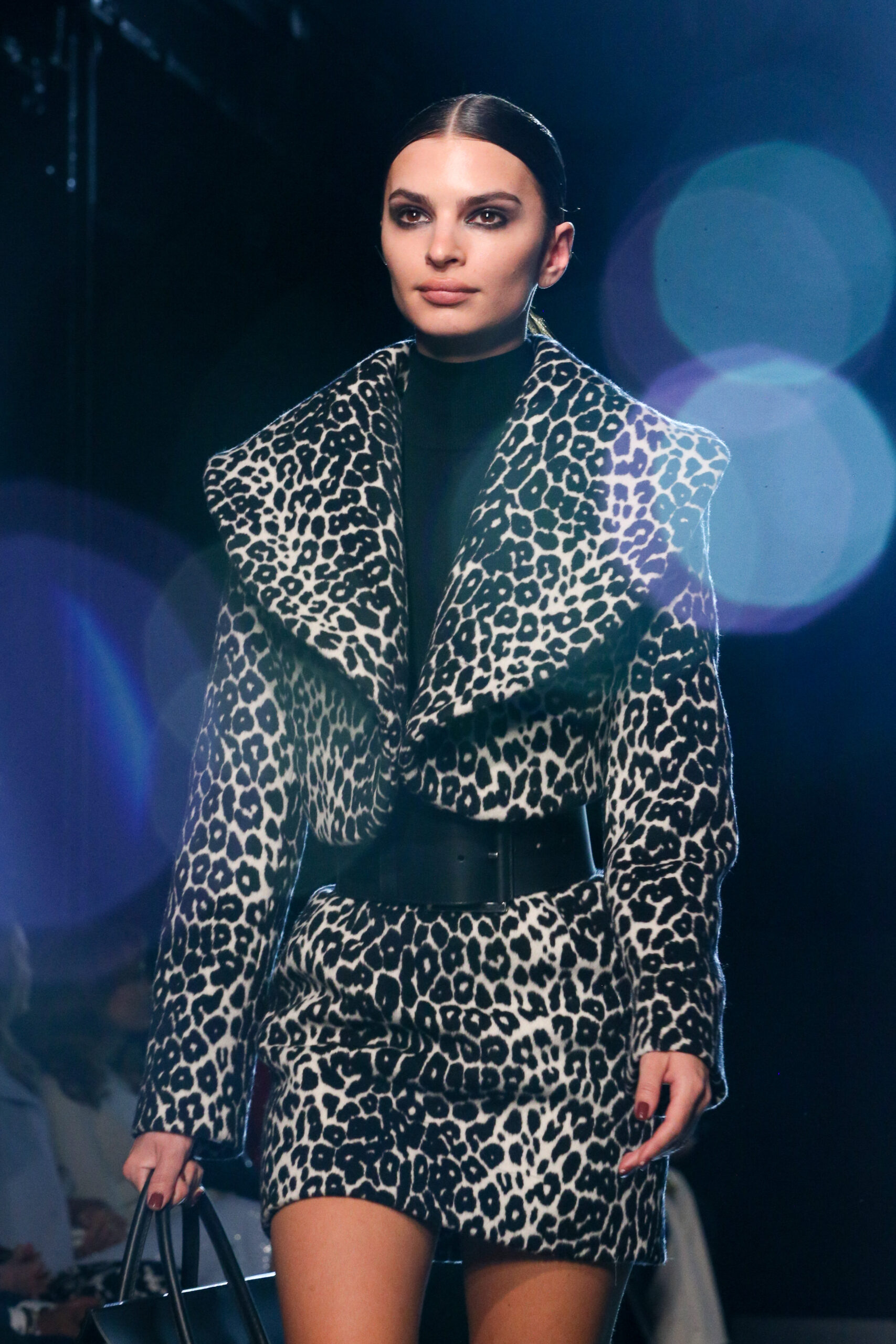 Lady Amelia Spencer wore a black-and-white ocelot jacquard coat and matching stretch viscose dress, both from the Spring/Summer 2022 Michael Kors Collection, with a Michael Kors Collection handbag and shoes.