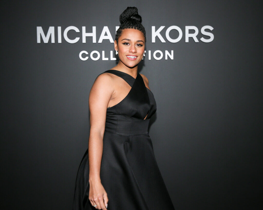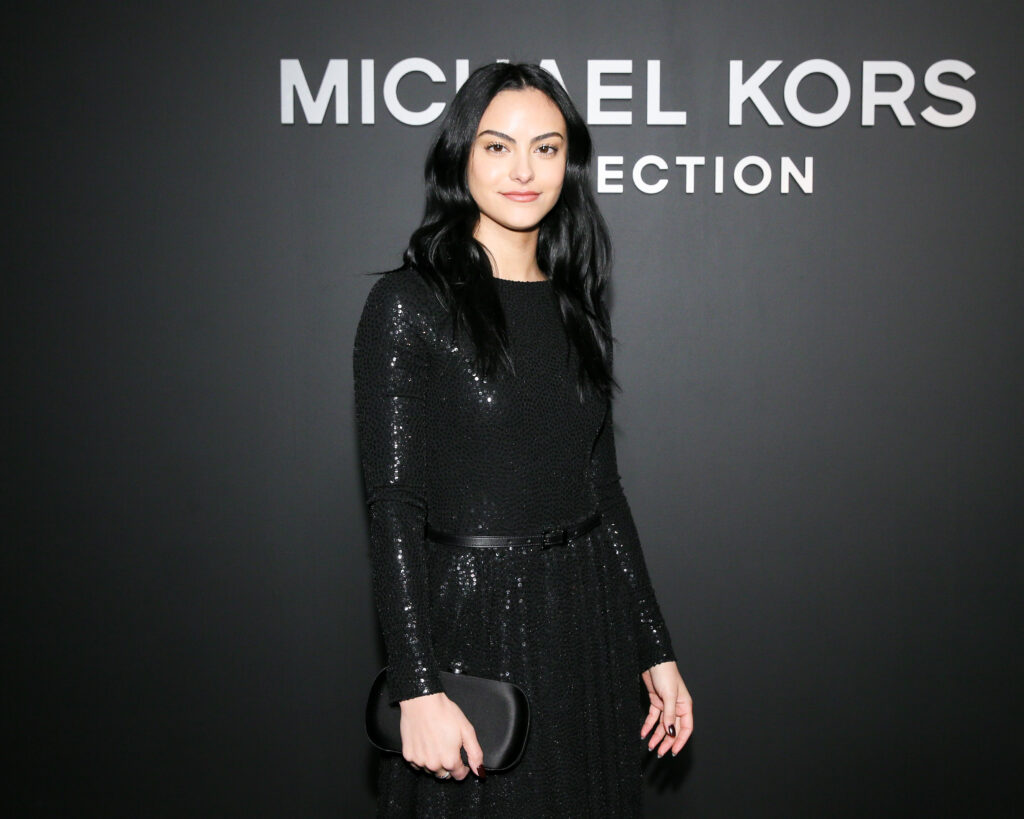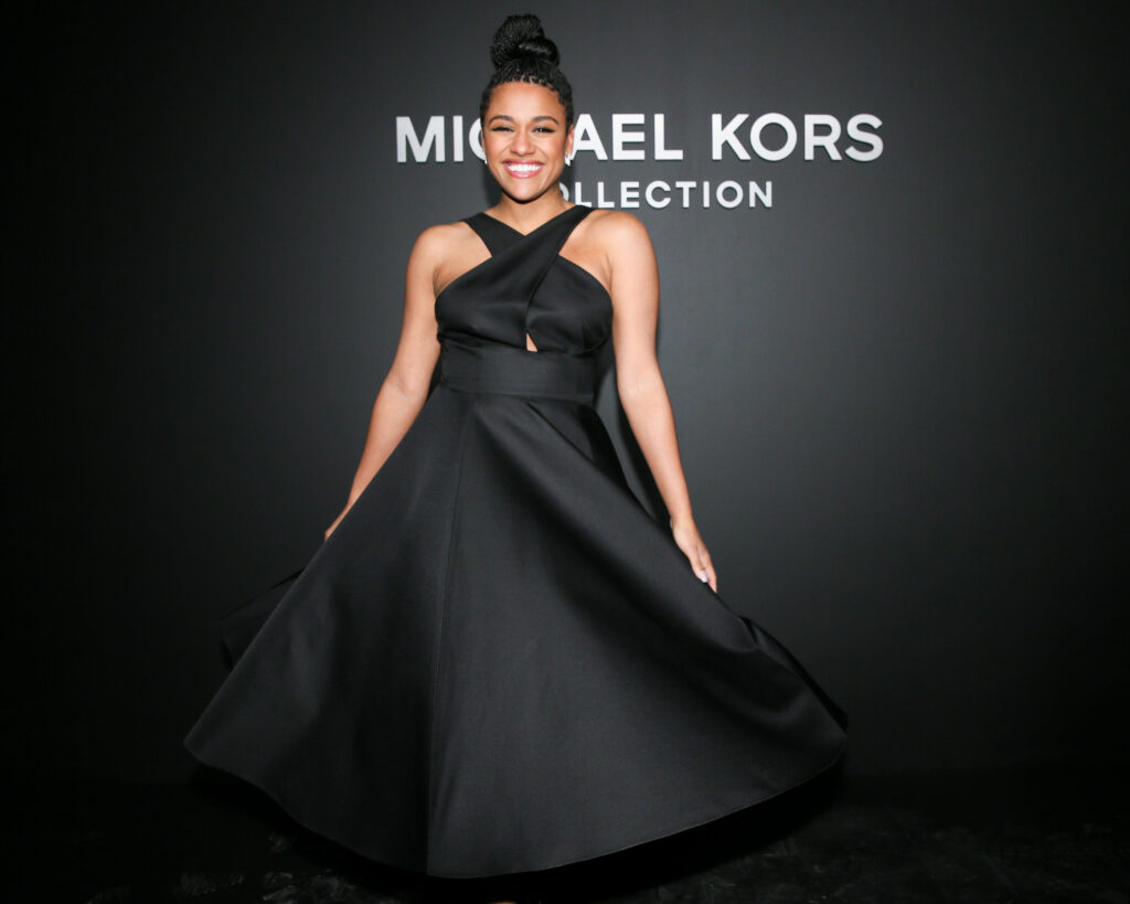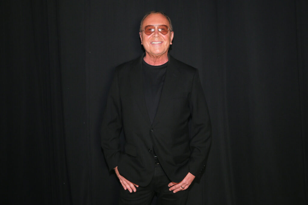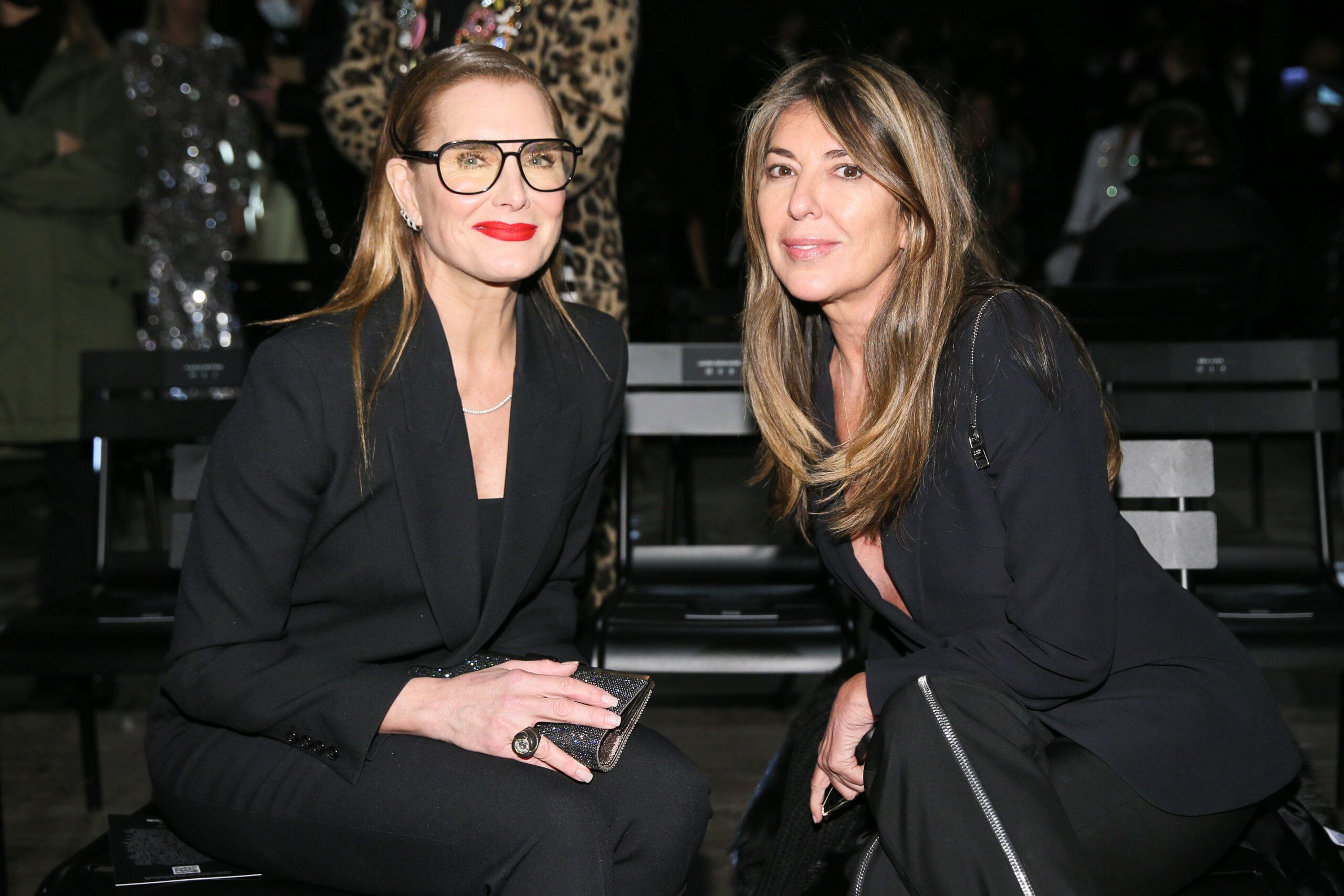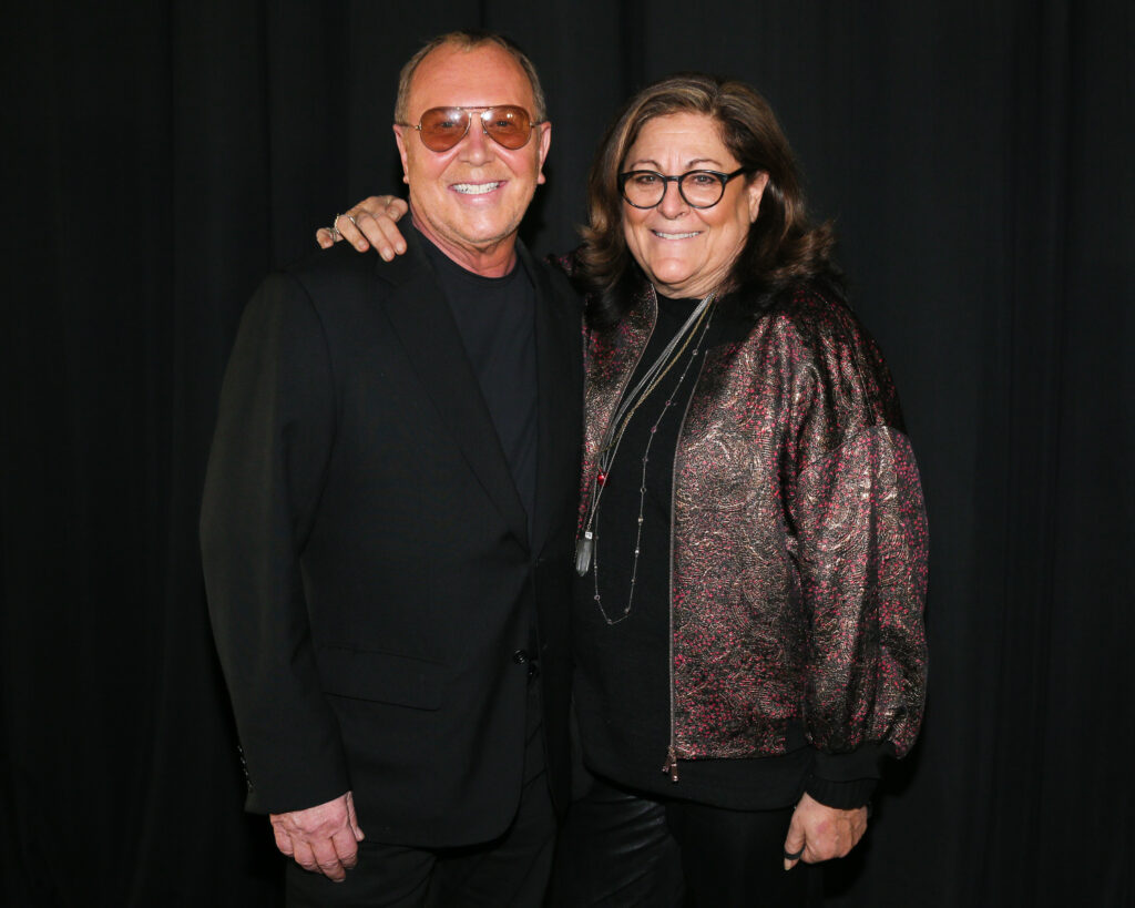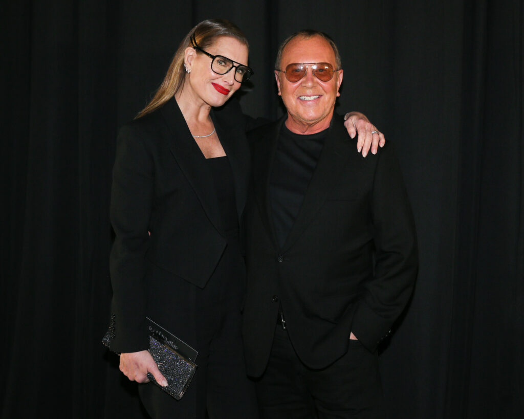 Brooke Shields wore a black double crepe sablé bolero jacket and matching jumpsuit, both from the Spring/Summer 2022 Michael Kors Collection, with an ivory Michael Kors Collection handbag.