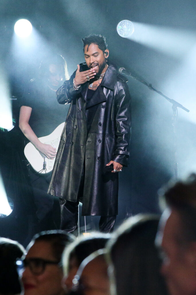 Cynthia Samuel wore a silver lace sheath dress with hand-embroidered floral paillettes and a black Gramercy patent leather minaudiére, both from the Spring/Summer 2022 Michael Kors Collection, with ivory Michael Kors Collection shoes.
