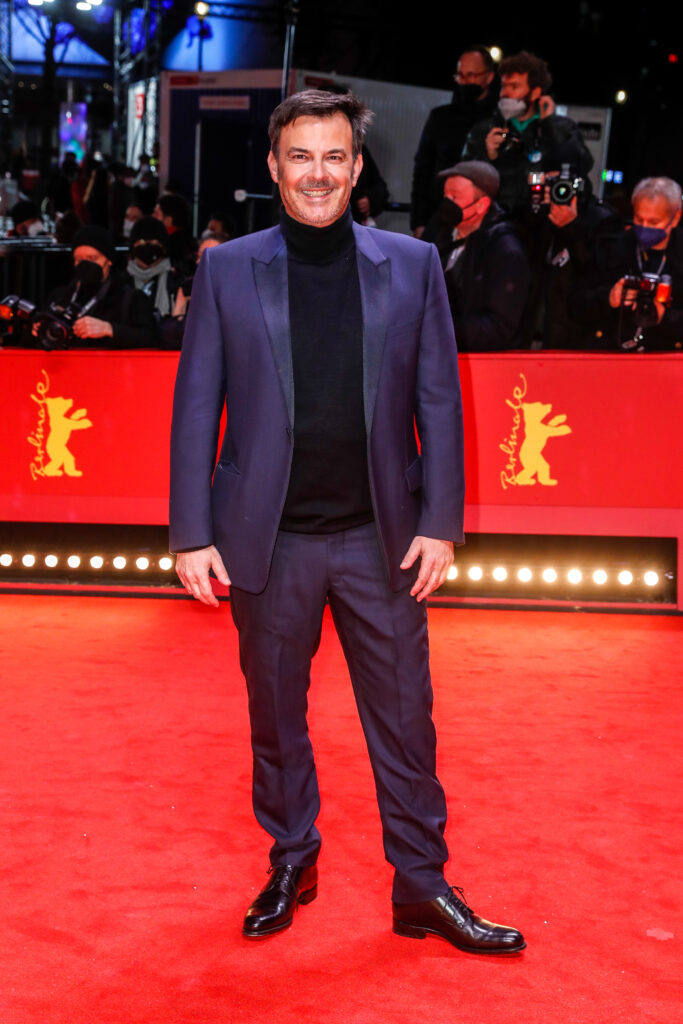François Ozon wore a Dior men’s collection navy wool peak lapel tuxedo, a black wool turtleneck and a pair of black leather derbies.