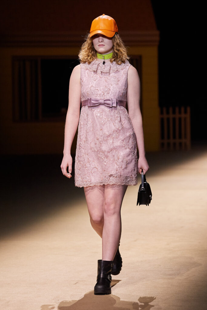 Held at Basketball City on New York’s Lower East Side on Valentine’s Day, the runway presentation took place within an imagined American neighborhood envisioned in the house’s heritage color palette and set against a soundtrack of 70s romance remixed with 90s grunge. Featuring set pieces designed to elicit the audience’s memories of American towns and choreographed vignettes that depicted the daily lives of the characters who live in this town, the experience referenced the stories that define our collective imagination while celebrating the way the next generation is rewriting these stories for today.