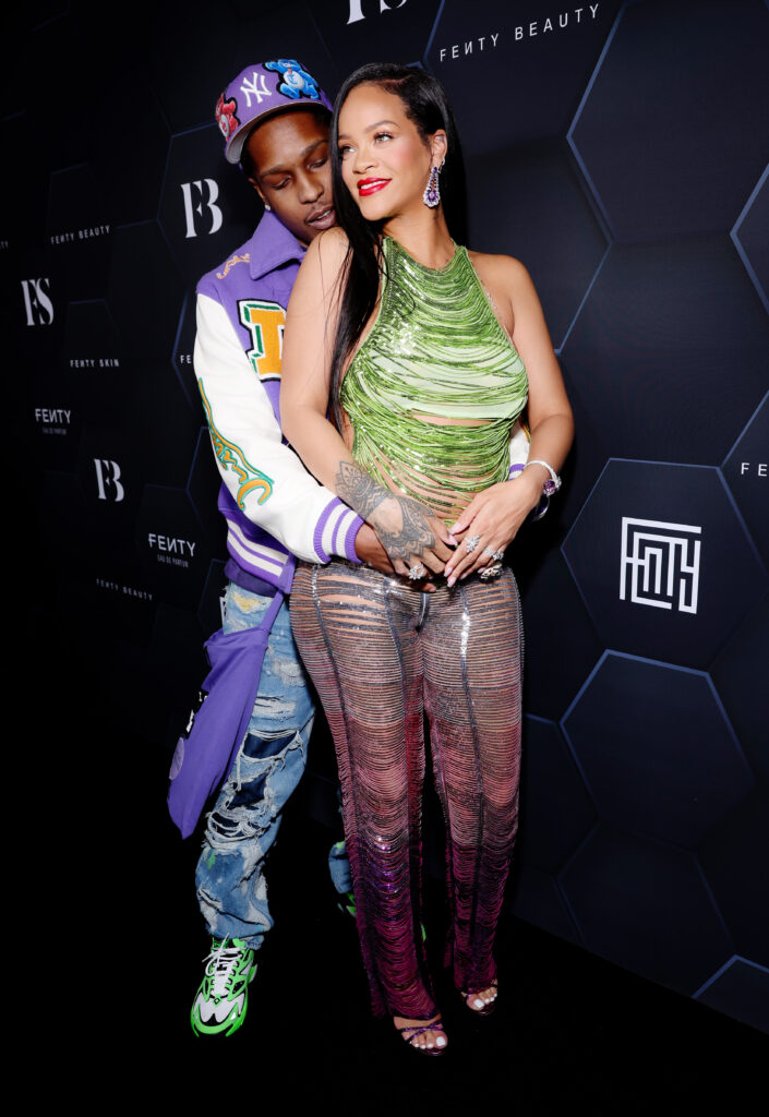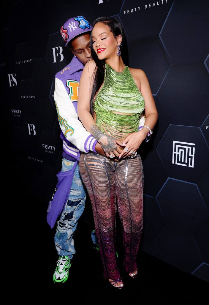 - LOS ANGELES, CALIFORNIA – FEBRUARY 11: (L-R) A$AP Rocky and Rihanna celebrate Fenty Beauty & Fenty Skin at Goya Studios on February 11, 2022 in Los Angeles, California. (Photo by Rich Fury/Getty Images for Fenty Beauty & Fenty Skin)