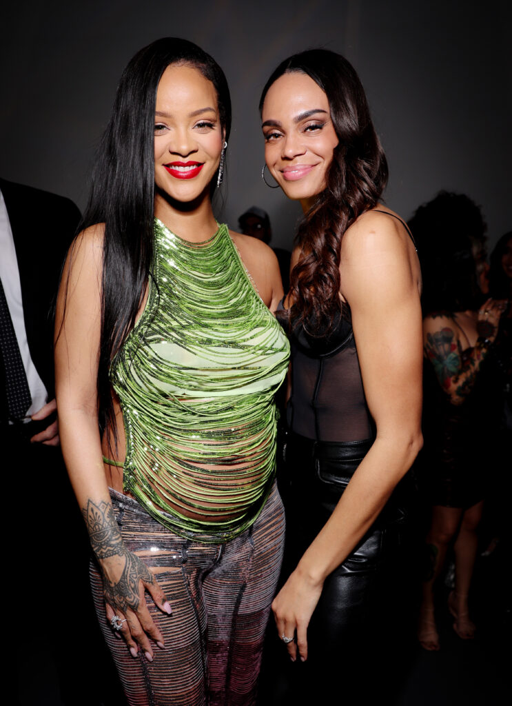 - LOS ANGELES, CALIFORNIA – FEBRUARY 11: (L-R) Rihanna and Michelle Young celebrate Fenty Beauty & Fenty Skin at Goya Studios on February 11, 2022 in Los Angeles, California. (Photo by Rich Fury/Getty Images for Fenty Beauty & Fenty Skin)