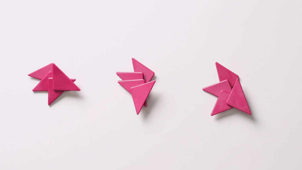 BAO BAO ISSEY MIYAKE dévoile cette série à travers une courte vidéo, faisant écho à l’éveil de la nature. Les triangles se déploient telles des pétales de fleurs permettant l’envole d’un papillon.