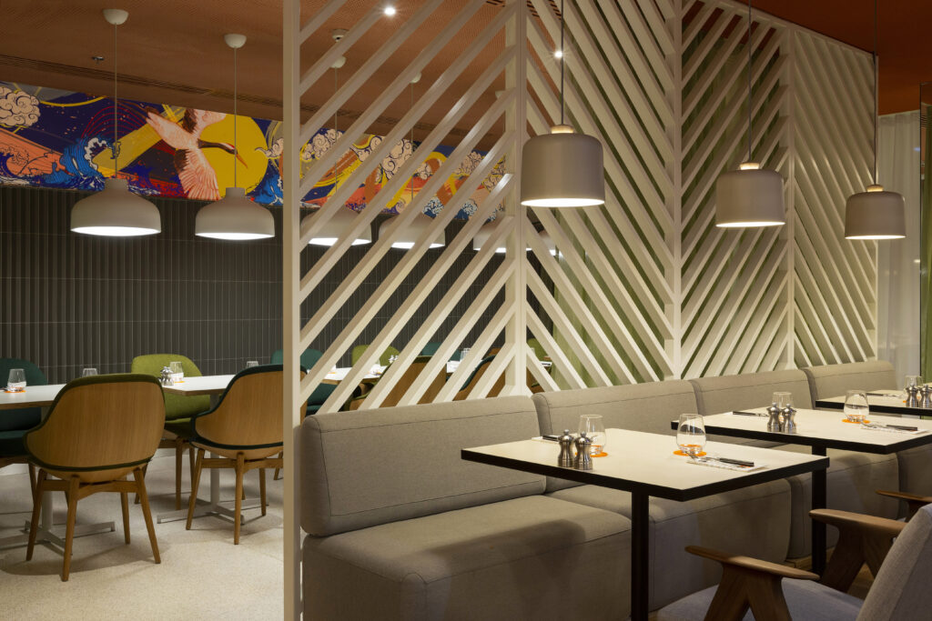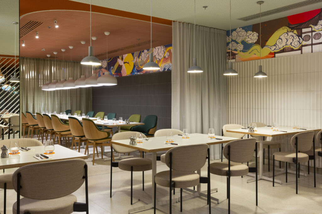 À retrouver au premier étage, le restaurant s’étend sur près de 800 m2 et peut accueillir jusqu’à 280 couverts dans ses espaces à la fois modulables et cosy. Ici, on s’installe pour déguster des burgers gastronomiques savoureux, aux milles et unes couleurs – tomates fraîches, fromages fondants, pickles…