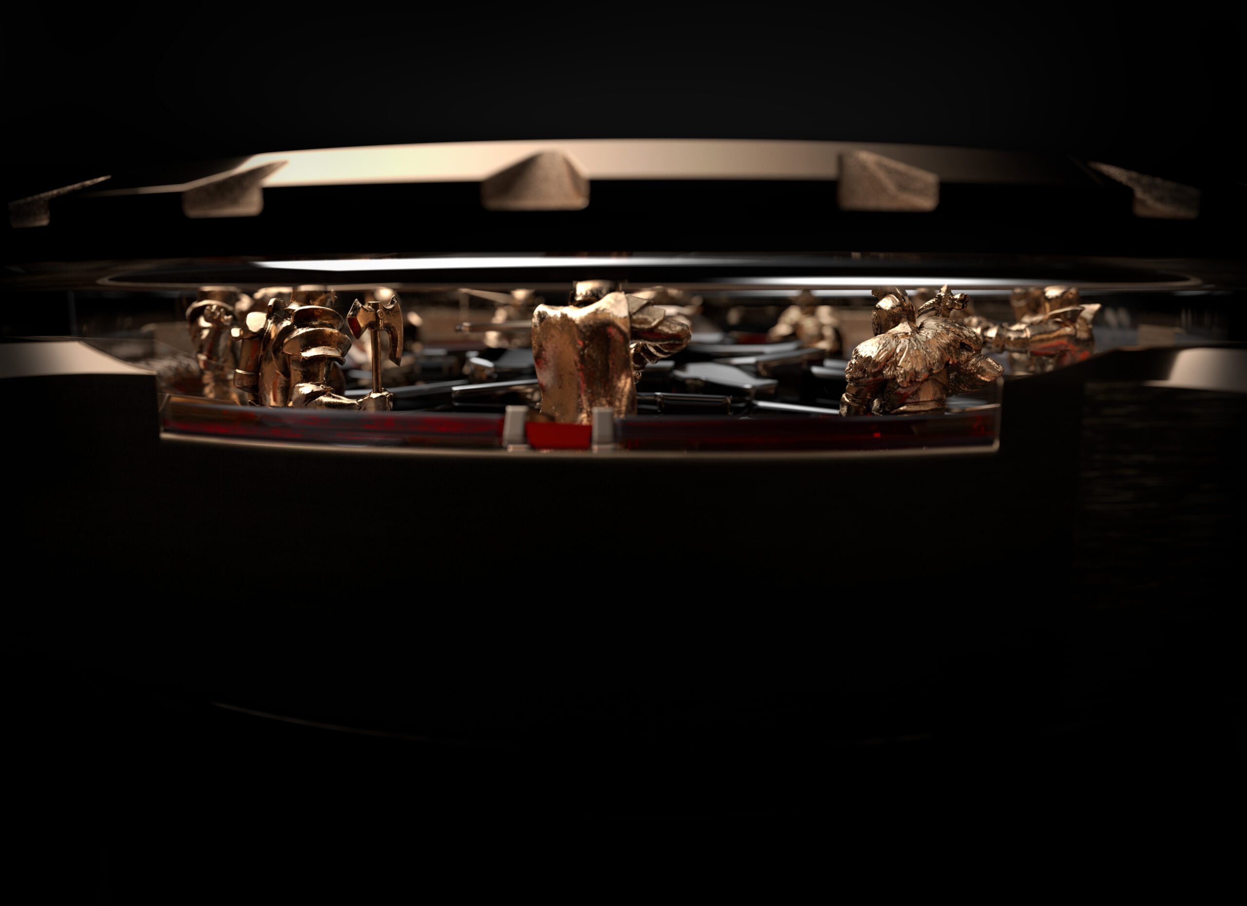Pour mettre en exergue toute la finesse des détails des chevaliers, une nouvelle bague en verre saphir transparent placée sous la lunette offre une vue imprenable sur leurs facettes complexes. Aujourd’hui, seule une poignée de collectionneurs avisés est secrètement invitée à venir admirer tous les détails de ce spectacle hyperexclusif.