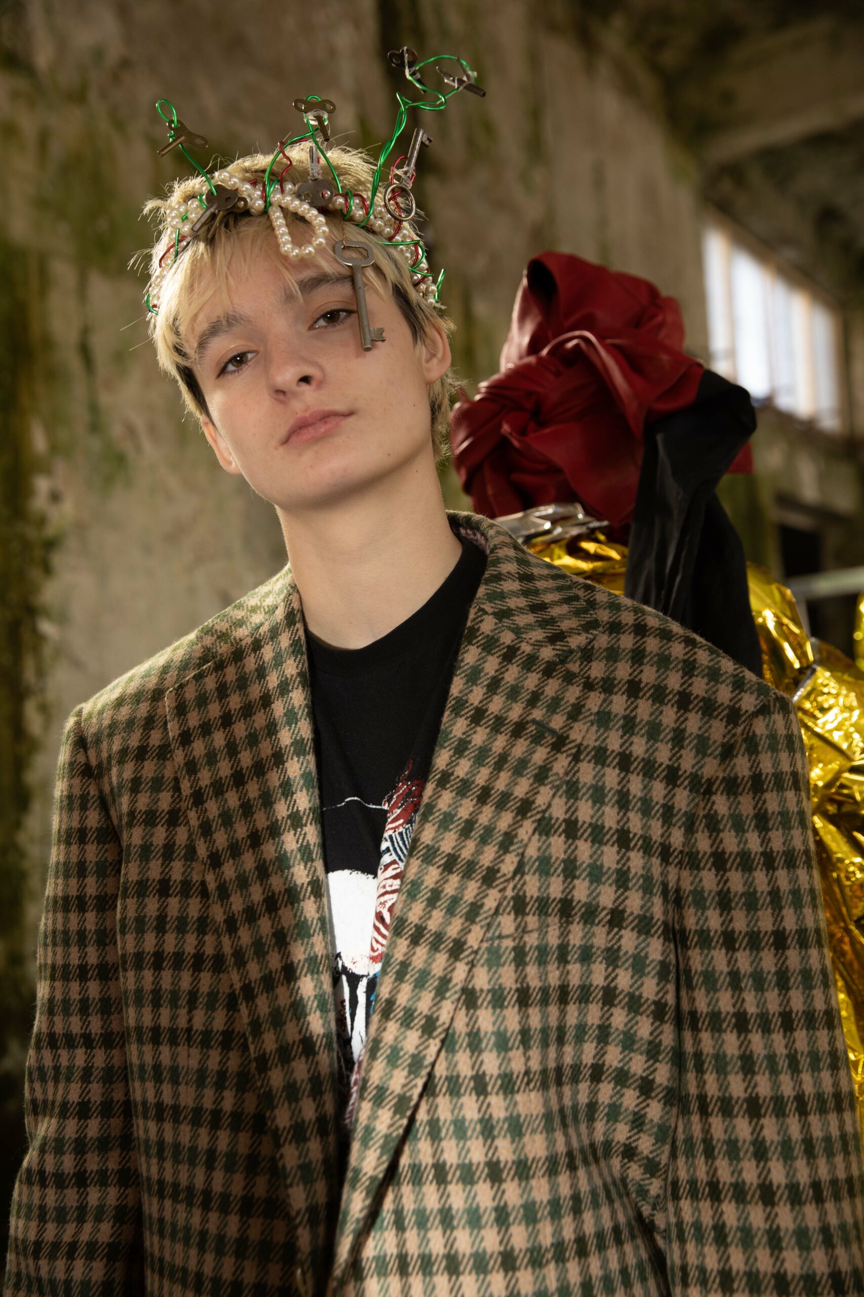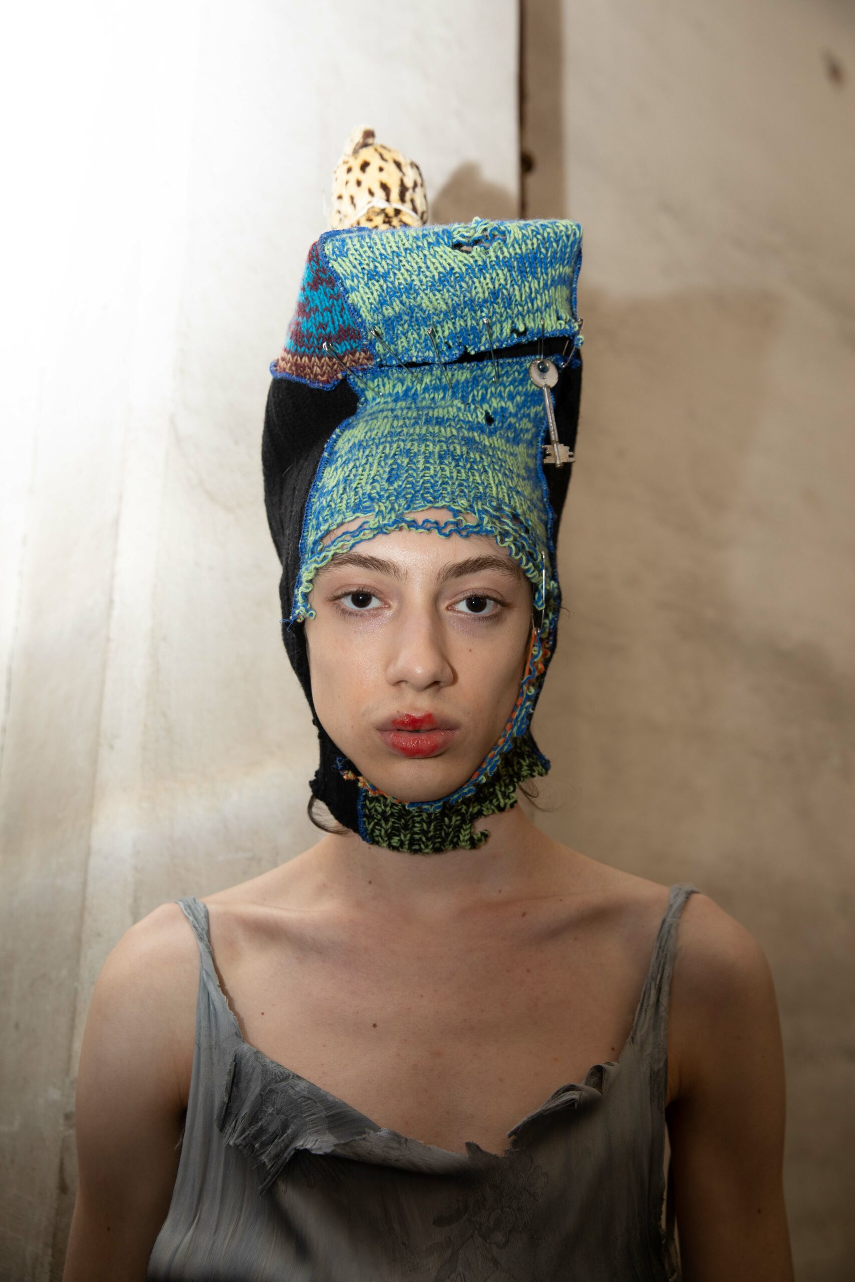 All living under one roof, the Marni roof, sharing the same wardrobe but each one wearing it their own way and mixing with their objects of affection. The collection is about this endless mingling of old and new, personal and shared. It is made of objects inspired by tradition, mended objects, objects that seem to have been stolen from a museum, all jumbled together.