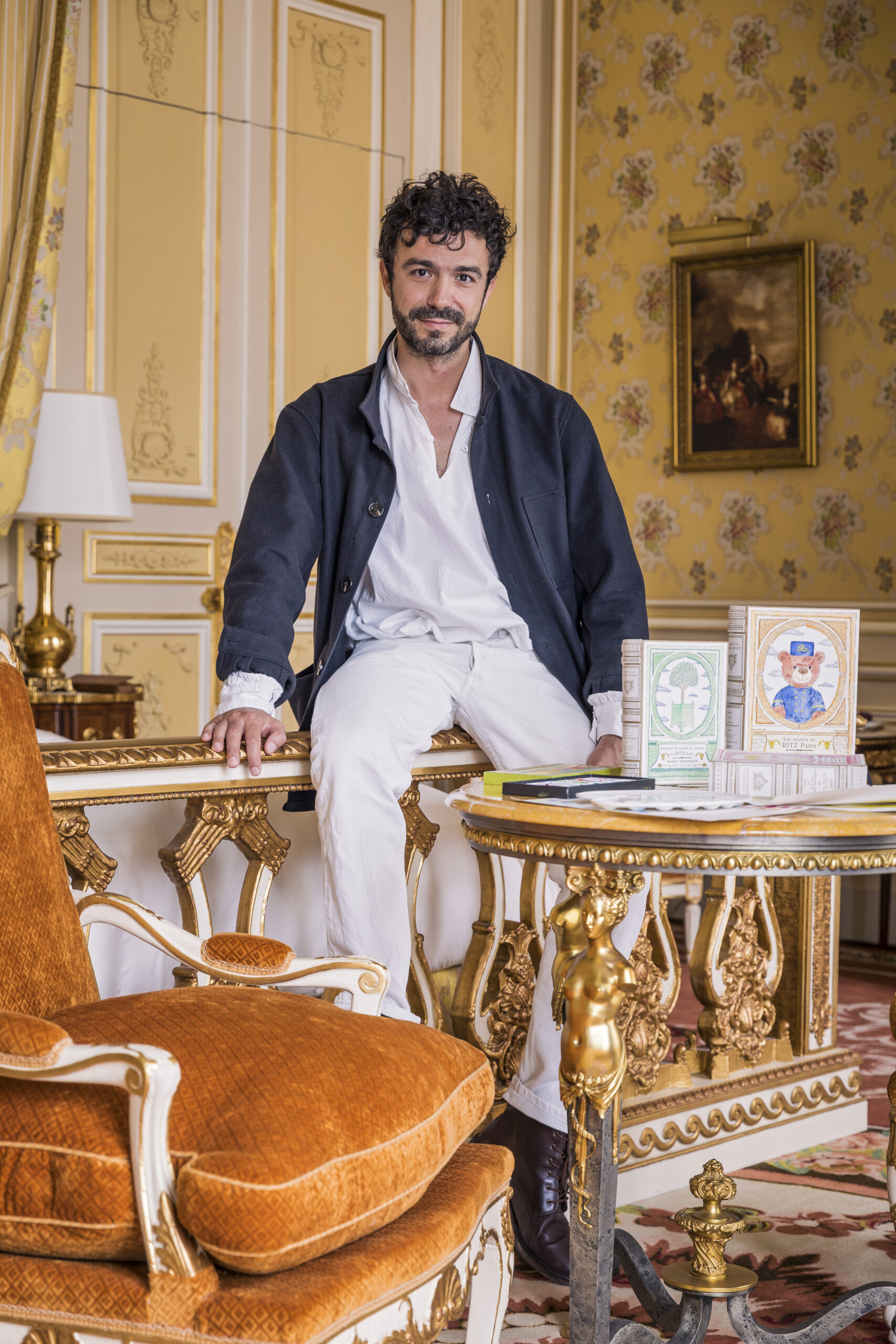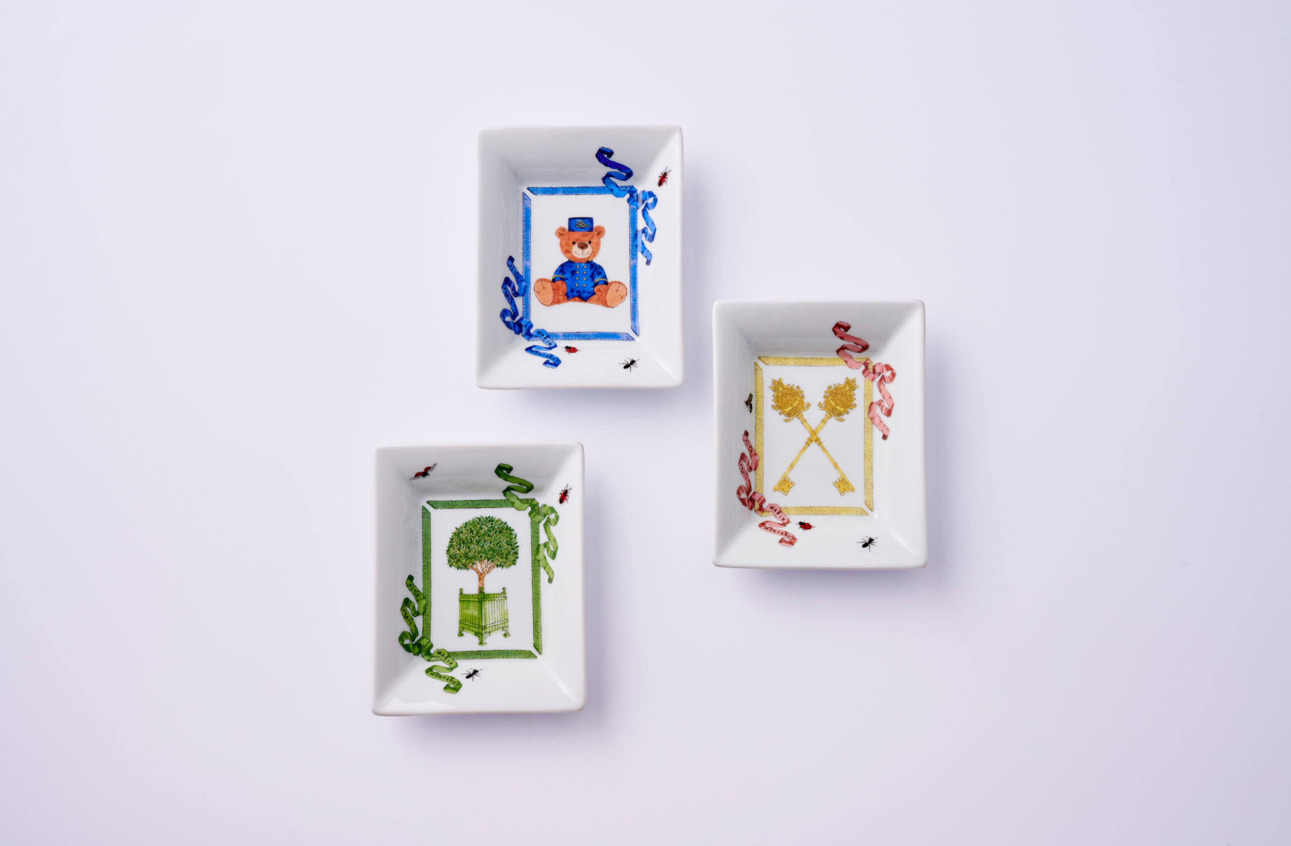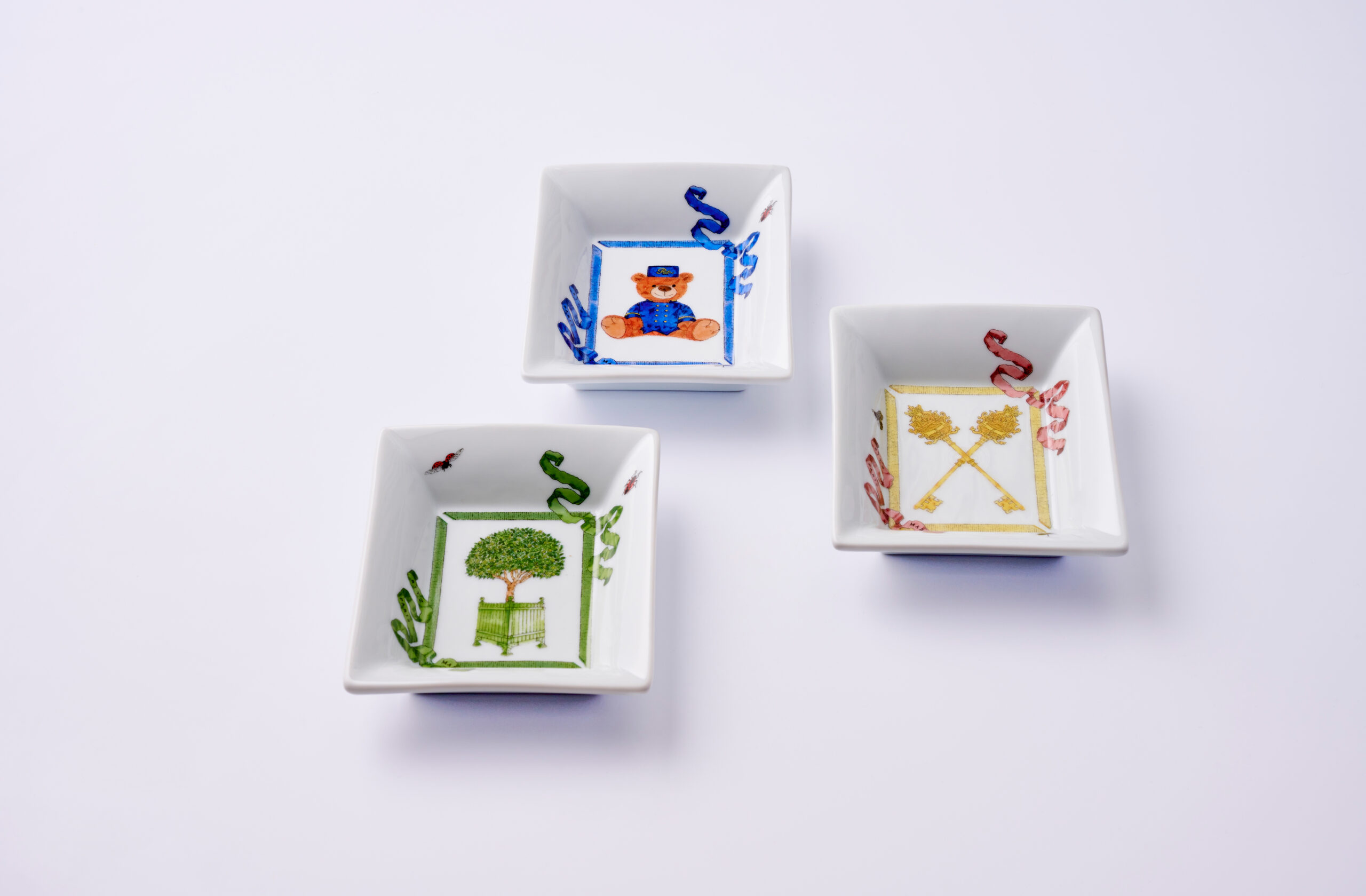 Il a ainsi imaginé des objets uniques et exclusifs, comme sa collection de livres à secrets inspirée du 18ème siècle et ses vitrines à merveilles peintes à la main, un coussin, des foulards et une collection d’art de la table en porcelaine réalisée avec la célèbre Manufacture Haviland.