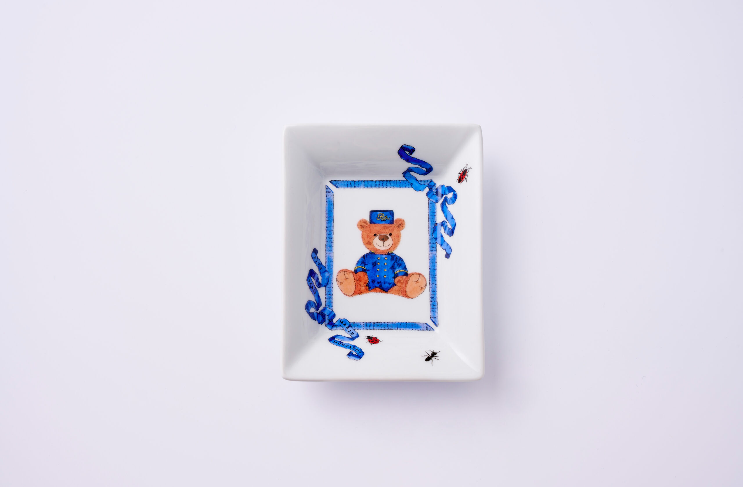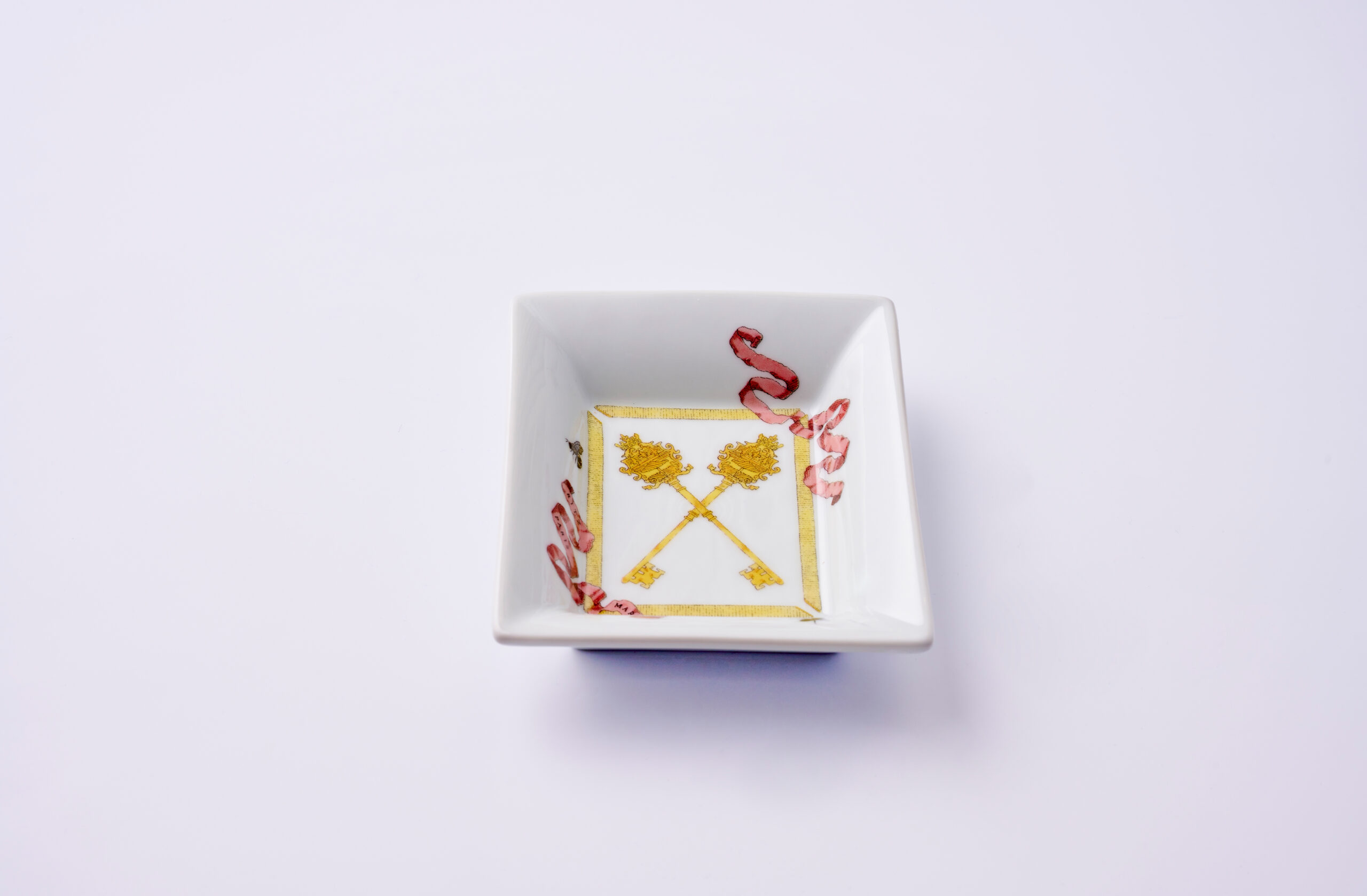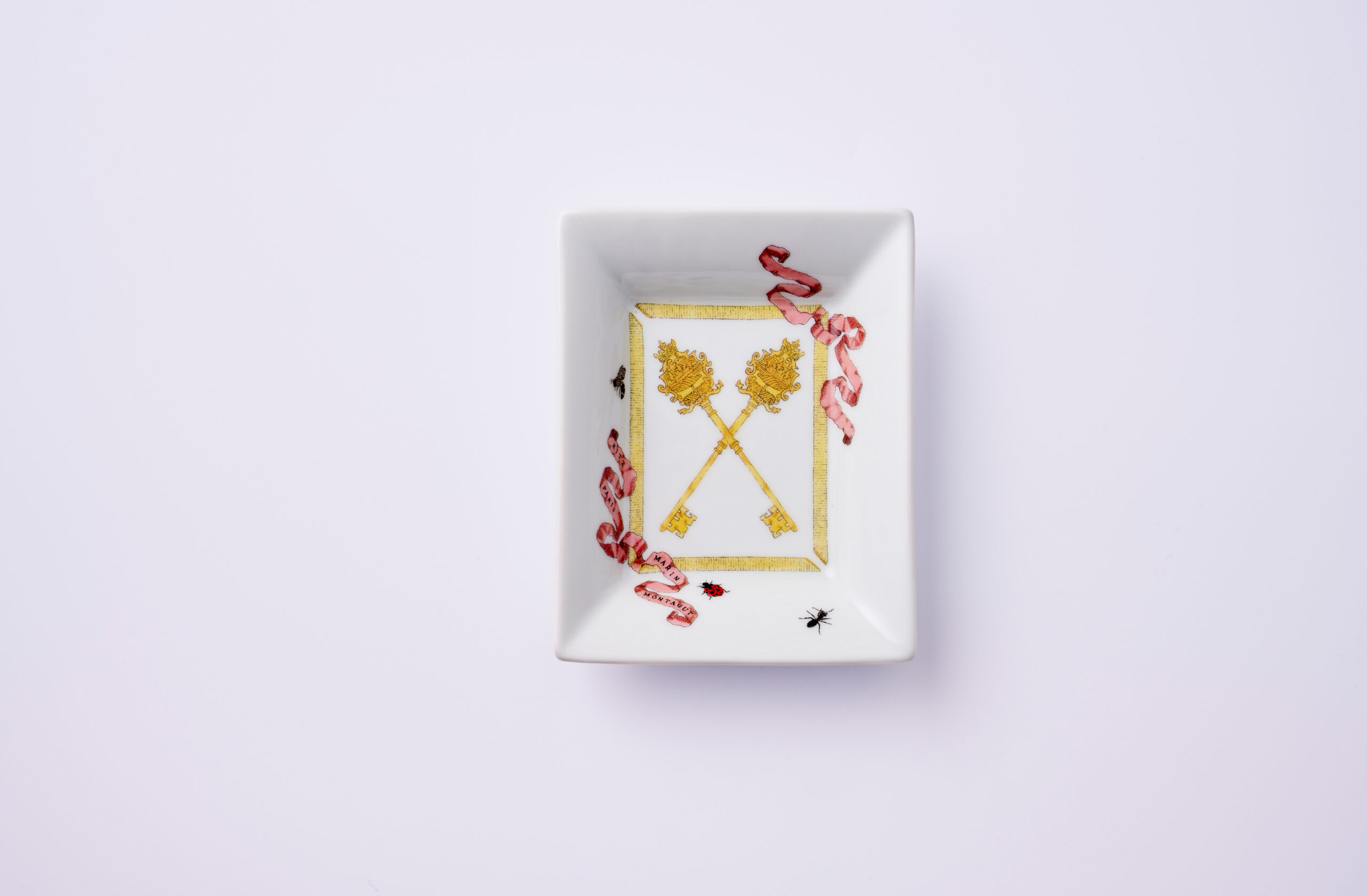 Il a ainsi imaginé des objets uniques et exclusifs, comme sa collection de livres à secrets inspirée du 18ème siècle et ses vitrines à merveilles peintes à la main, un coussin, des foulards et une collection d’art de la table en porcelaine réalisée avec la célèbre Manufacture Haviland.