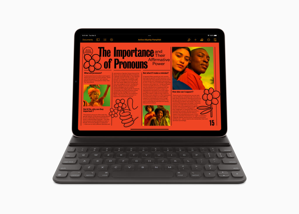 Le nouvel iPad Air est compatible avec le Magic Keyboard, dont le design suspendu et le trackpad intégré offrent un confort de frappe inégalé ; le Smart Keyboard Folio, dont le design fin offre une expérience de saisie agréable ; et les Smart Folio, dont les coloris noir, blanc, orange électrique, cerise noire, lavande anglaise et bleu marine se marient à merveille avec les nouvelles finitions de l’iPad Air.