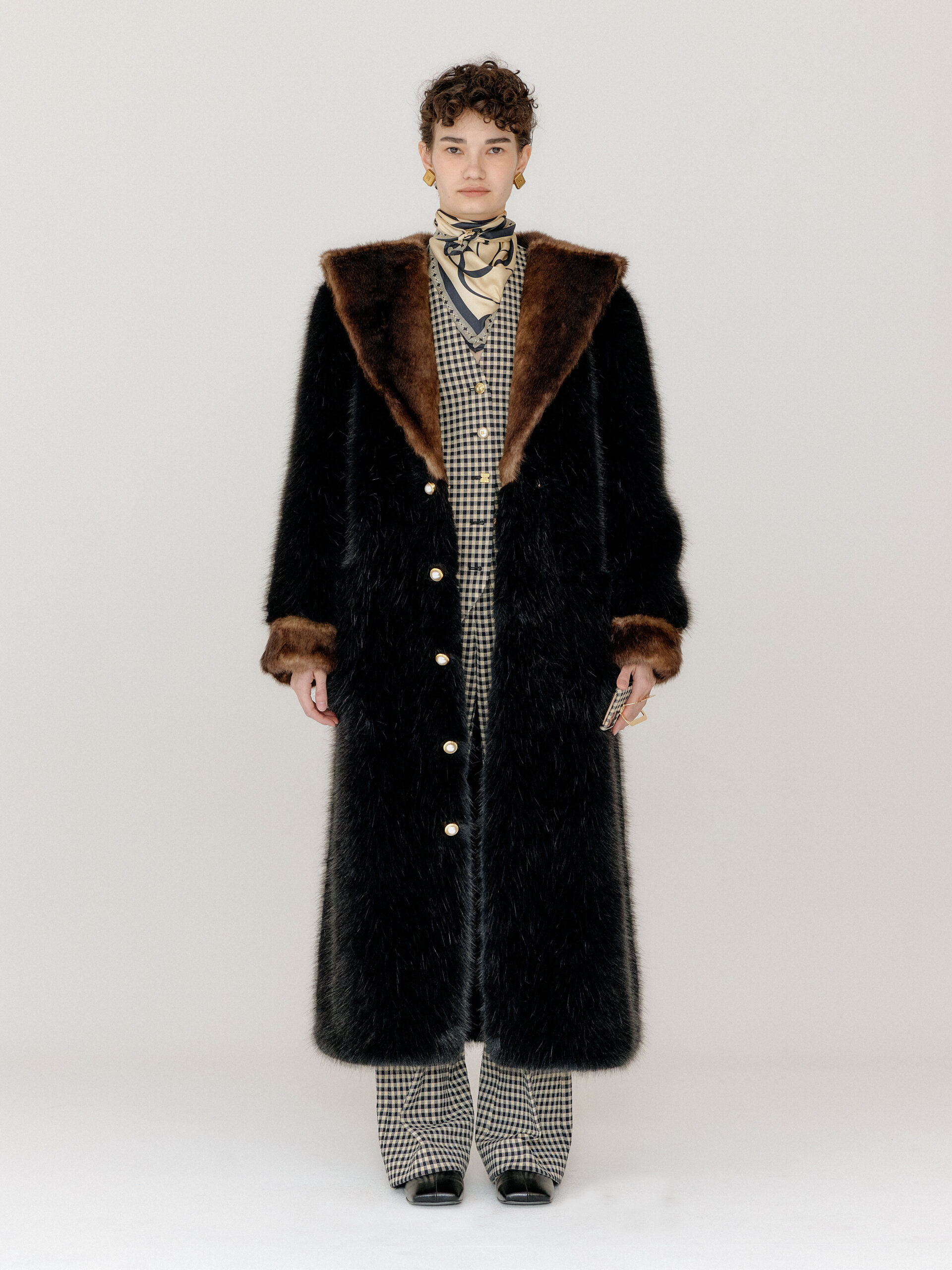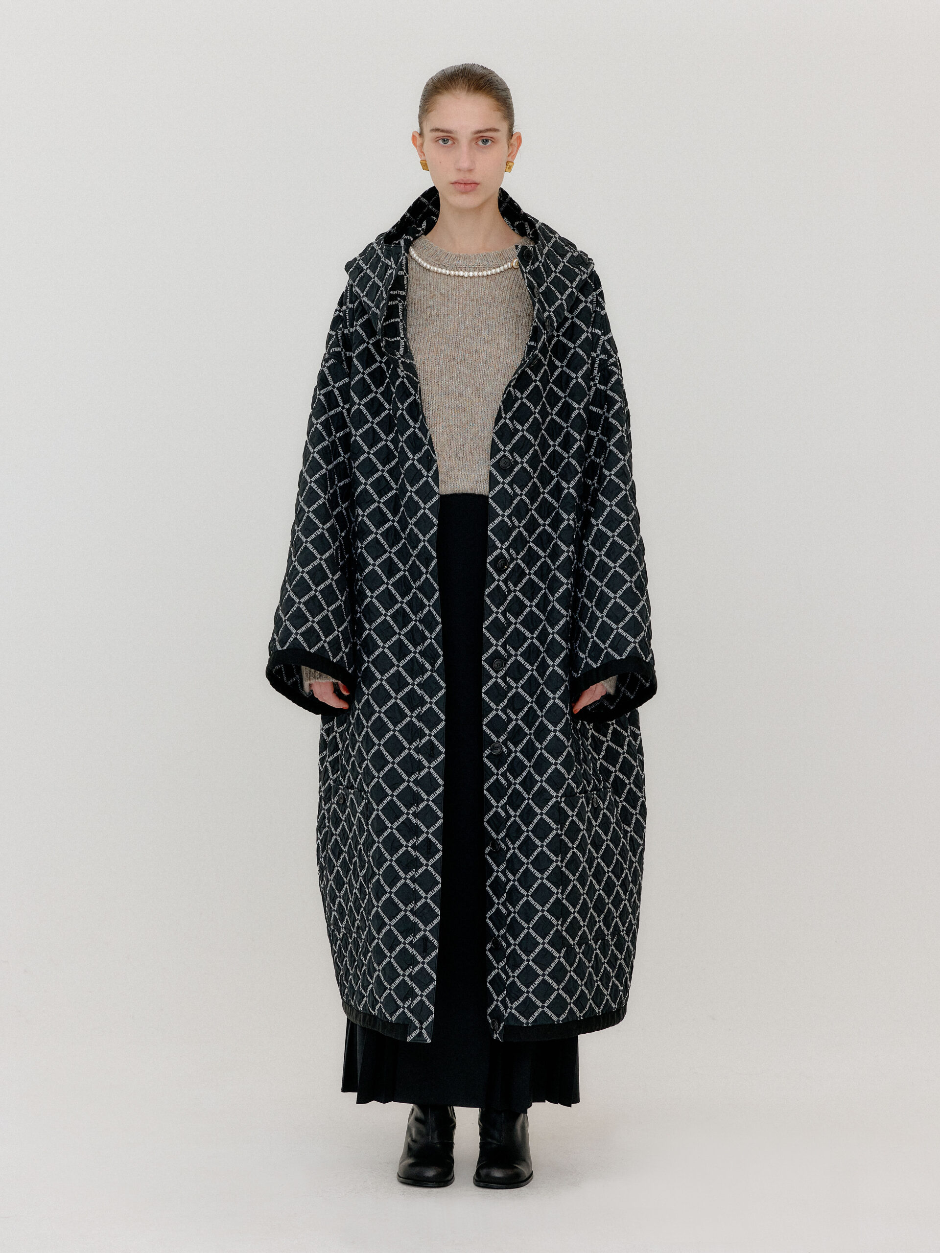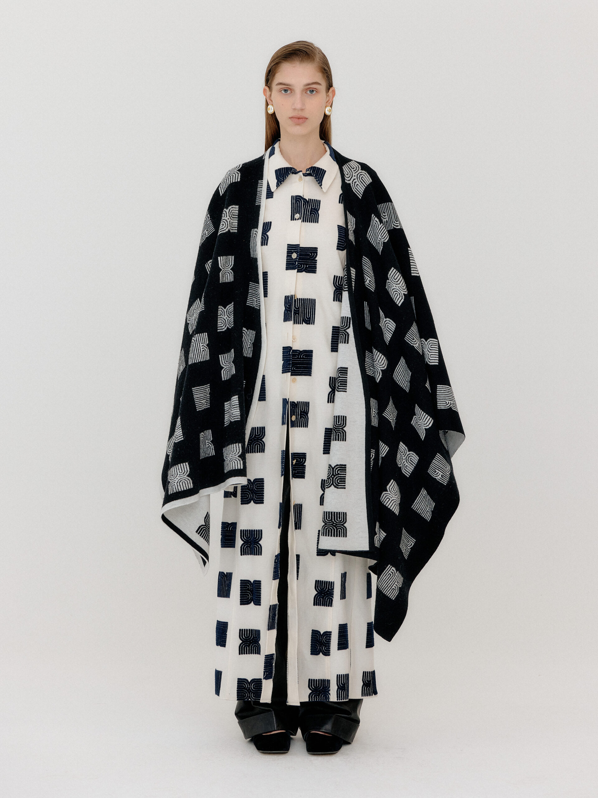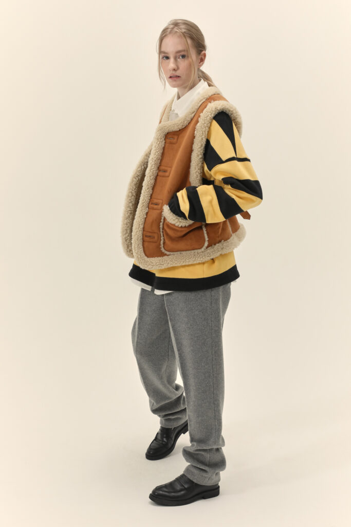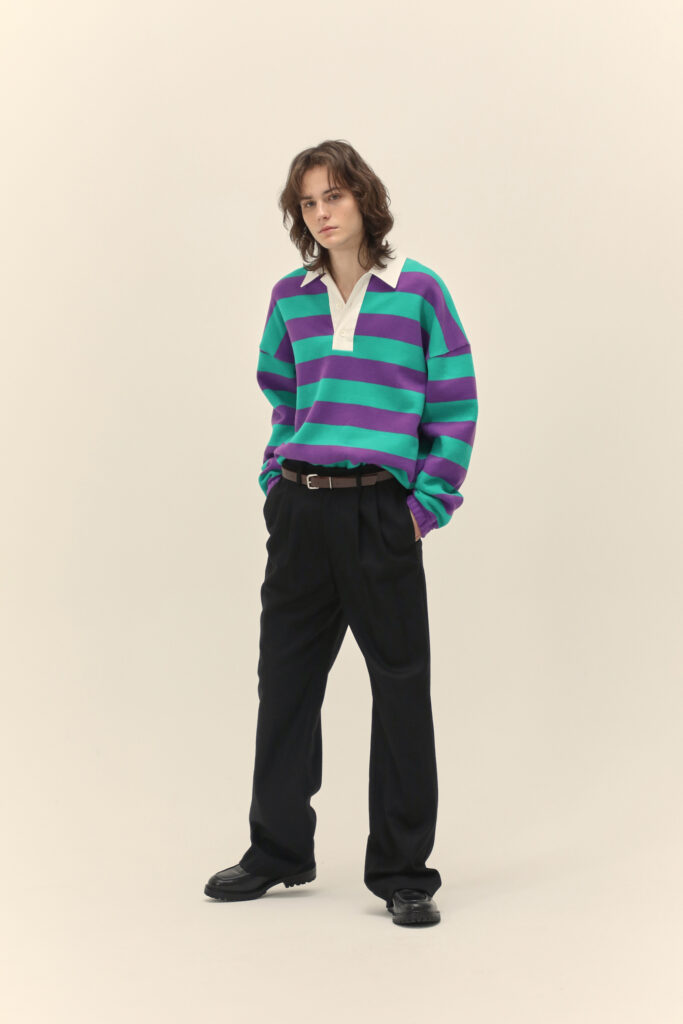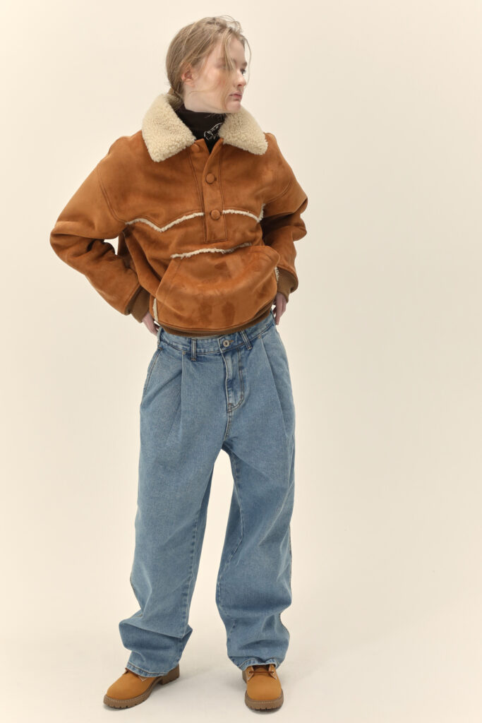 For 2022 Fall and Winter EENK presents V for Vintage, a collection of powerful elegance and majestic glam inspired by the legendary styles from 80’s VOGUE magazine. This collection of statement shapes and colors takes signature EENK style a notch up with even bolder black and white contrasting, chunky, hairy knitwear, denim on denim and heritage jacquard patterns. Over-the-top silhouettes, jewel buttons and illusionary colors meet the power of menswear in three piece set-ups and military outerwear. On top of that, catch a glimmer of disco charm in EENK’s powerhouse.