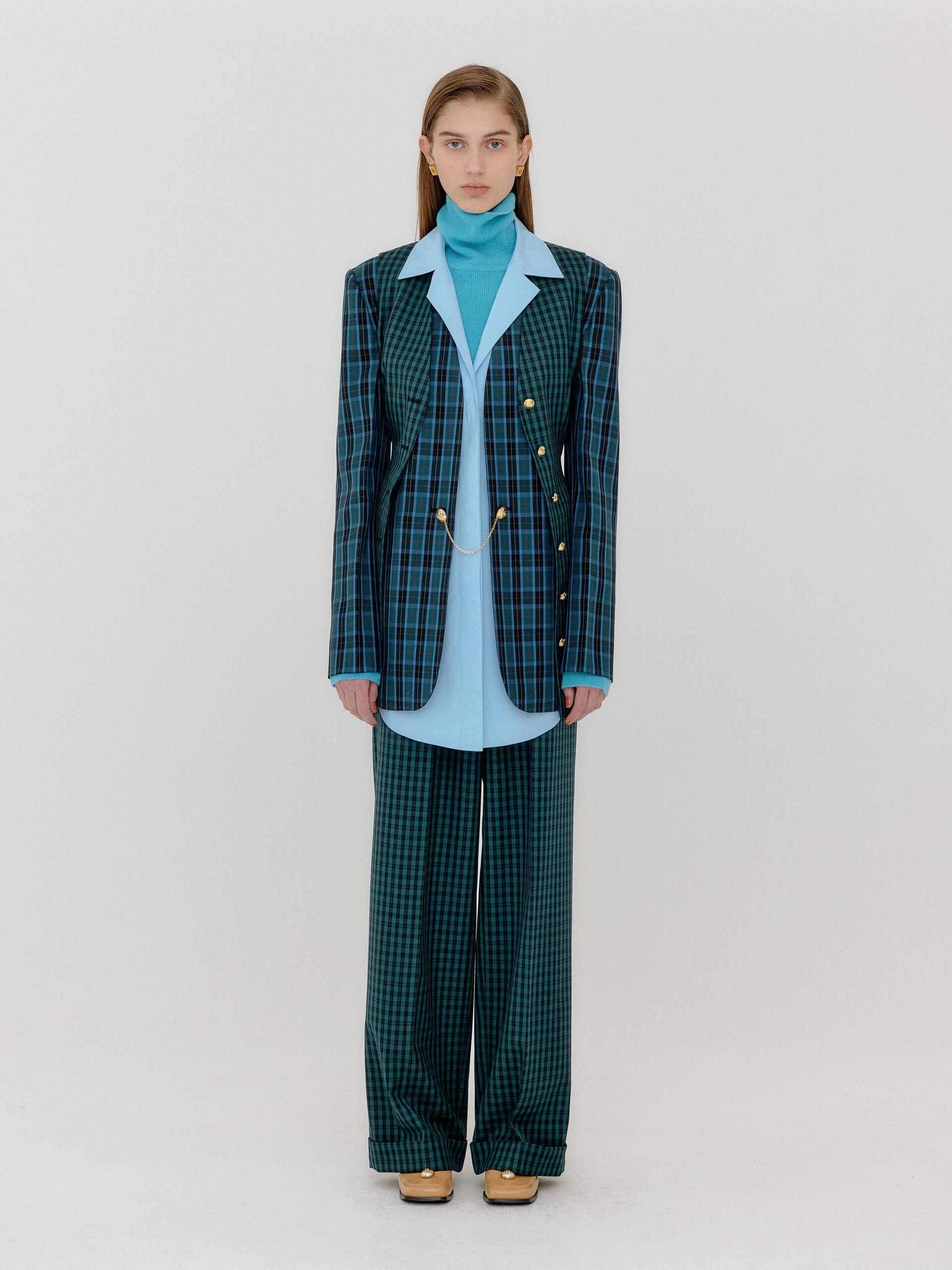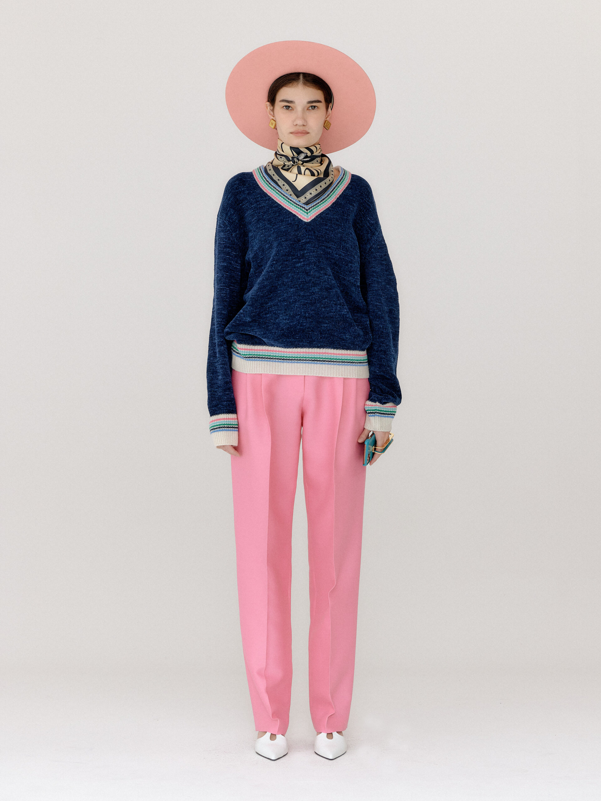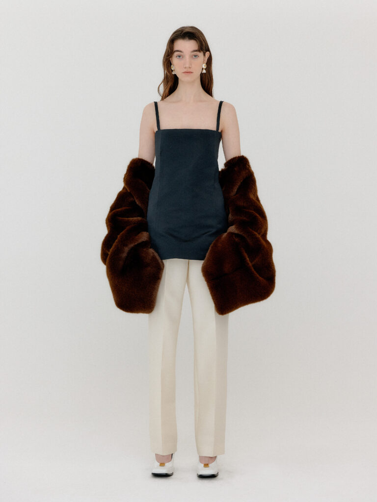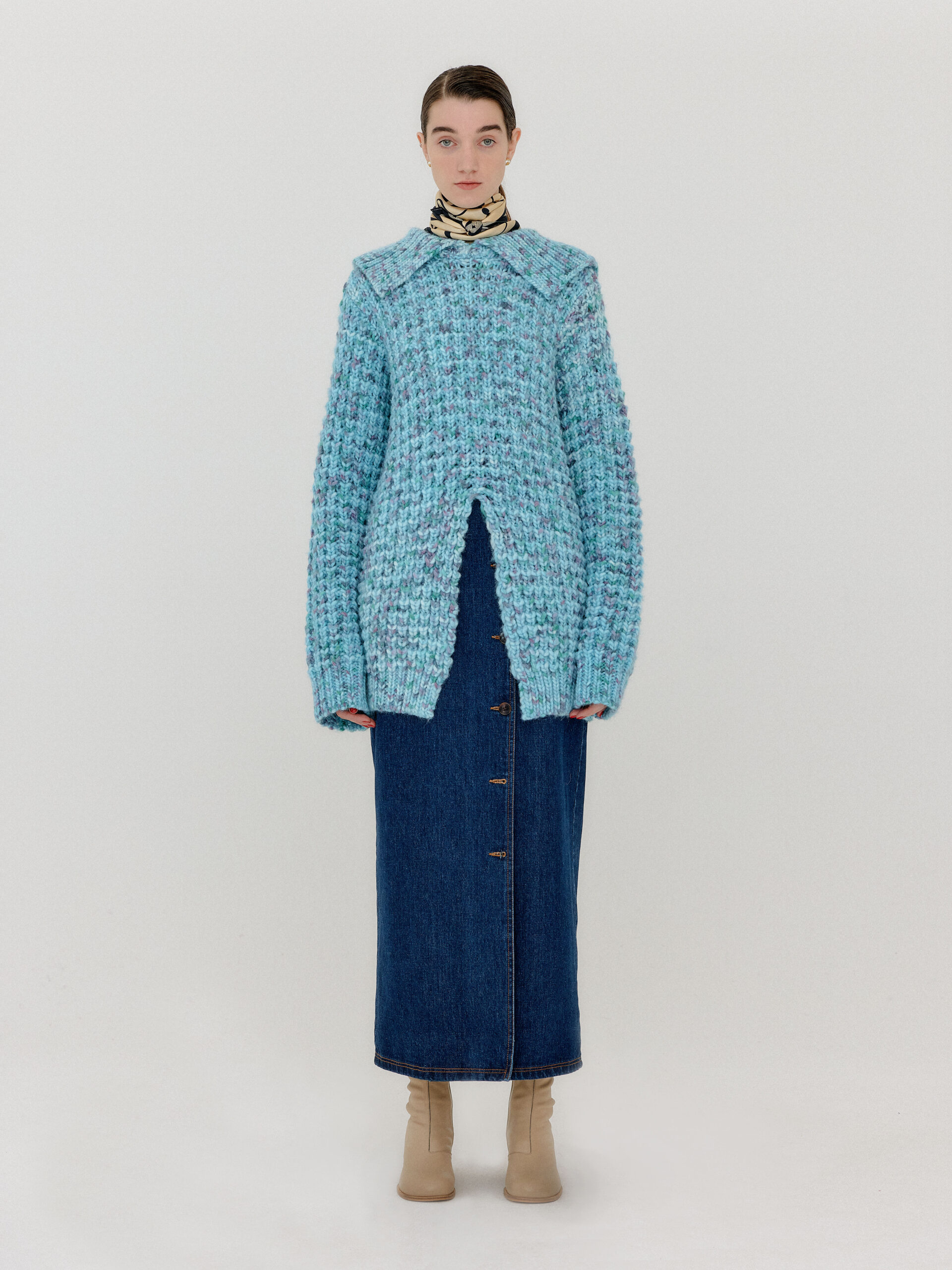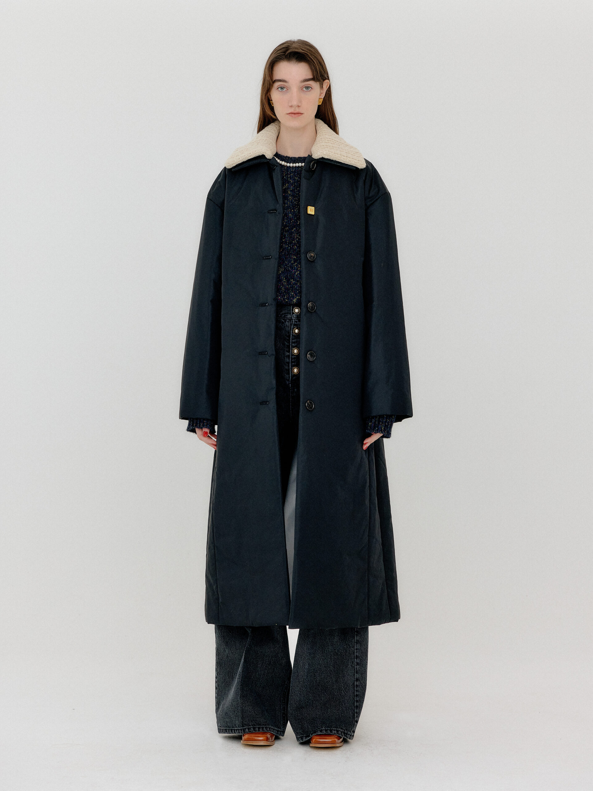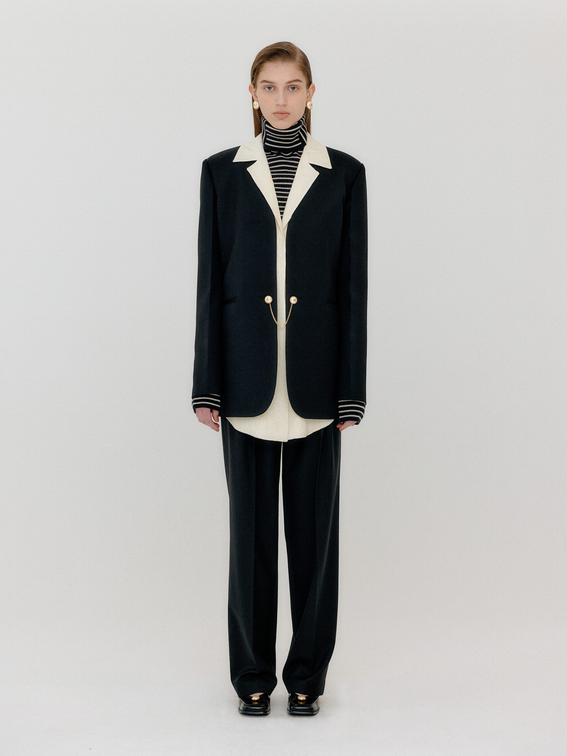 For 2022 Fall and Winter EENK presents V for Vintage, a collection of powerful elegance and majestic glam inspired by the legendary styles from 80’s VOGUE magazine. This collection of statement shapes and colors takes signature EENK style a notch up with even bolder black and white contrasting, chunky, hairy knitwear, denim on denim and heritage jacquard patterns. Over-the-top silhouettes, jewel buttons and illusionary colors meet the power of menswear in three piece set-ups and military outerwear. On top of that, catch a glimmer of disco charm in EENK’s powerhouse.
