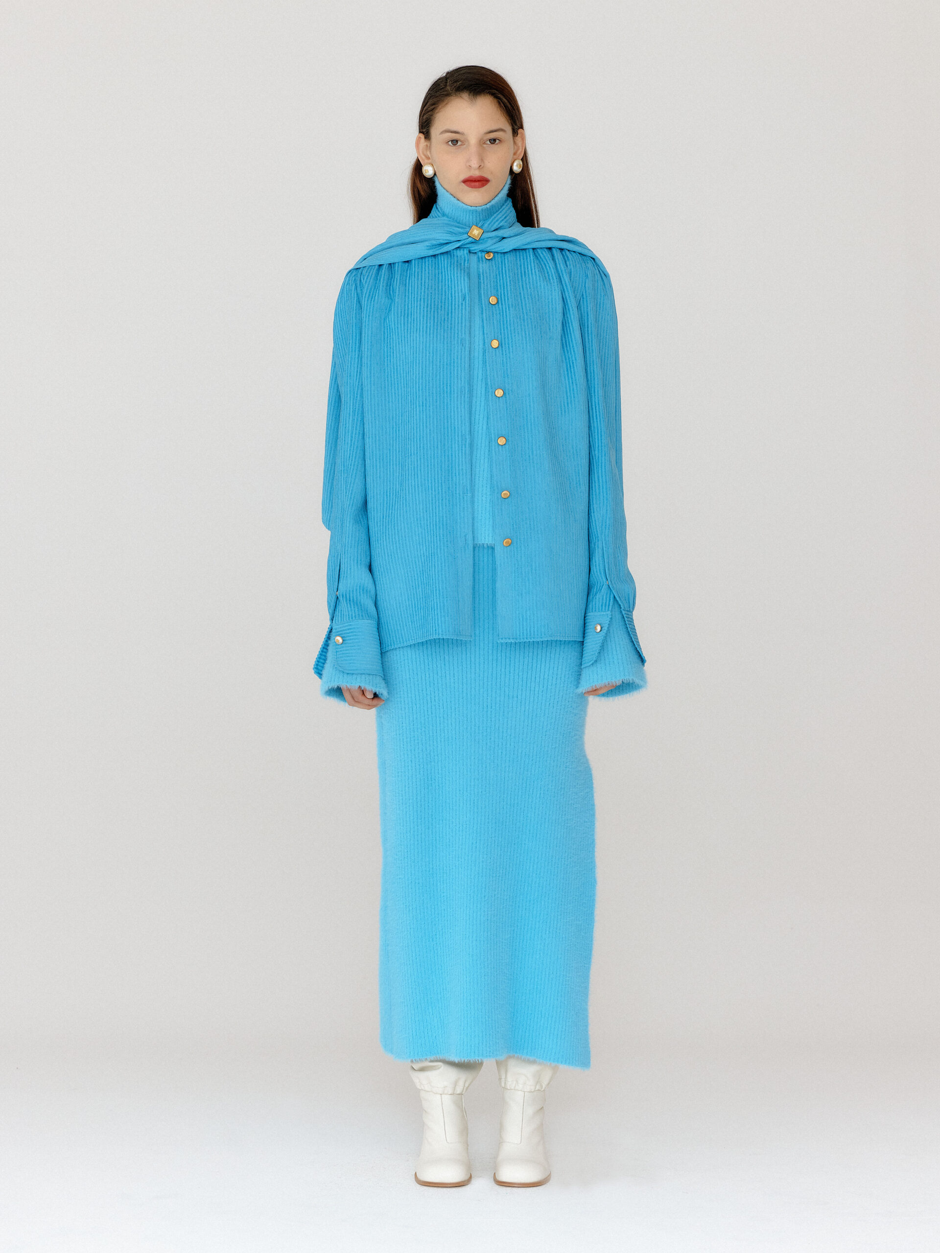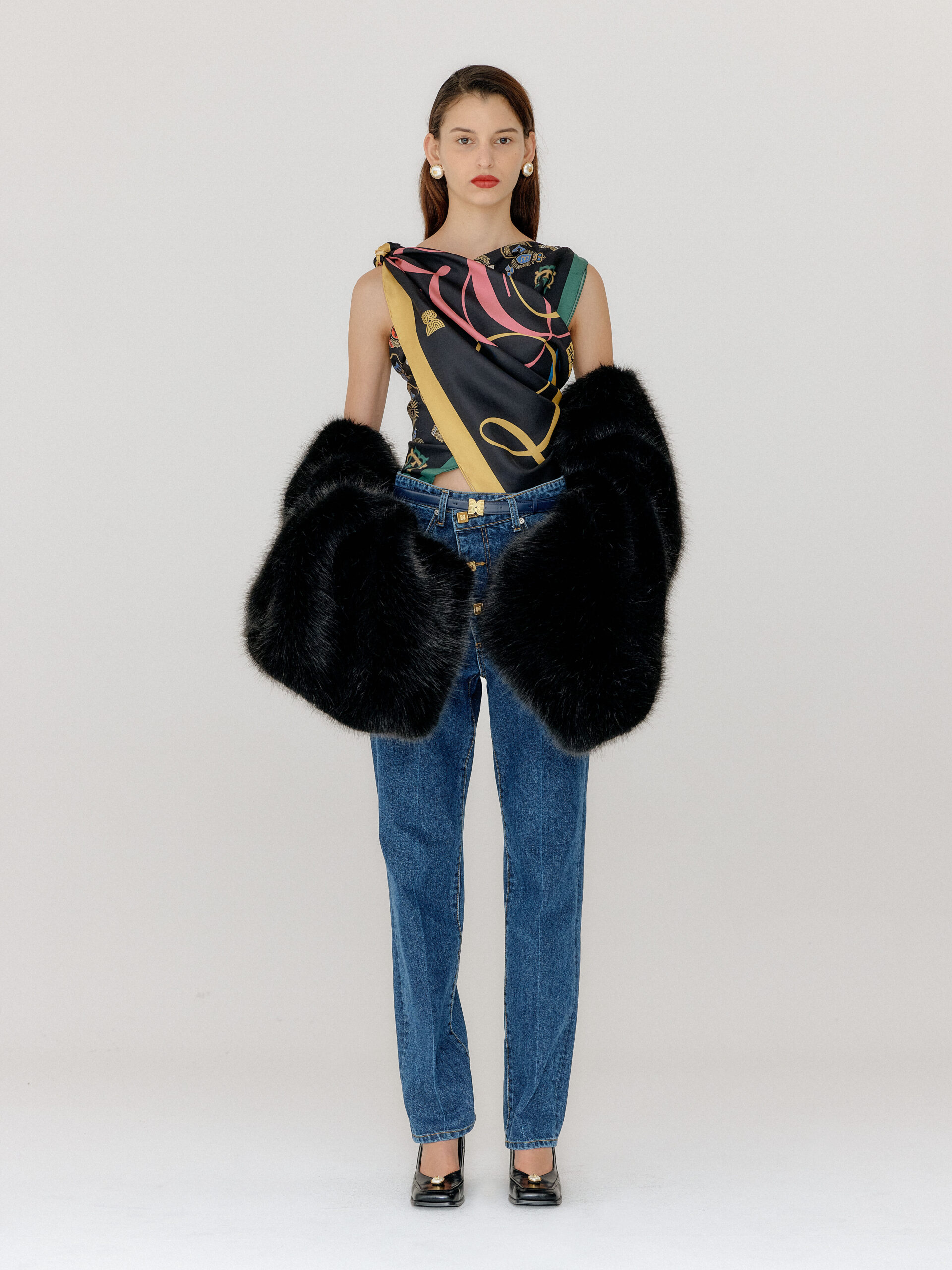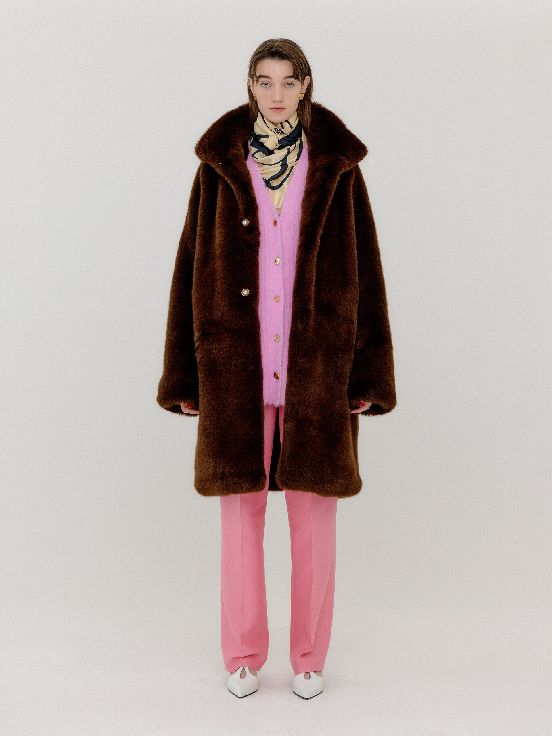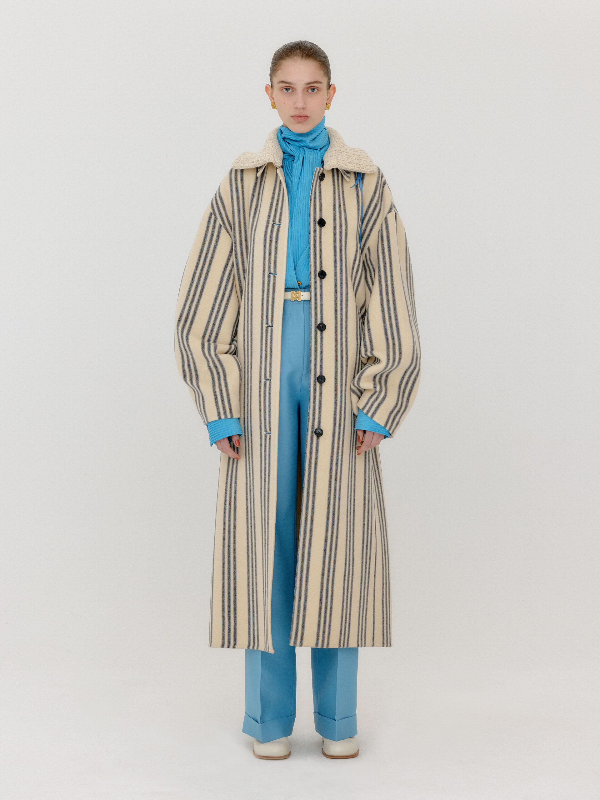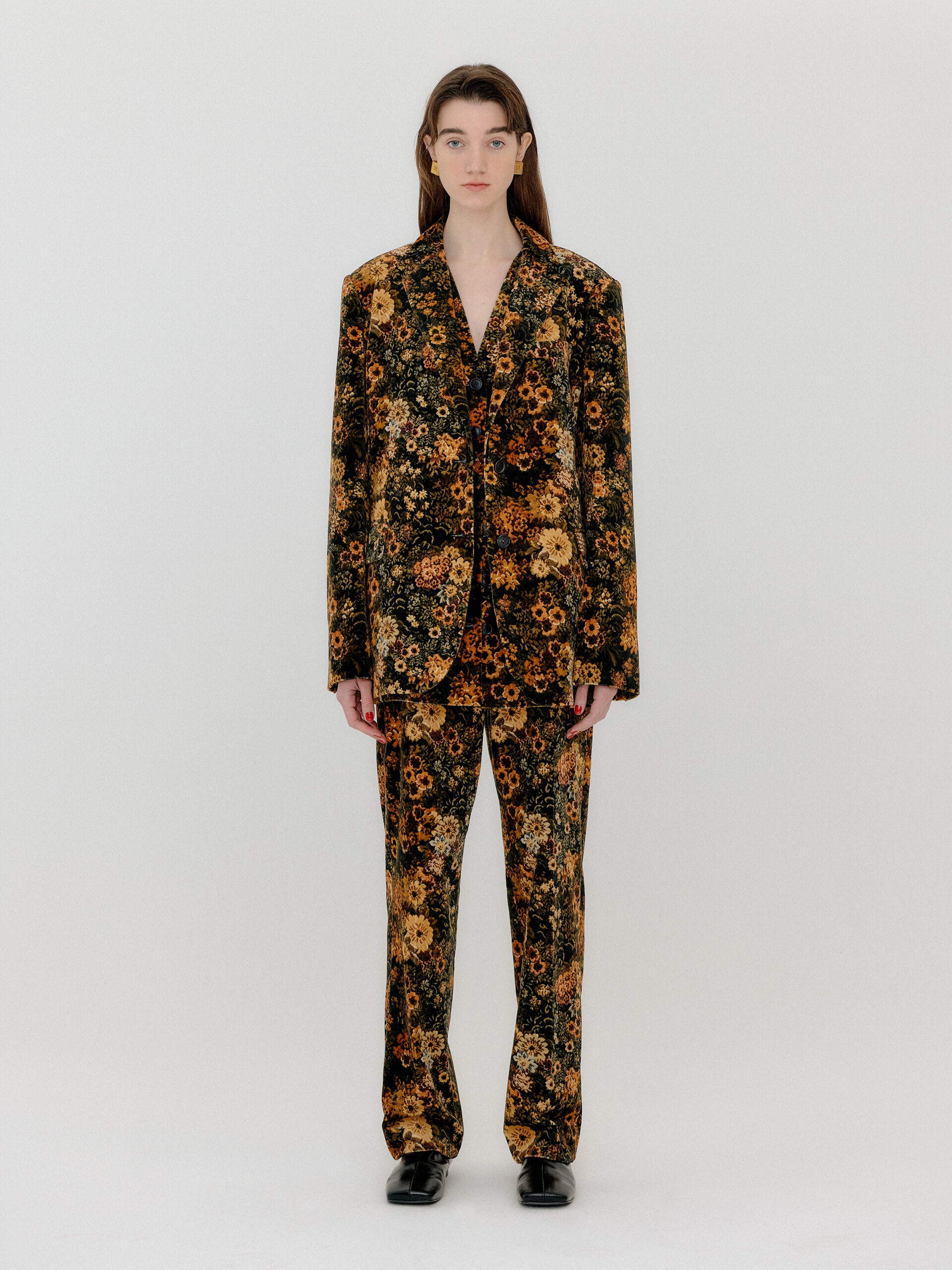 For 2022 Fall and Winter EENK presents V for Vintage, a collection of powerful elegance and majestic glam inspired by the legendary styles from 80’s VOGUE magazine. This collection of statement shapes and colors takes signature EENK style a notch up with even bolder black and white contrasting, chunky, hairy knitwear, denim on denim and heritage jacquard patterns. Over-the-top silhouettes, jewel buttons and illusionary colors meet the power of menswear in three piece set-ups and military outerwear. On top of that, catch a glimmer of disco charm in EENK’s powerhouse.