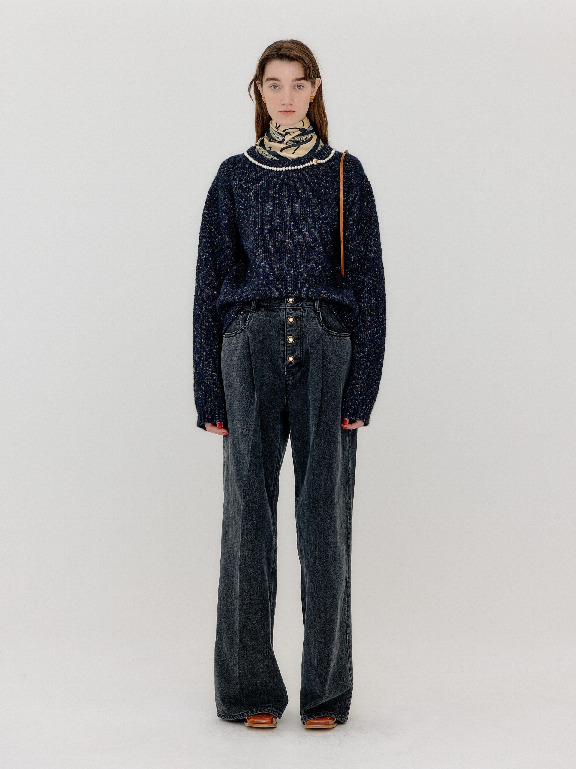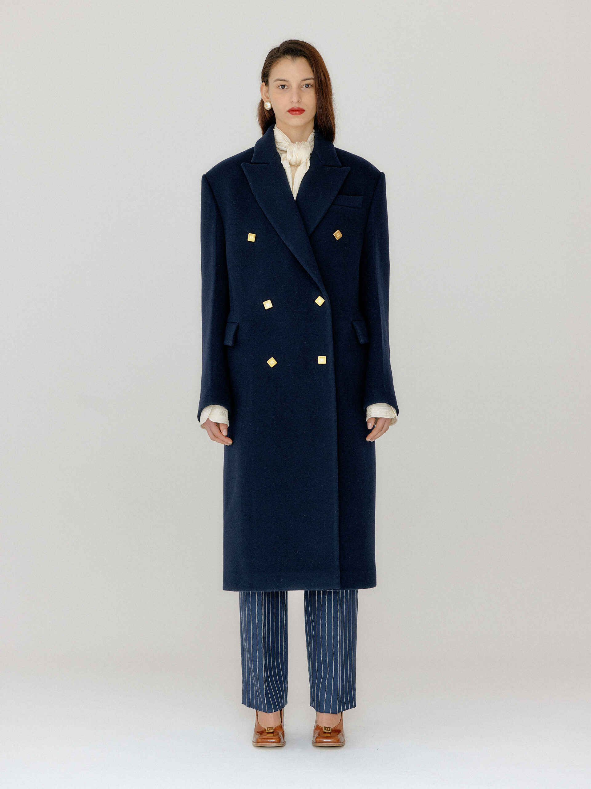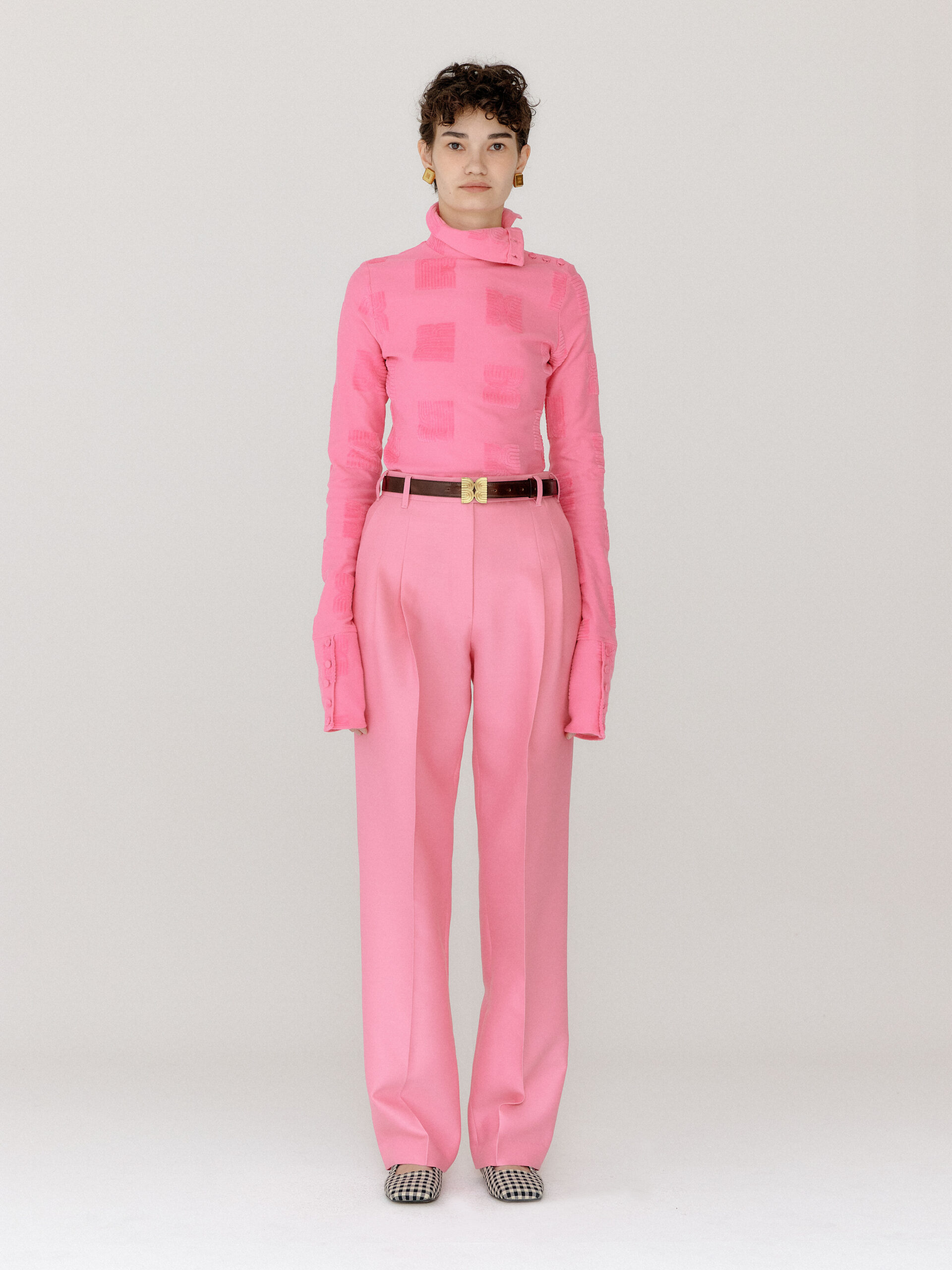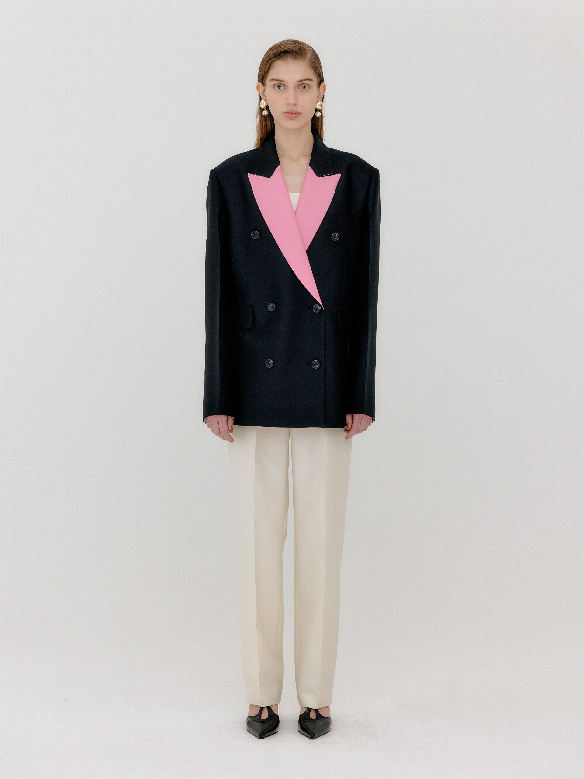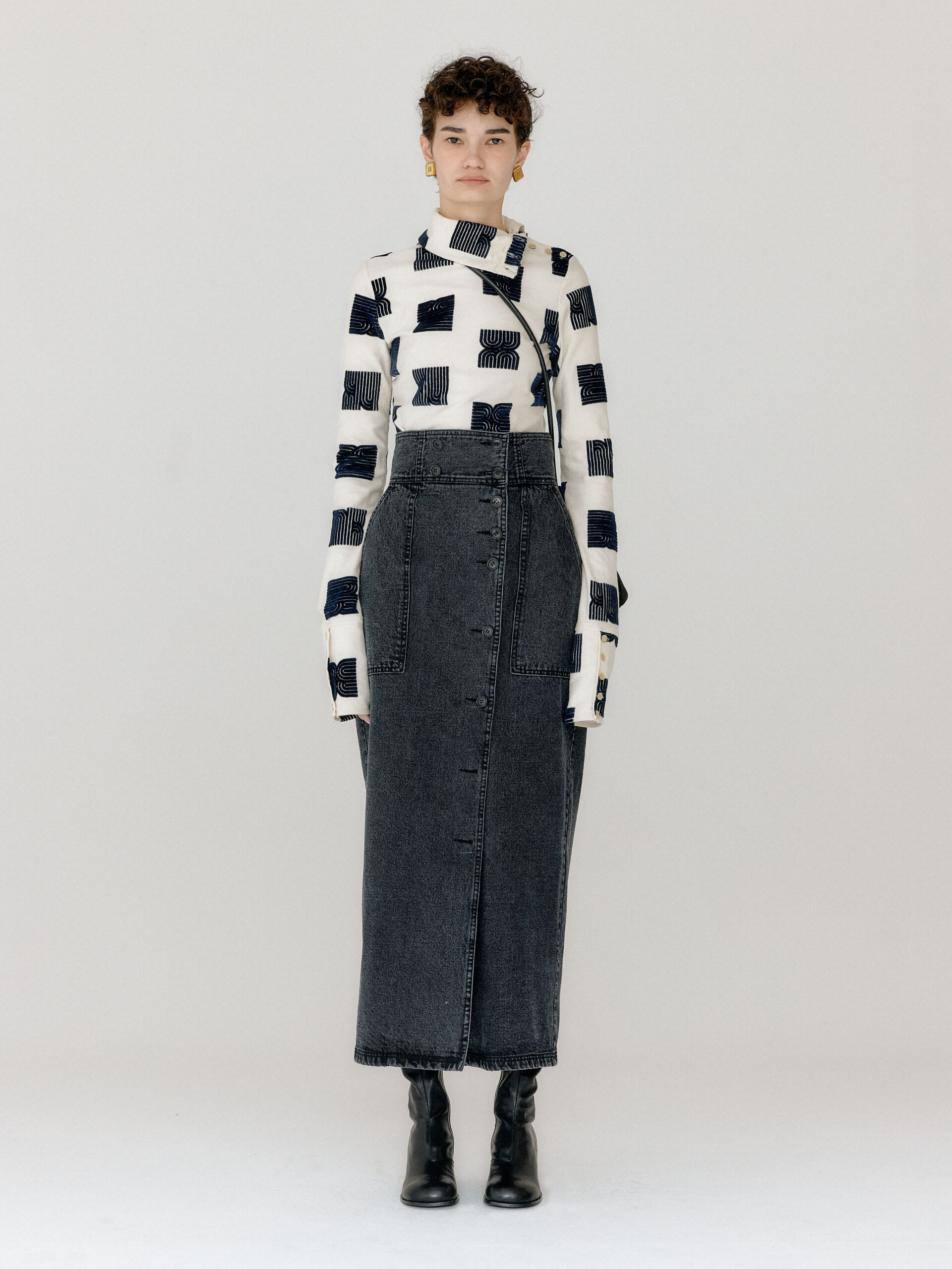 For 2022 Fall and Winter EENK presents V for Vintage, a collection of powerful elegance and majestic glam inspired by the legendary styles from 80’s VOGUE magazine. This collection of statement shapes and colors takes signature EENK style a notch up with even bolder black and white contrasting, chunky, hairy knitwear, denim on denim and heritage jacquard patterns. Over-the-top silhouettes, jewel buttons and illusionary colors meet the power of menswear in three piece set-ups and military outerwear. On top of that, catch a glimmer of disco charm in EENK’s powerhouse.