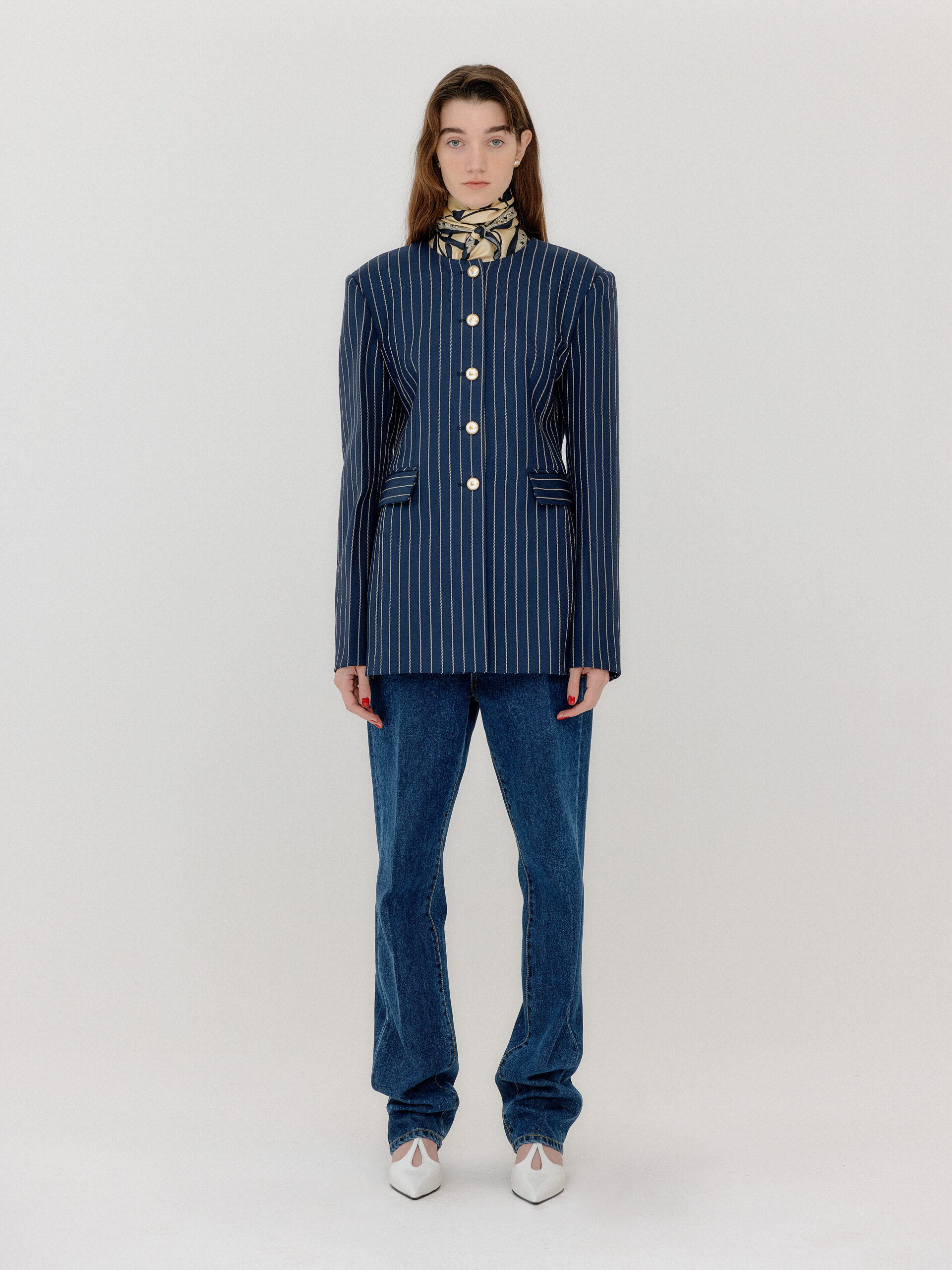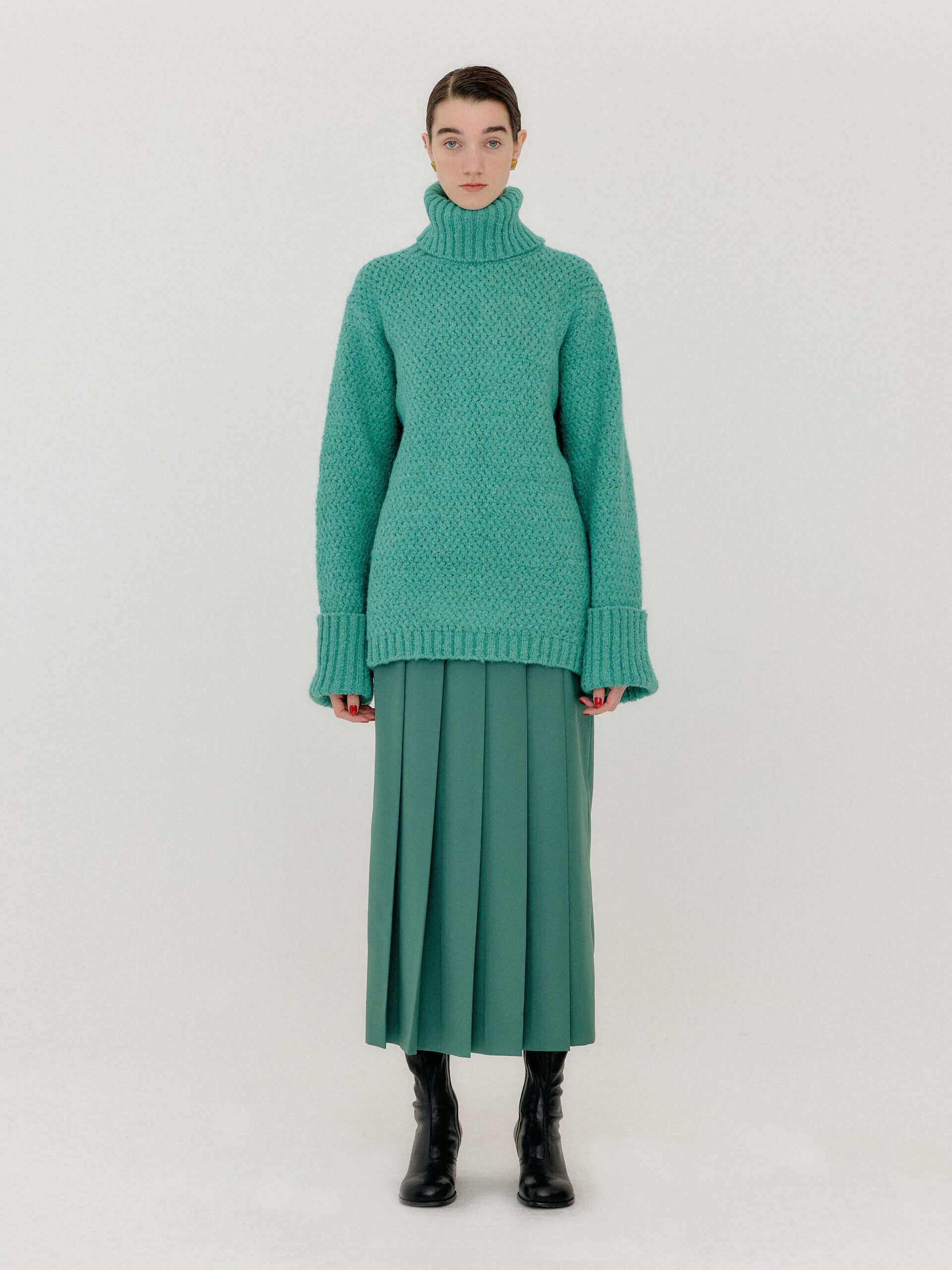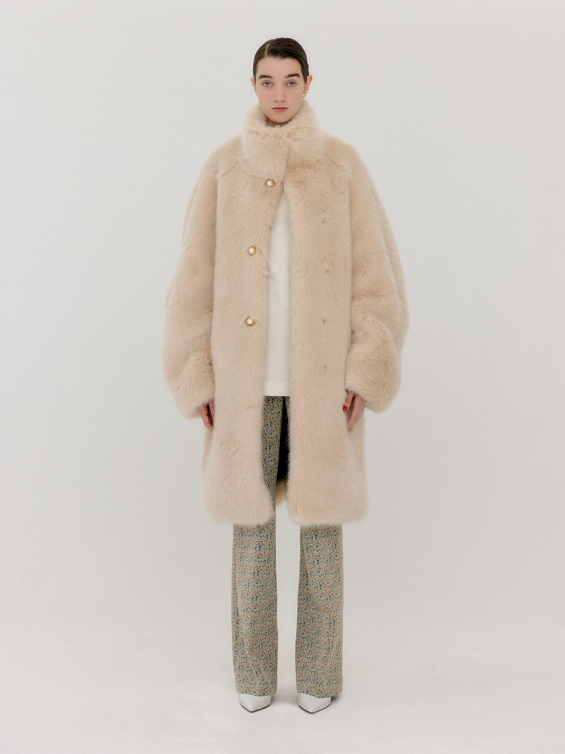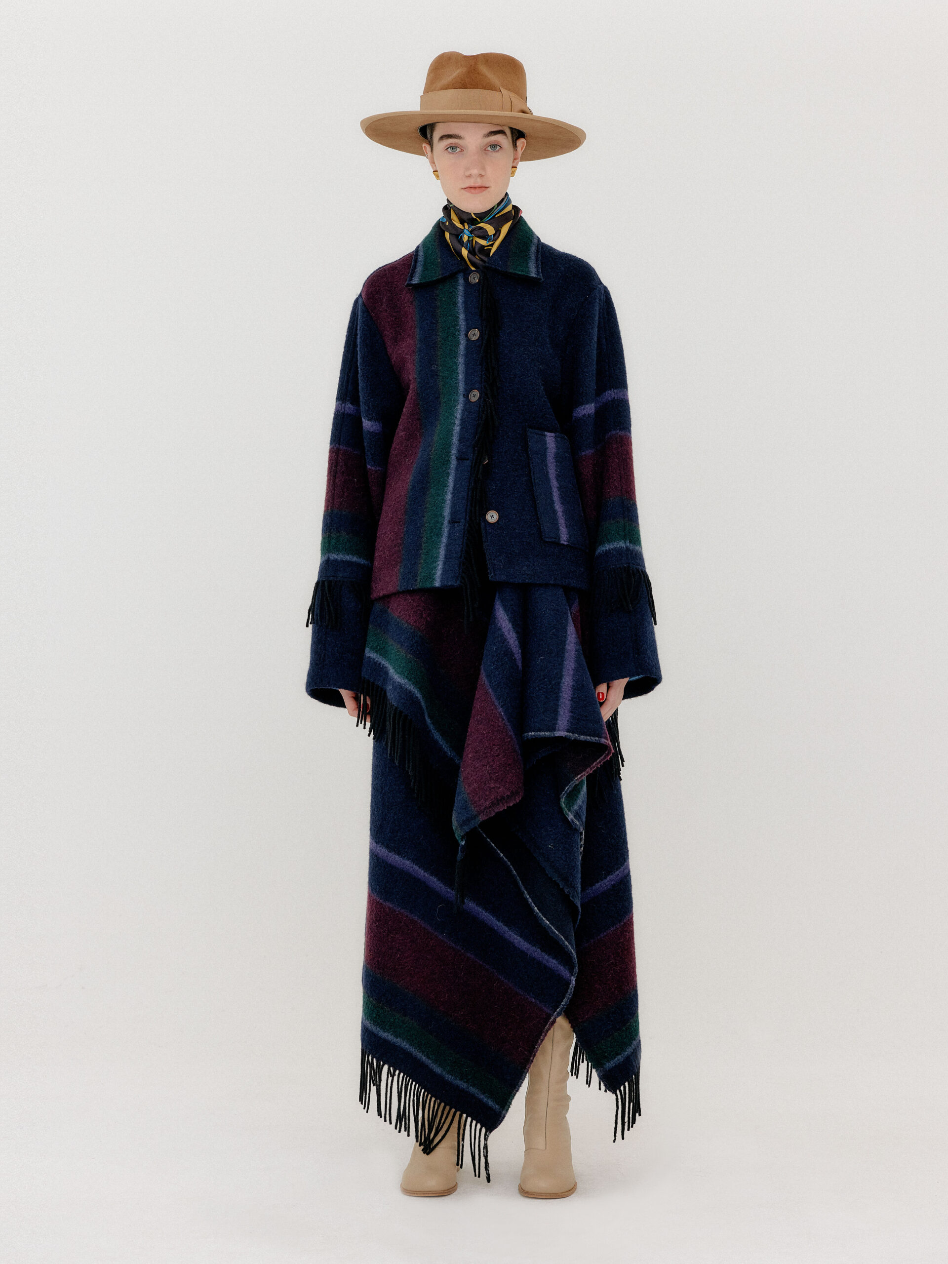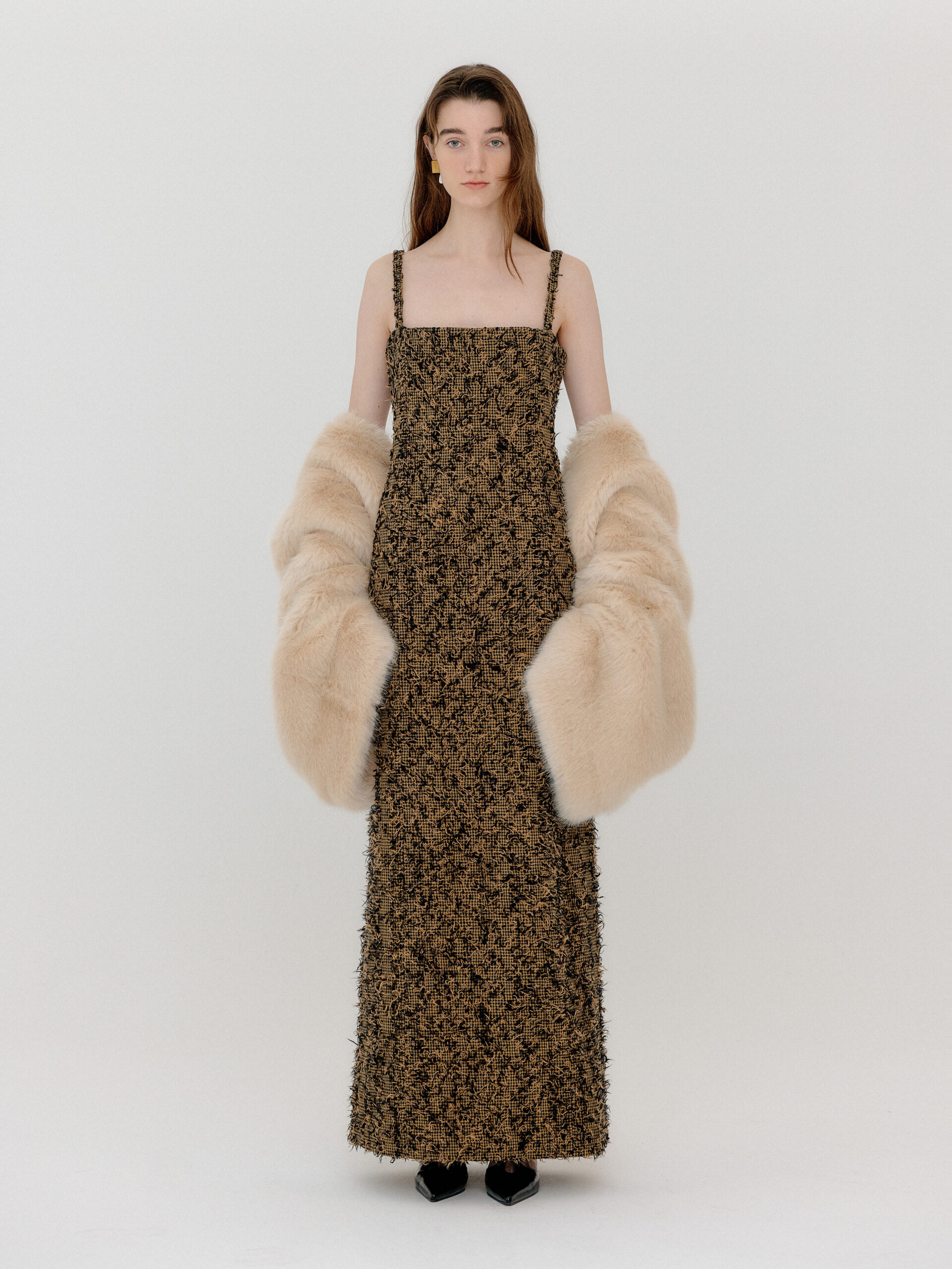 For 2022 Fall and Winter EENK presents V for Vintage, a collection of powerful elegance and majestic glam inspired by the legendary styles from 80’s VOGUE magazine. This collection of statement shapes and colors takes signature EENK style a notch up with even bolder black and white contrasting, chunky, hairy knitwear, denim on denim and heritage jacquard patterns. Over-the-top silhouettes, jewel buttons and illusionary colors meet the power of menswear in three piece set-ups and military outerwear. On top of that, catch a glimmer of disco charm in EENK’s powerhouse.