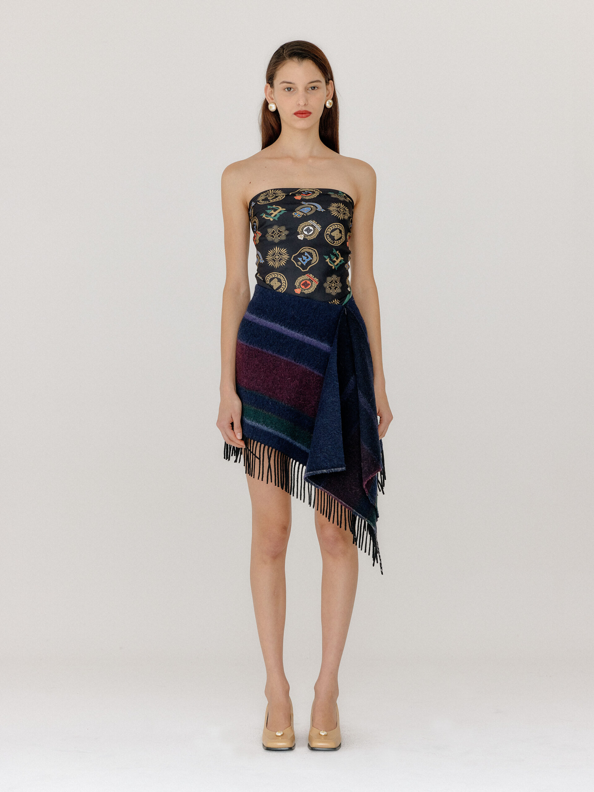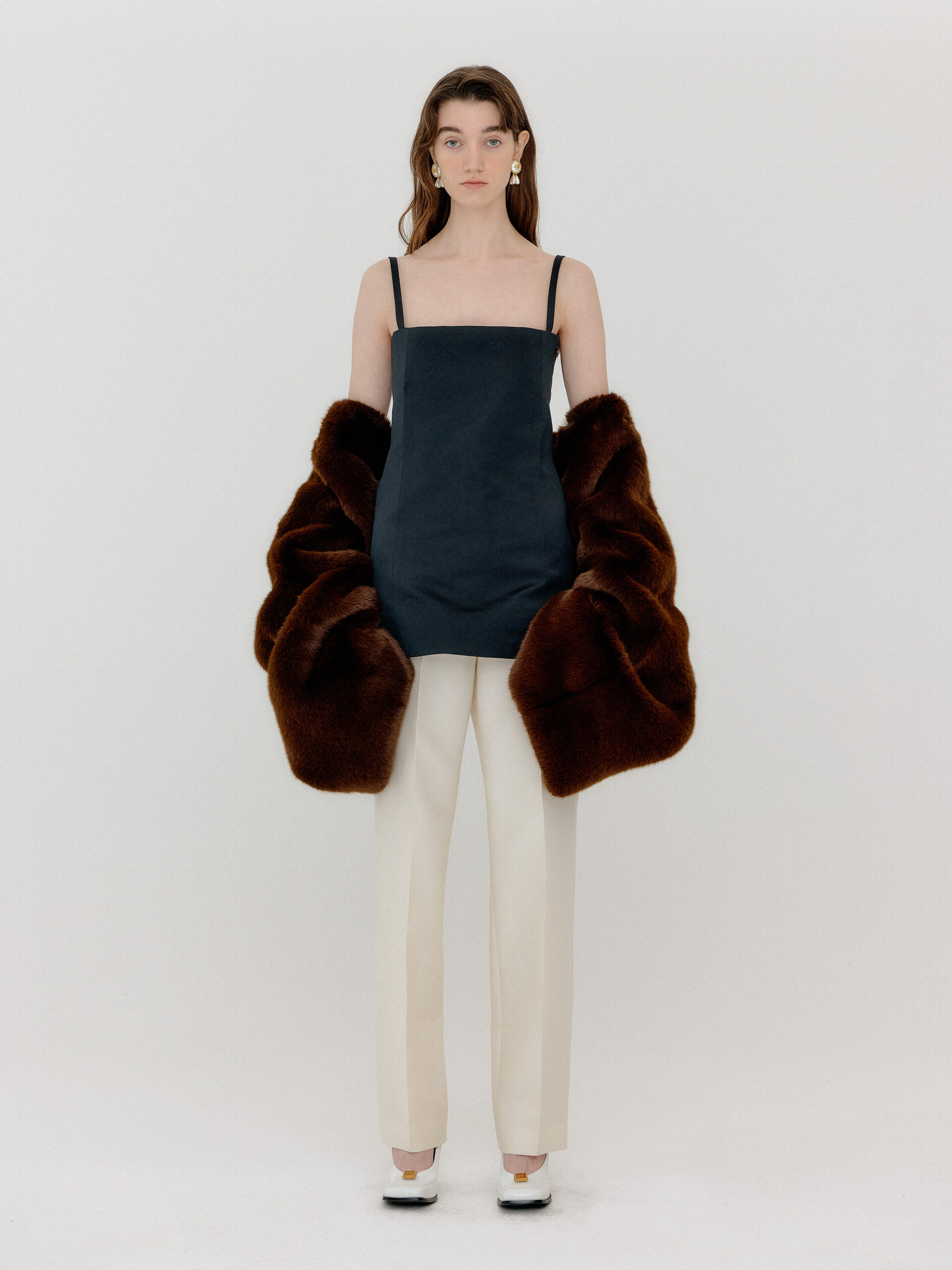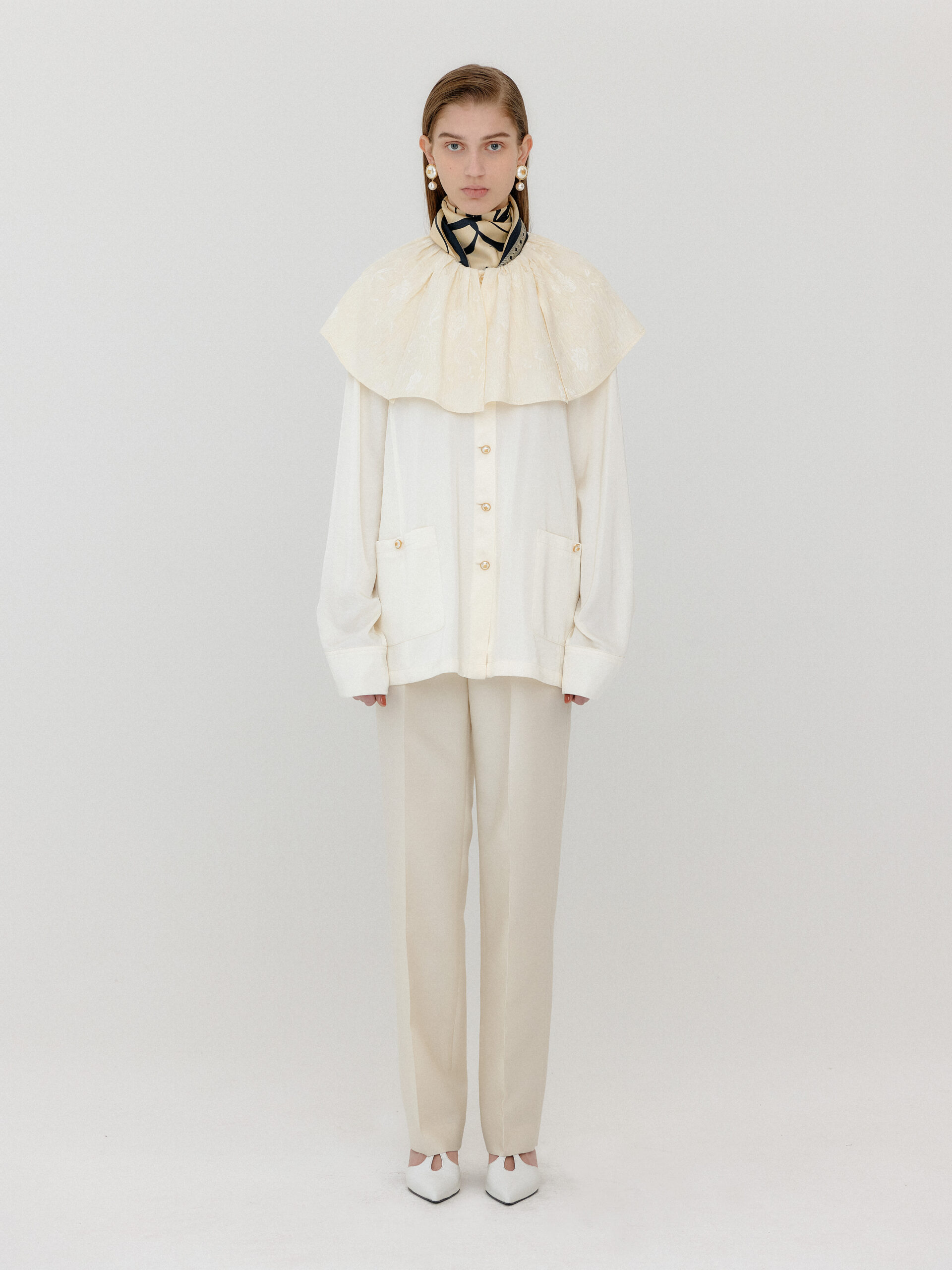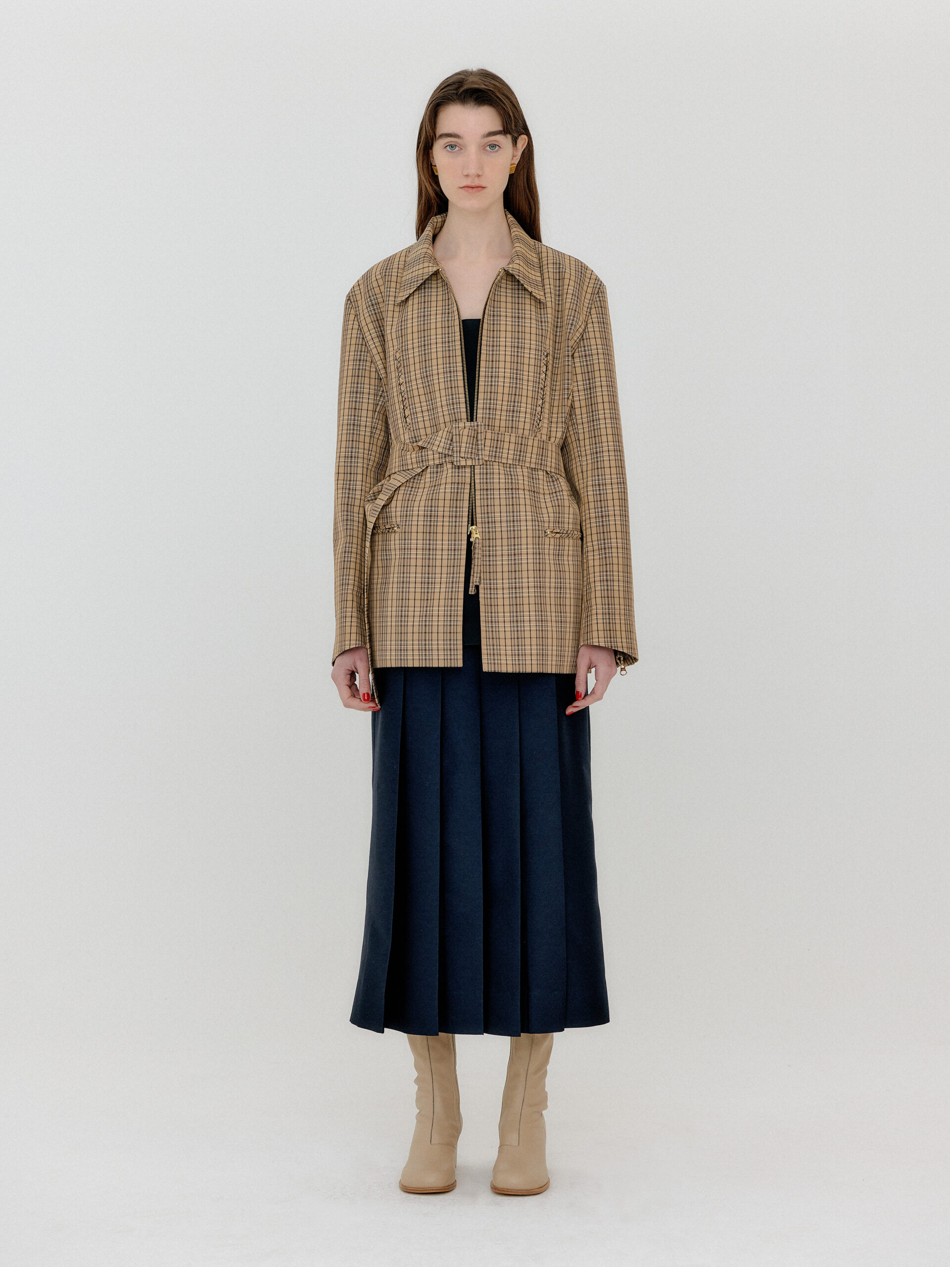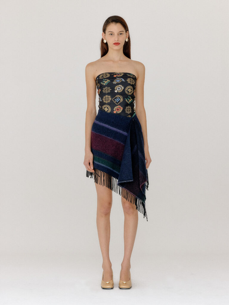 For 2022 Fall and Winter EENK presents V for Vintage, a collection of powerful elegance and majestic glam inspired by the legendary styles from 80’s VOGUE magazine. This collection of statement shapes and colors takes signature EENK style a notch up with even bolder black and white contrasting, chunky, hairy knitwear, denim on denim and heritage jacquard patterns. Over-the-top silhouettes, jewel buttons and illusionary colors meet the power of menswear in three piece set-ups and military outerwear. On top of that, catch a glimmer of disco charm in EENK’s powerhouse.