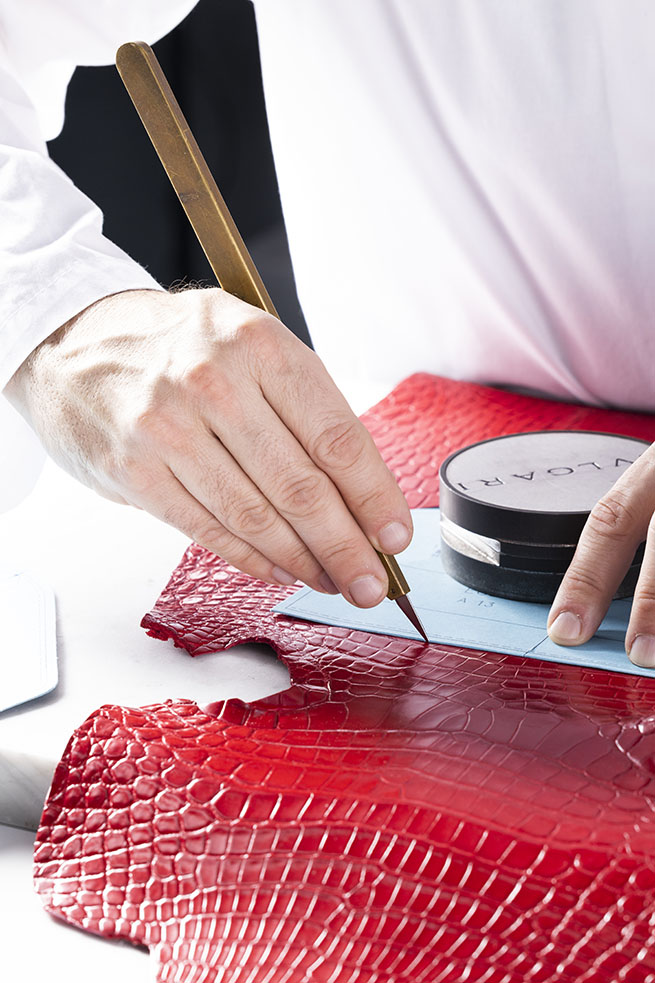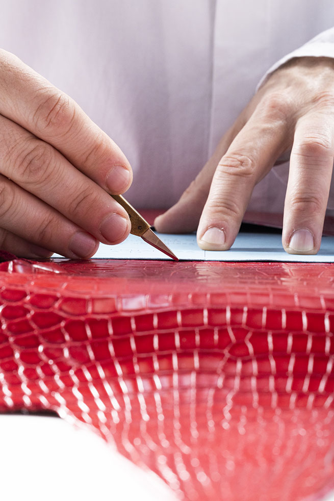 Divinement structuré, le sac est réalisé en cuir de crocodile, l’une des matières les plus exclusives en maroquinerie, particulièrement appréciée pour sa texture riche, sa polyvalence incomparable et son aspect raffiné. Cette matière luxueuse est sublimée par le mariage de techniques innovantes et traditionnelles des artisans talentueux de la Maison. Passé maître dans l’art de capturer les nuances inimitables de la nature dans une palette de couleurs inspirées des gemmes, le Joaillier de la maroquinerie teinte cette matière magnifique de vert émeraude et de rouge rubis pour rehausser son charme naturel grâce à la « finition millénaire ». Un processus novateur qui consiste à associer des cires et des caséines activées lors de l’étirage final à 120 degrés, conférant à la pièce une brillance fascinante.