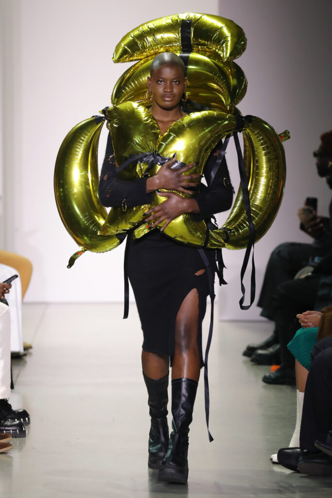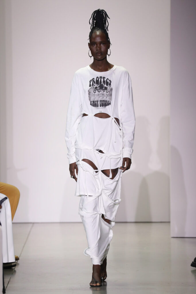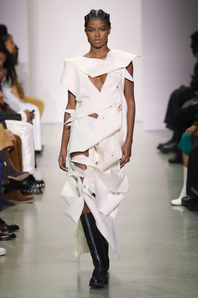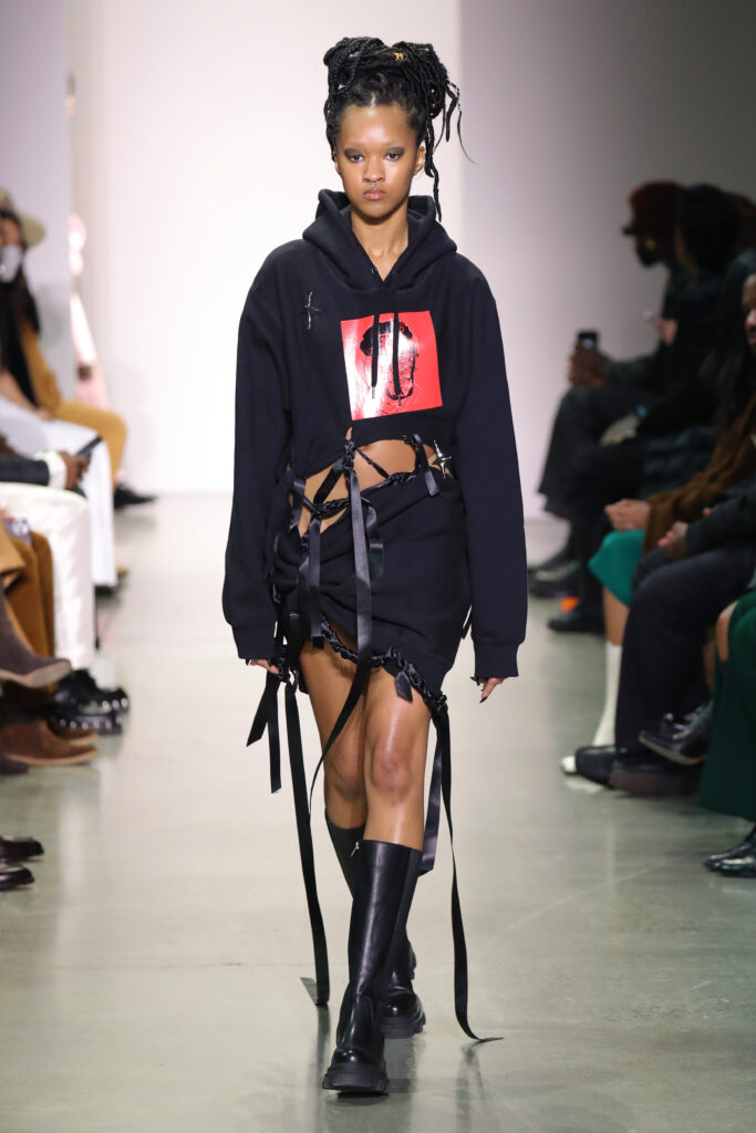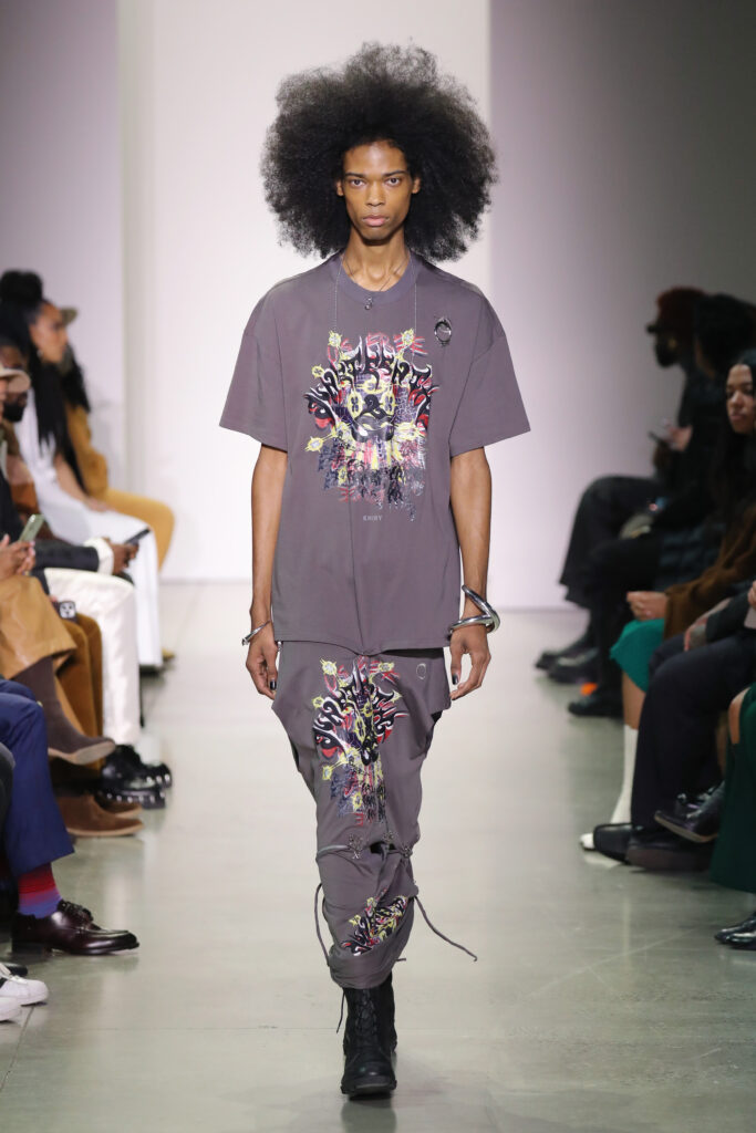 - NEW YORK, NEW YORK – FEBRUARY 13: A model walks the runway wearing Khiry during the IN THE BLK Showcase powered by #ChangeFashion during New York Fashion Week: The Shows at Gallery at Spring Studios on February 13, 2022 in New York City. (Photo by JP Yim/Getty Images for IMG)